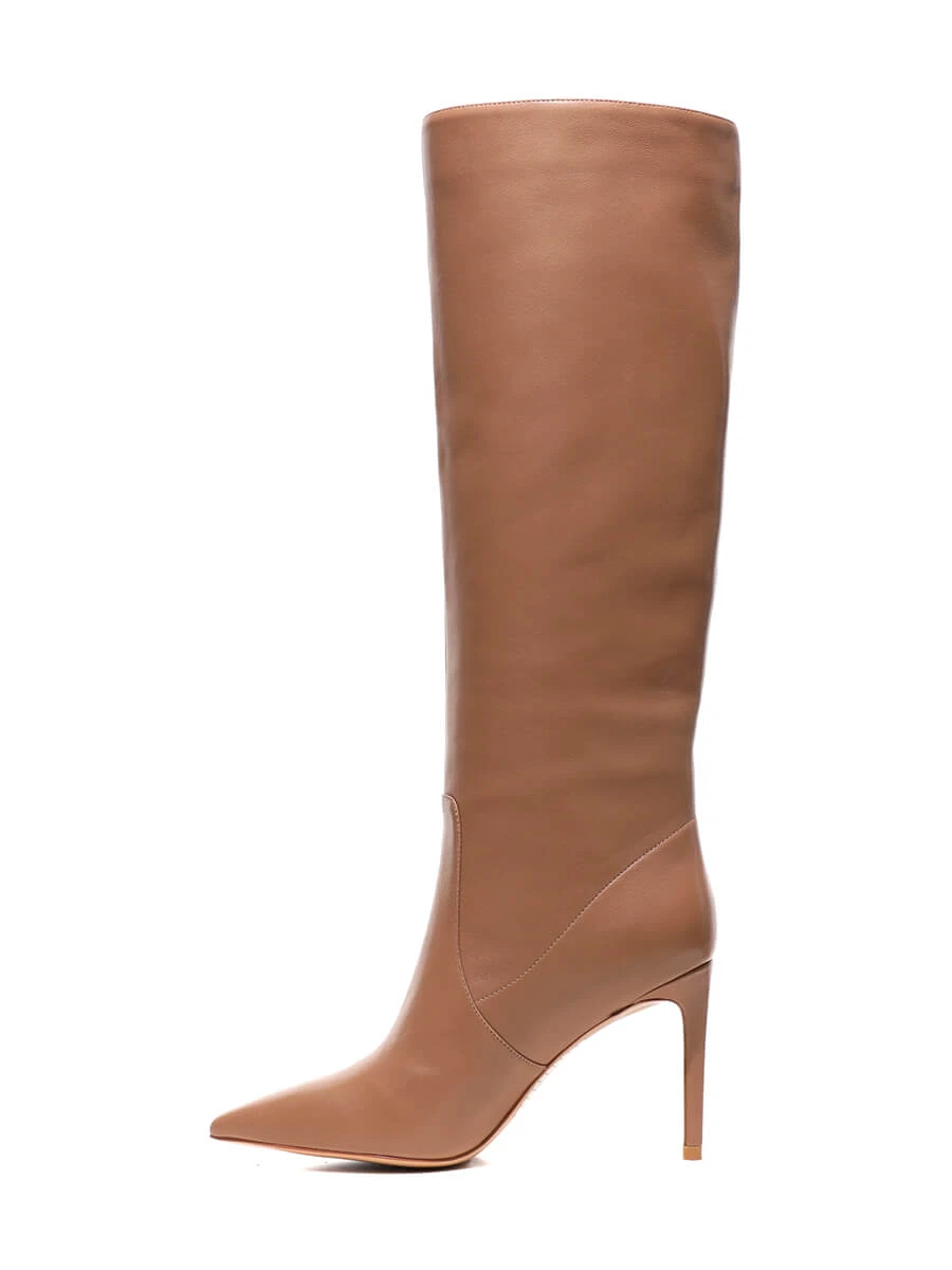 Сапоги 493295 женские цвет бежевый, натуральная кожа