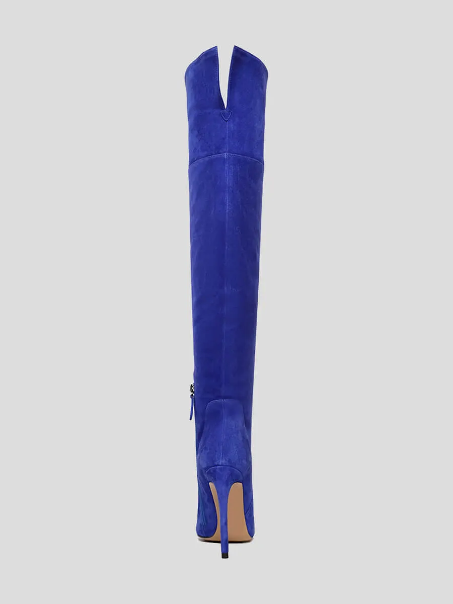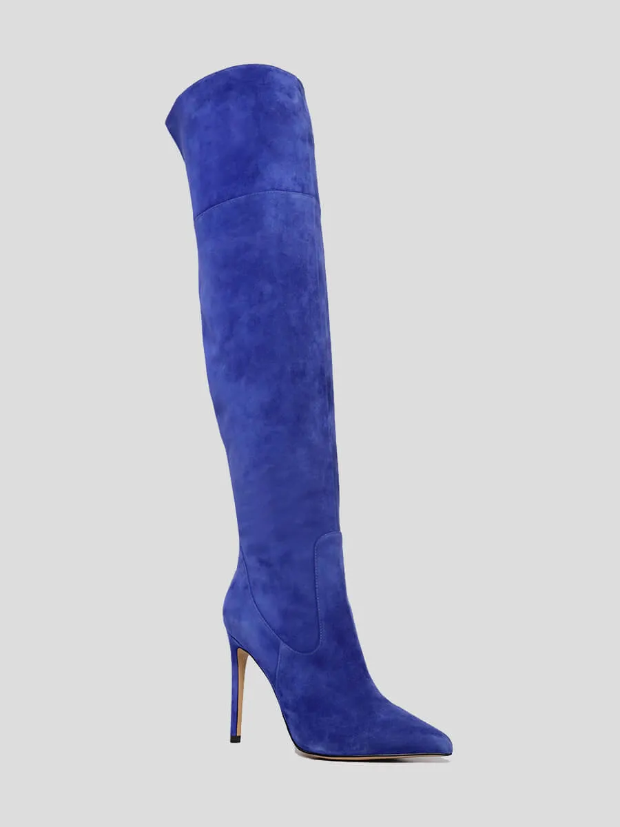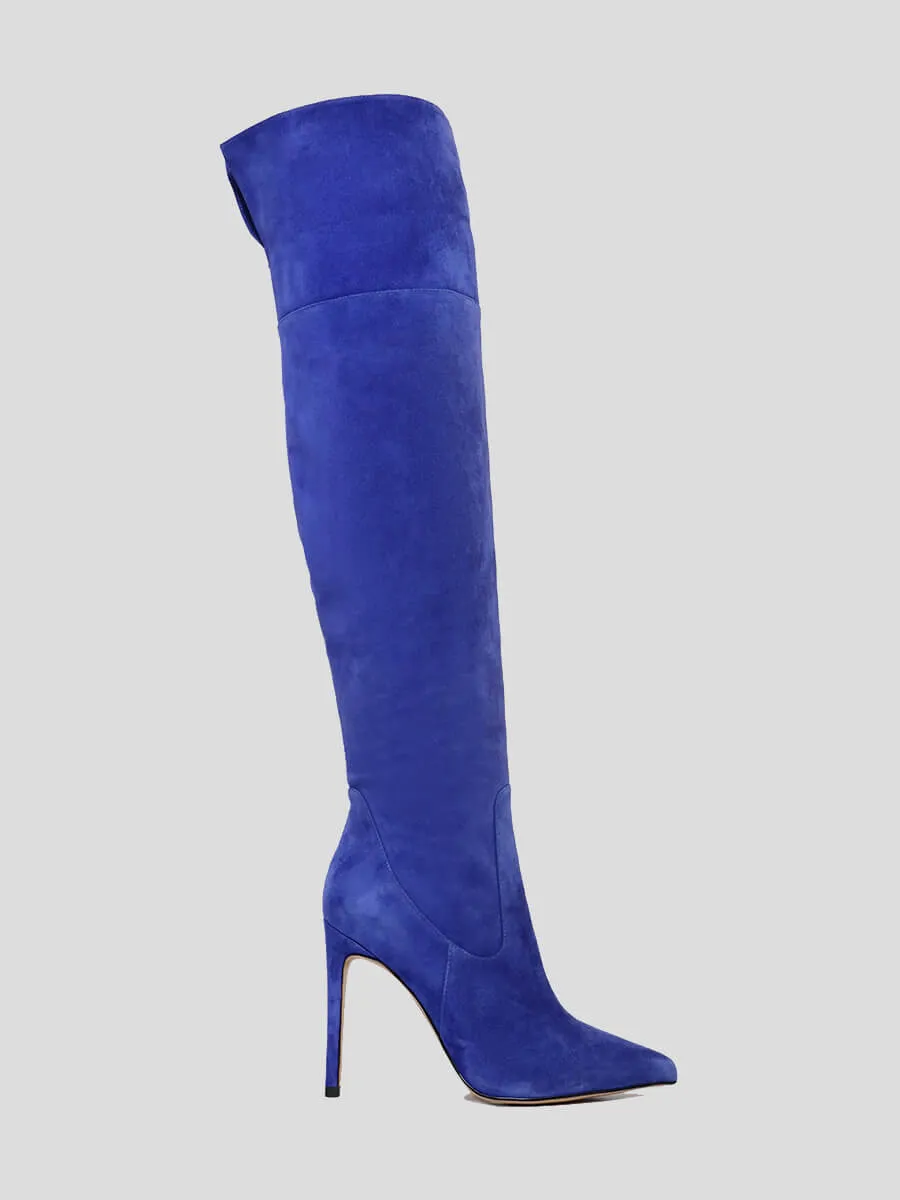 Ботфорты женские демисезонные, цвет синий, натуральный велюр