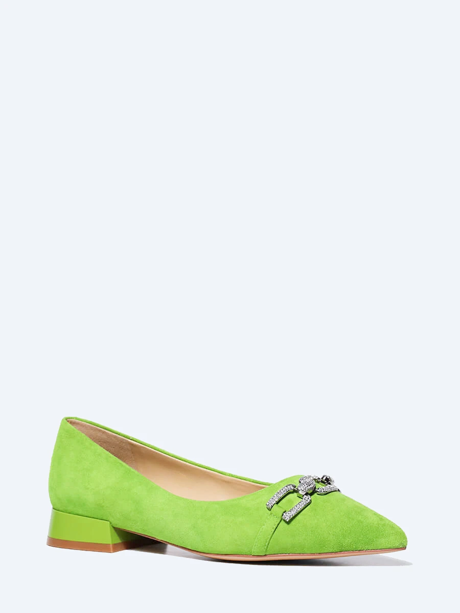 Балетки женские всесезонные, цвет салатовый, натуральный велюр