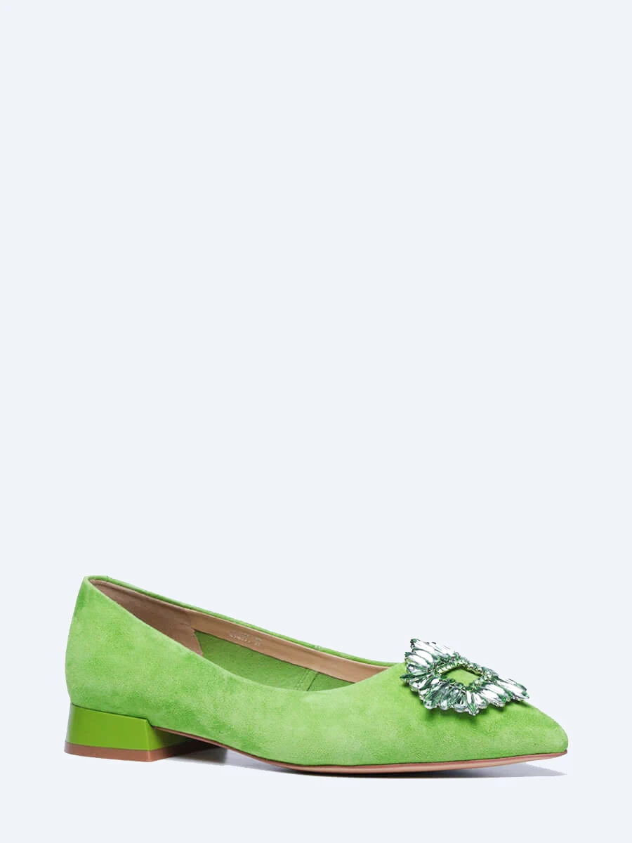 Балетки женские всесезонные, цвет салатовый, натуральный велюр