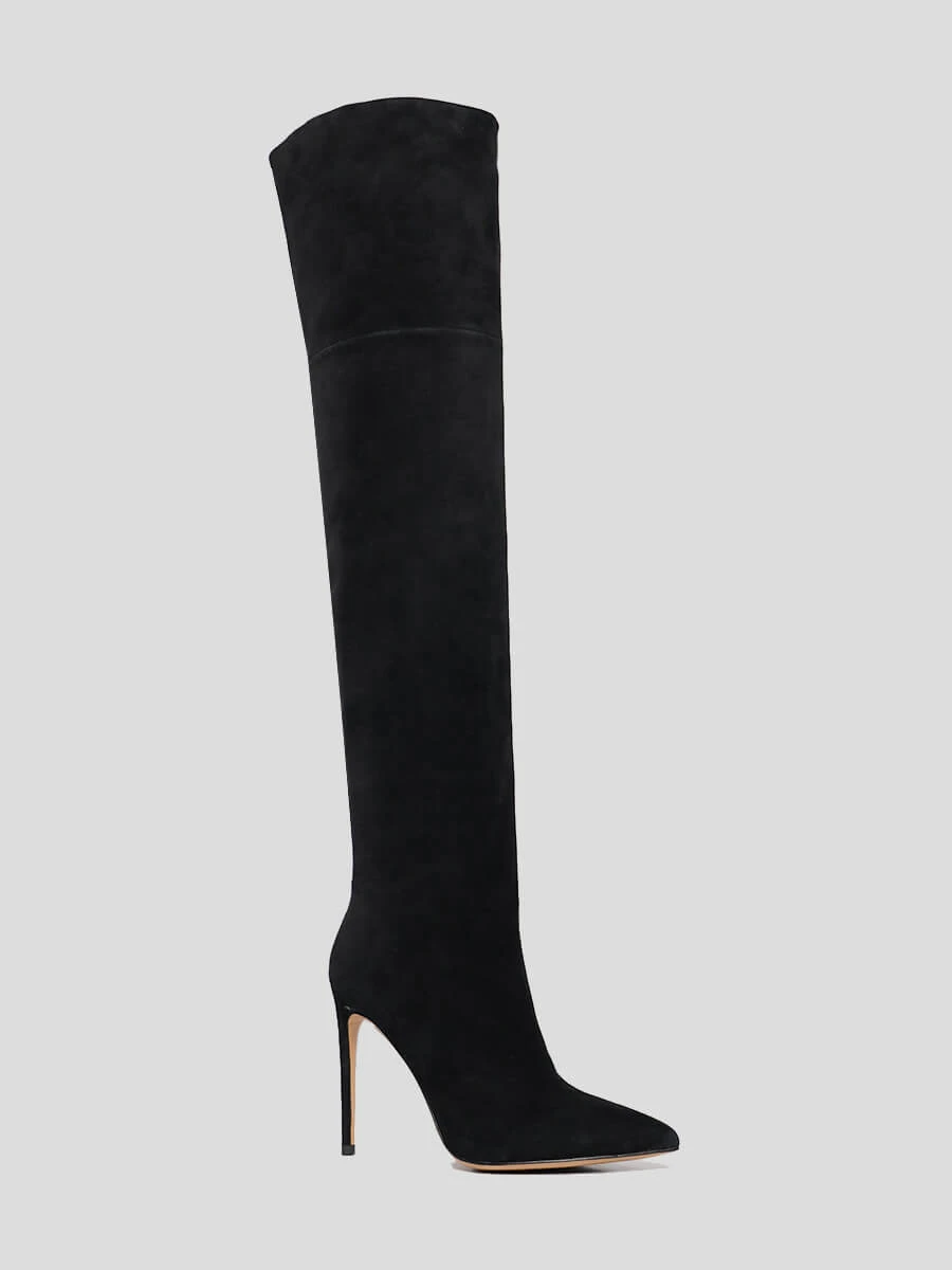 Ботфорты женские демисезонные, цвет черный, натуральный велюр