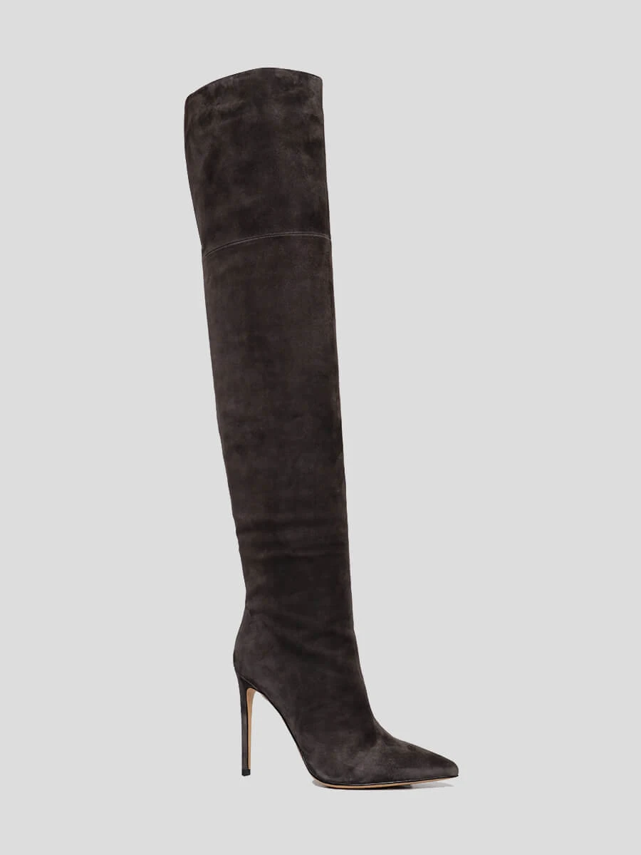 Ботфорты женские демисезонные, цвет серый, натуральный велюр