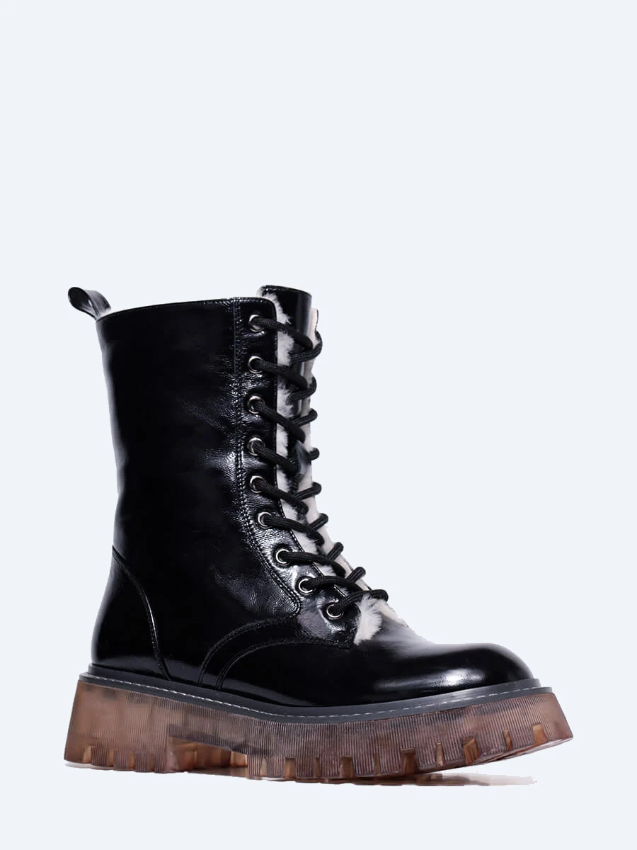 Ботинки женские зимние, цвет черный, натуральный наплак