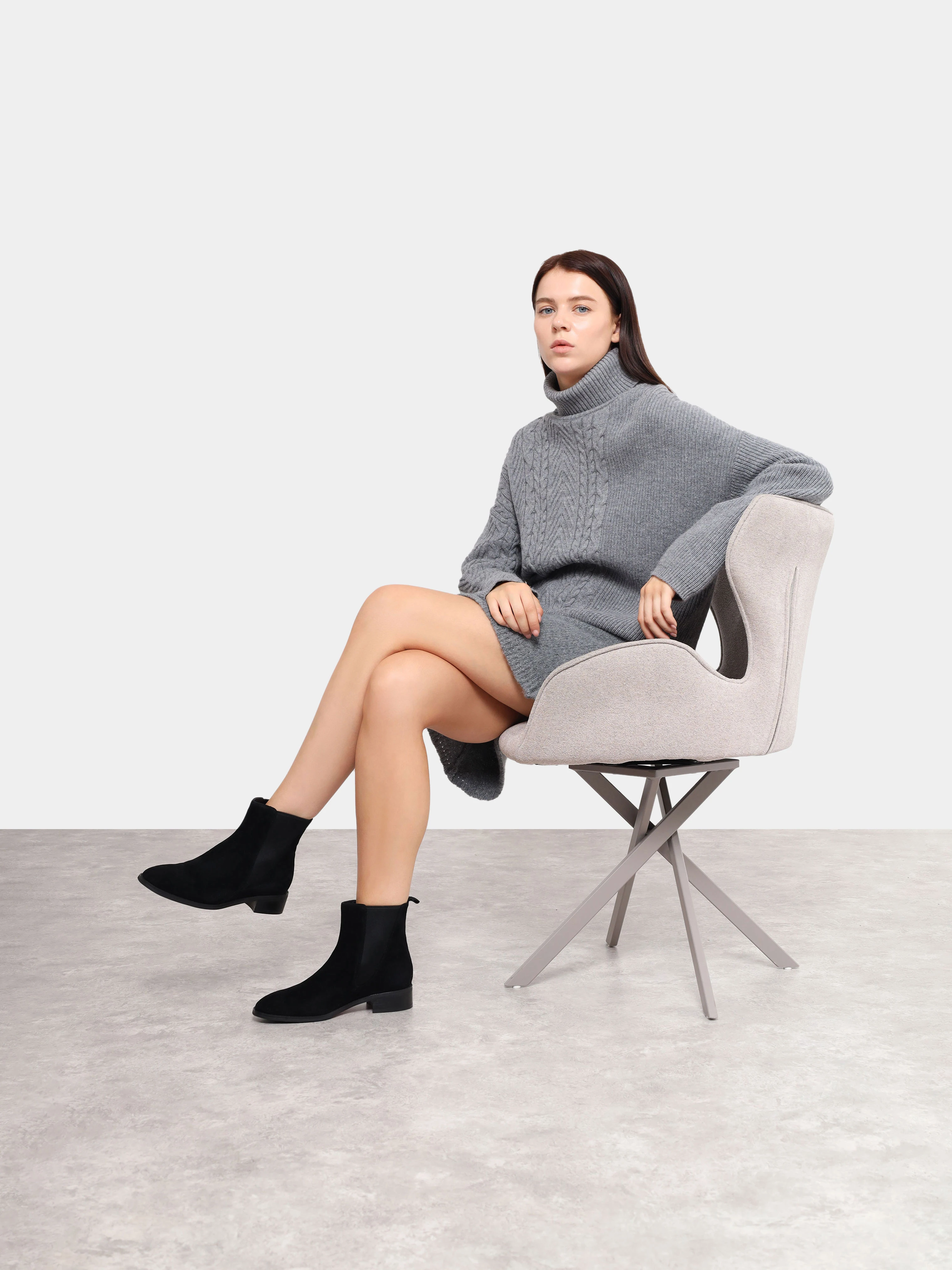 Полусапоги женские демисезонные, цвет черный, натуральный велюр