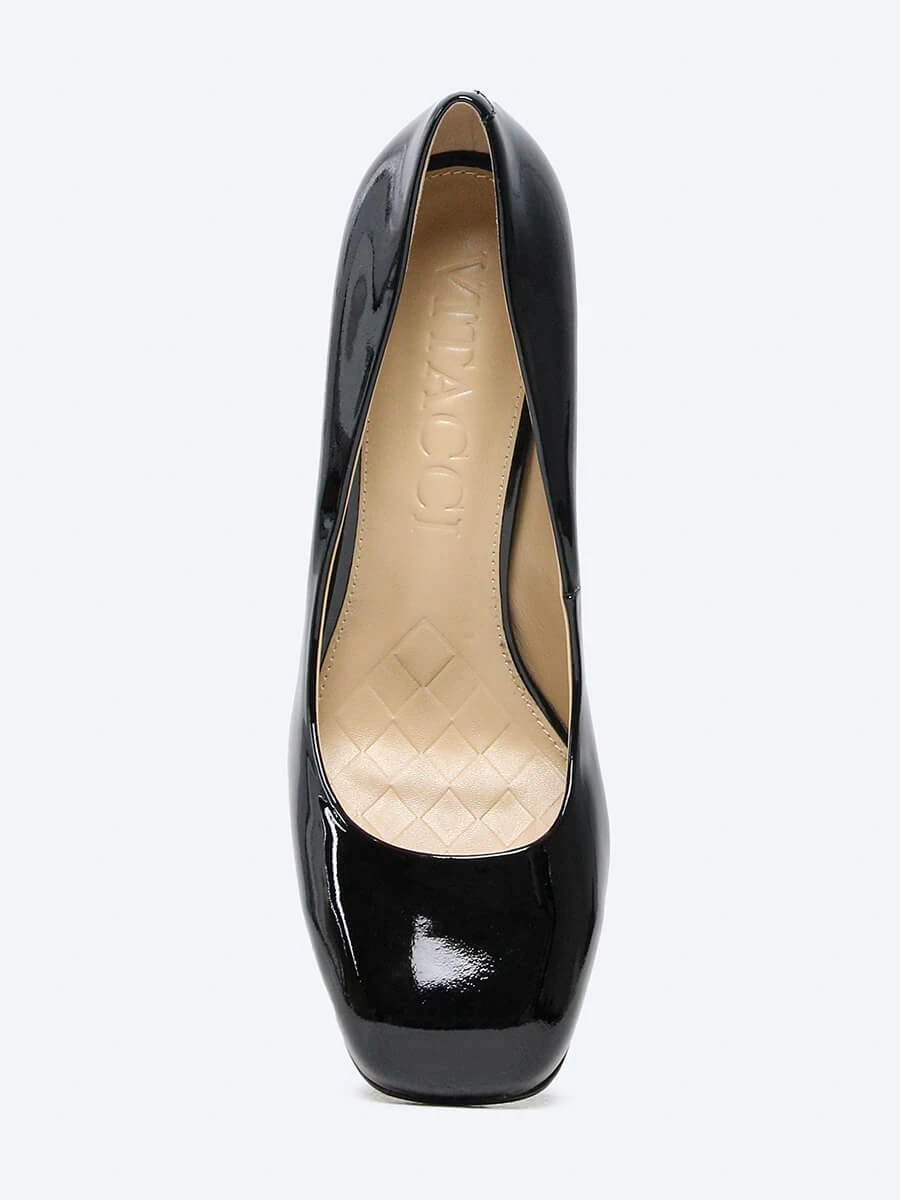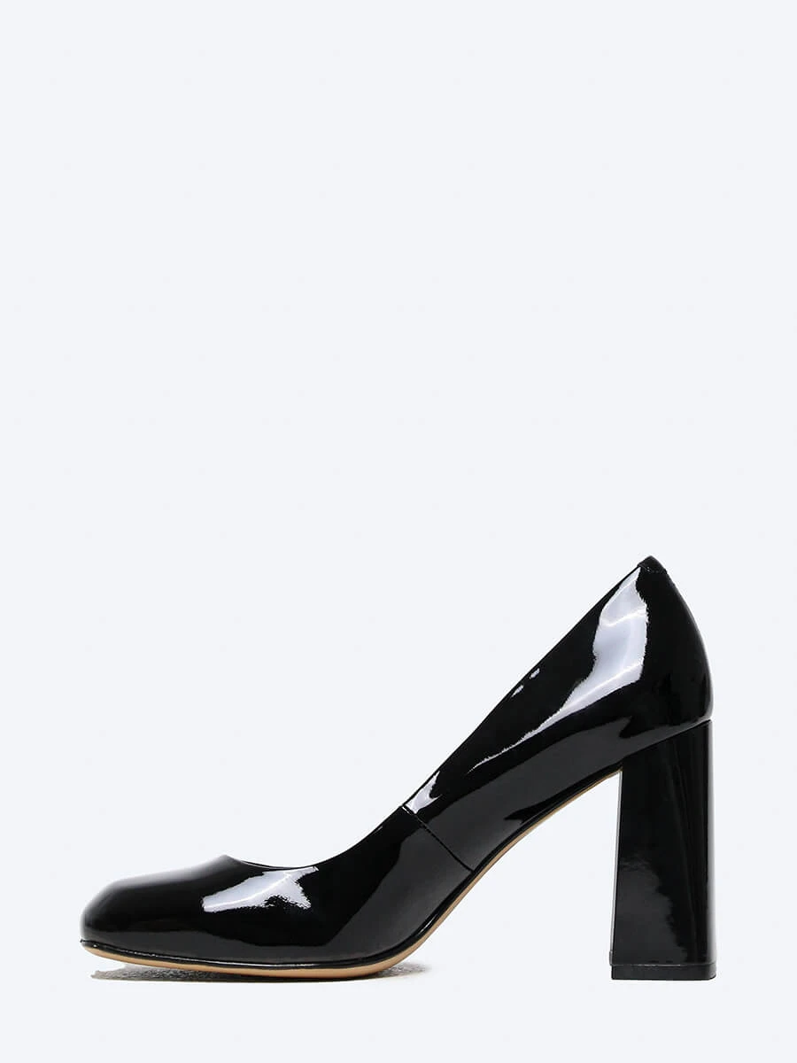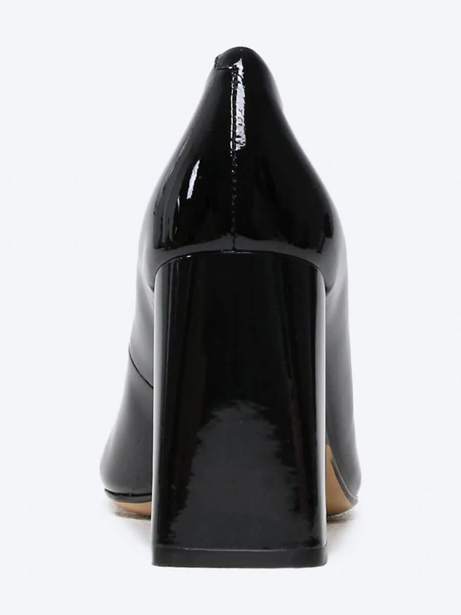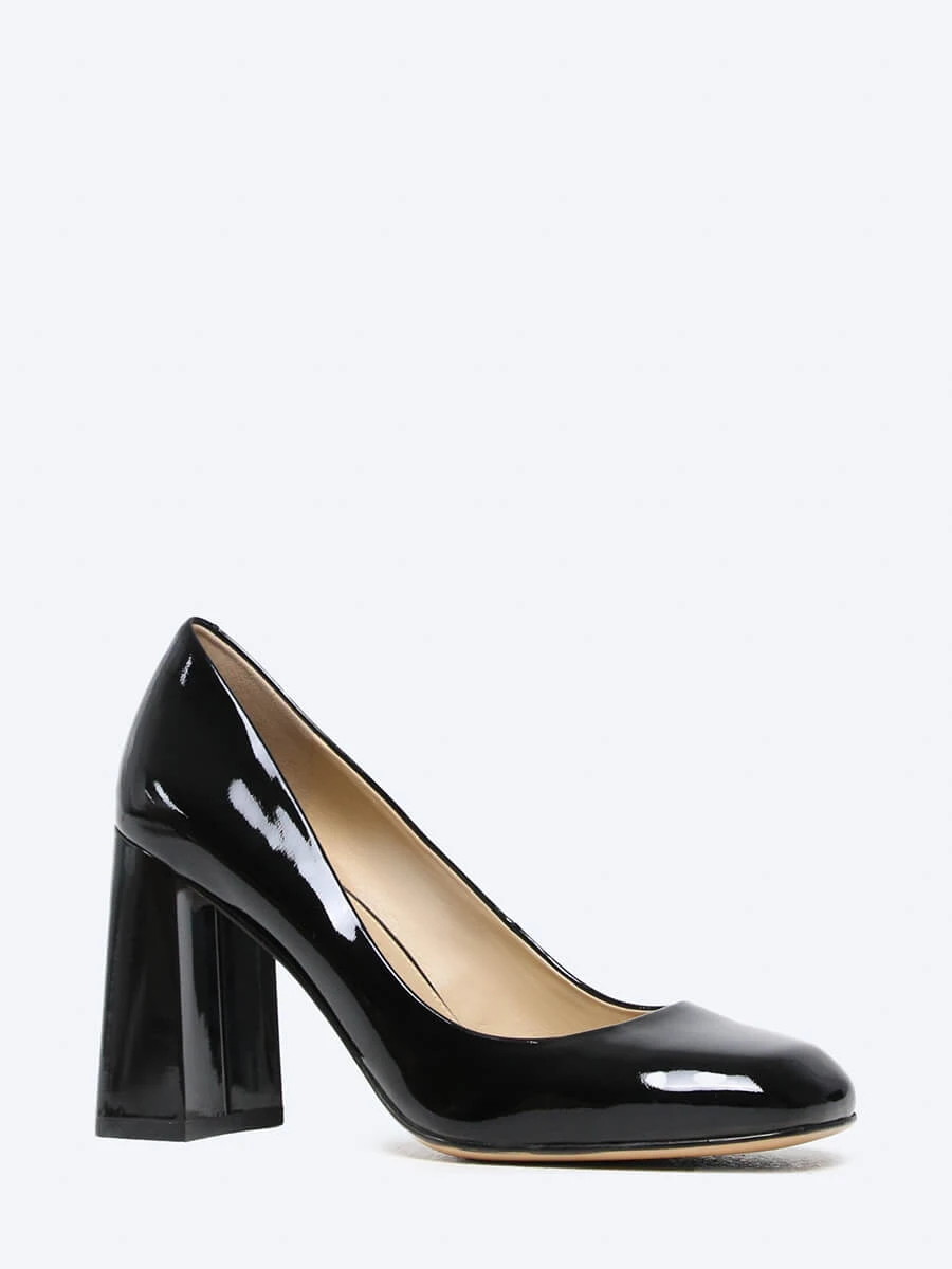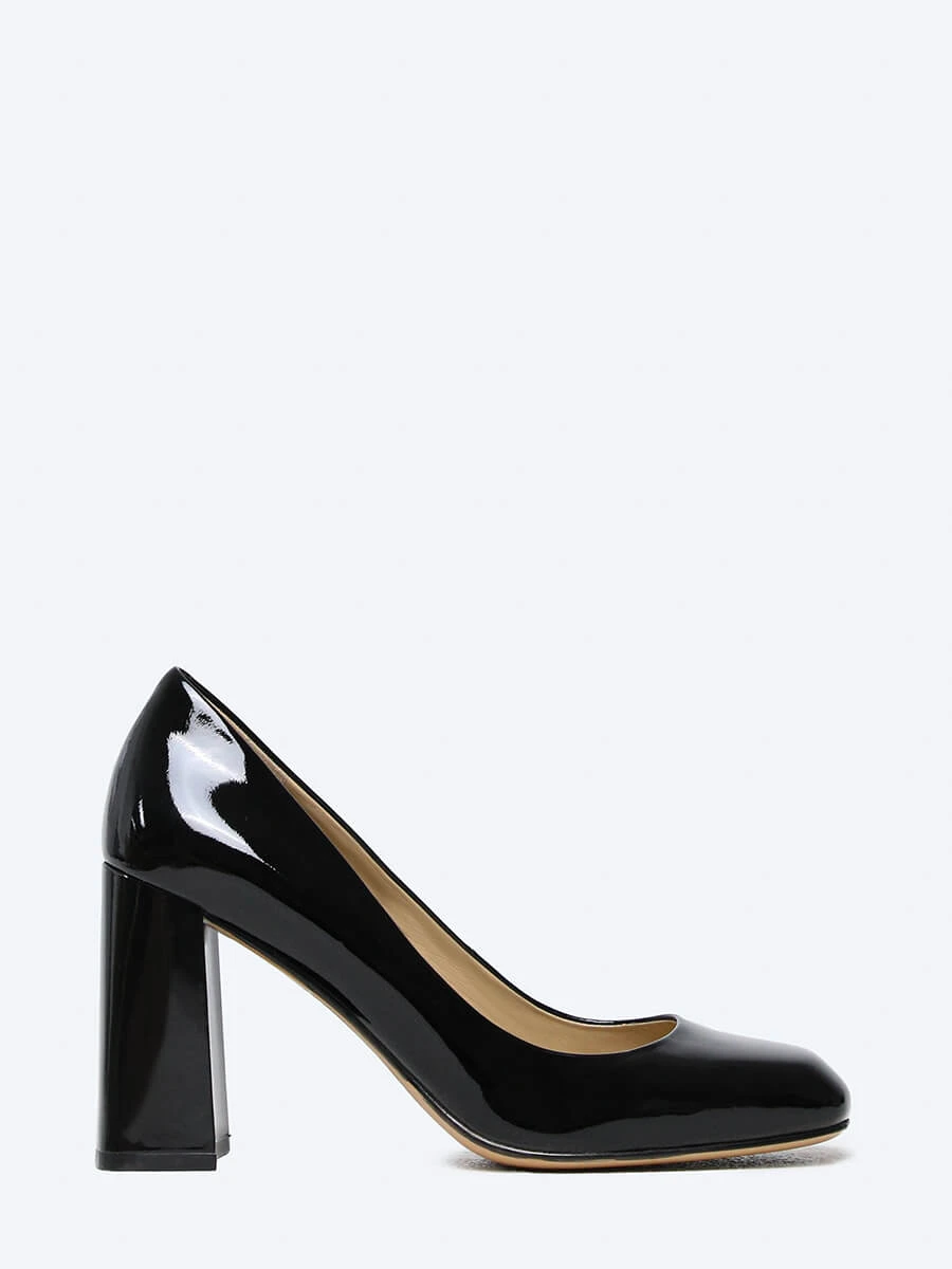 Туфли-лодочки из натуральной лаковой кожи. Широкий устойчивый каблук и круглый носок делают модель незаменимой при выборе обуви для классического элегантного образа.