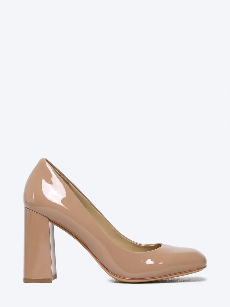 Туфли-лодочки из натуральной лаковой кожи. Широкий устойчивый каблук и круглый носок делают модель незаменимой при выборе обуви для классического элегантного образа.