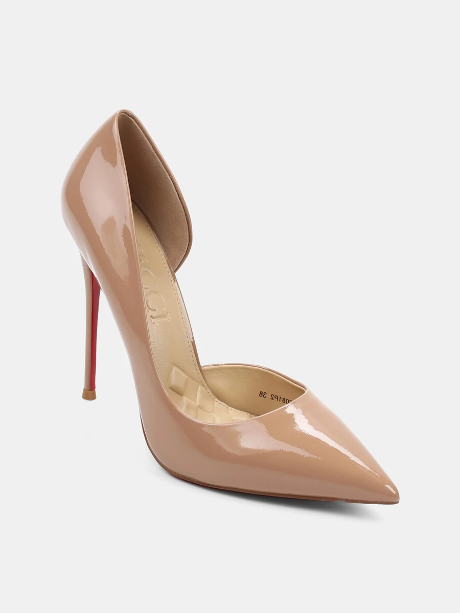 Туфли женские всесезонные, цвет бежевый, натуральная лаковая кожа