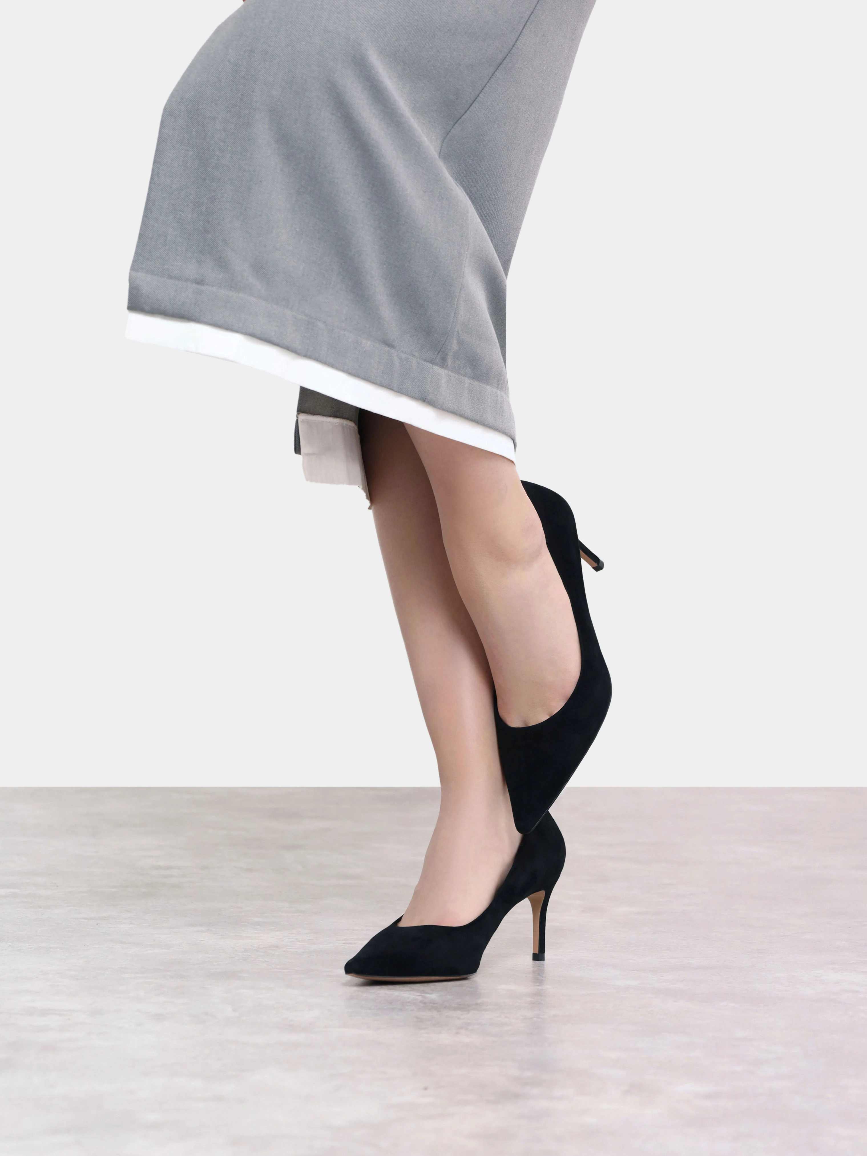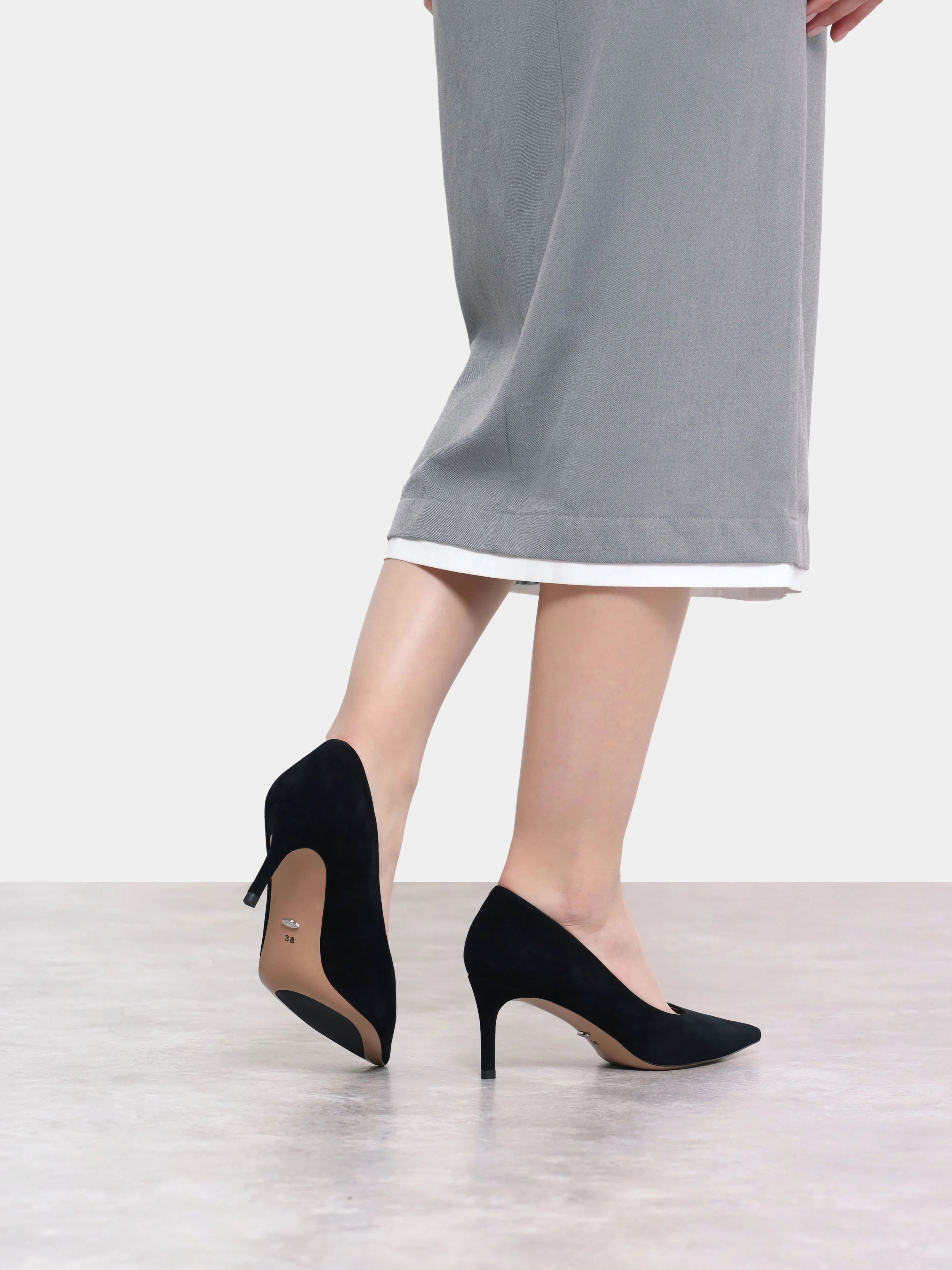 Туфли женские всесезонные, цвет черный, натуральный велюр