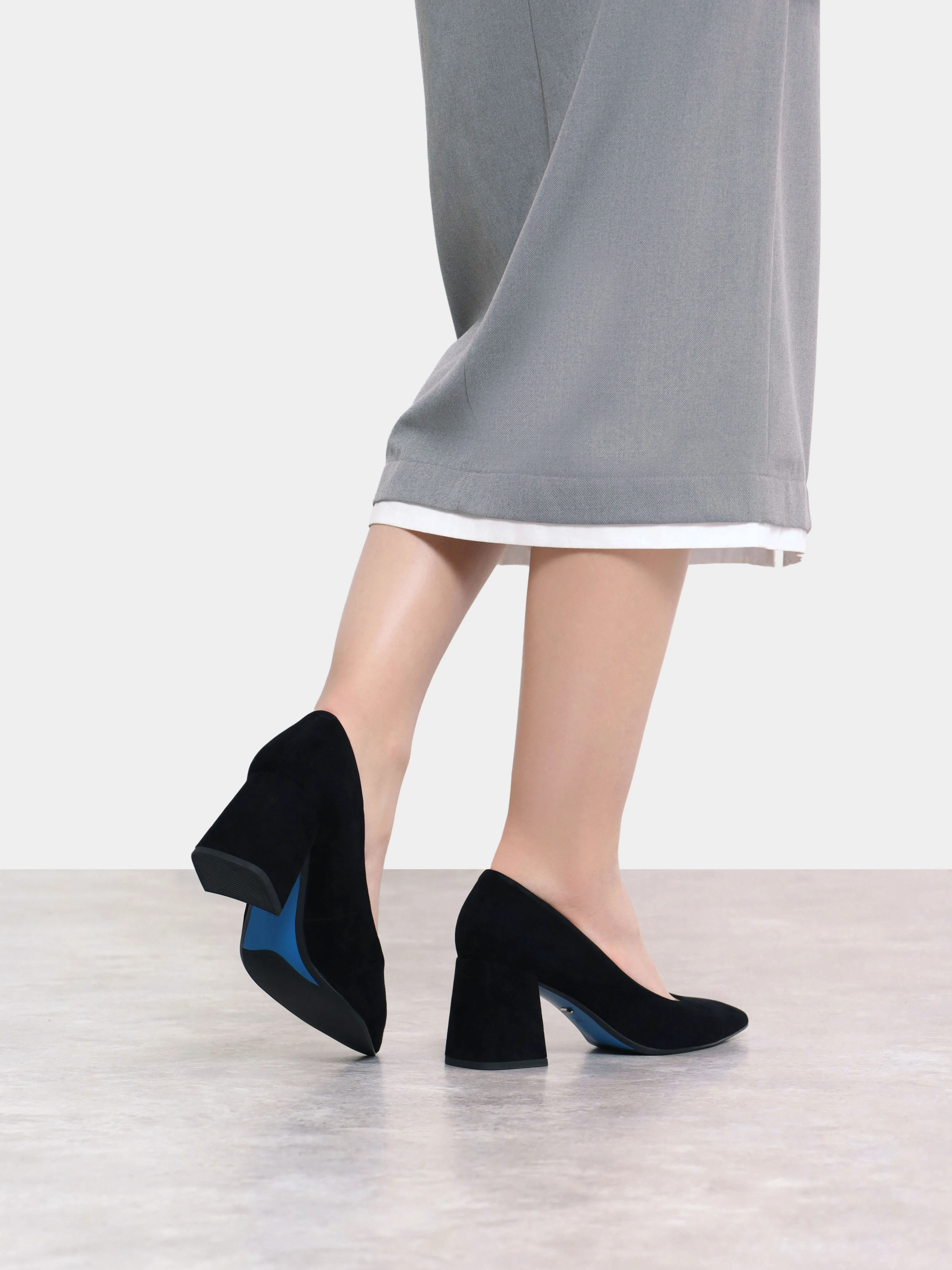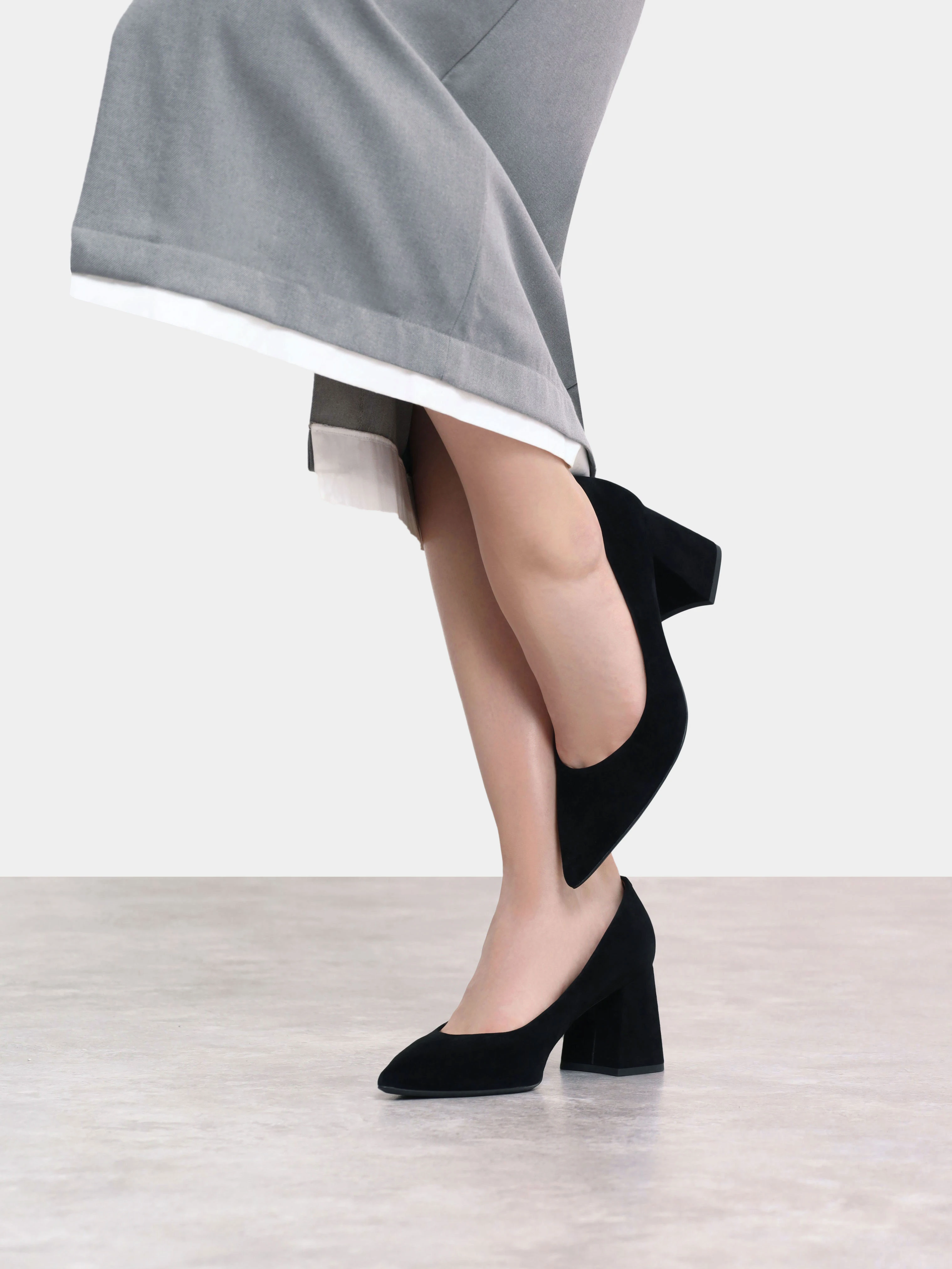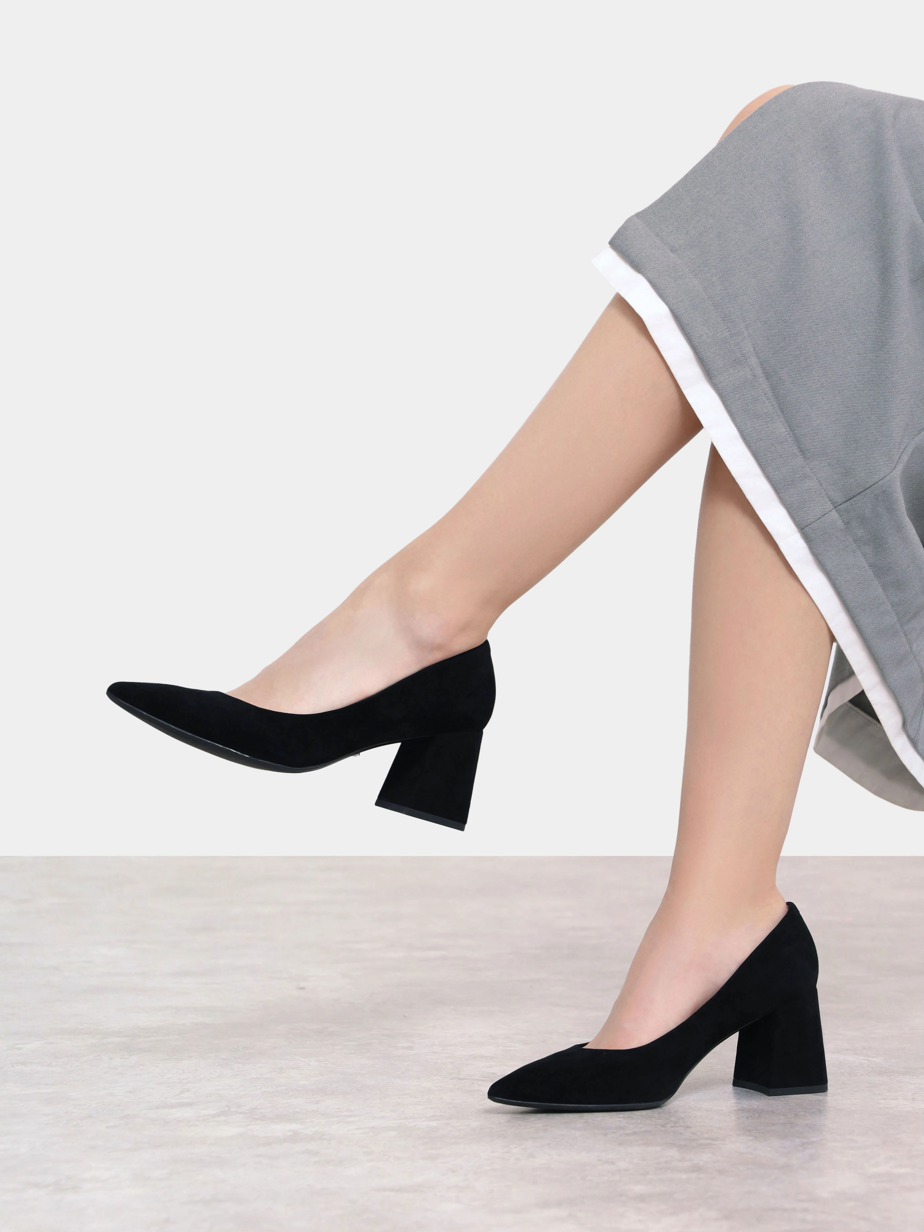 Туфли женские всесезонные, цвет черный, натуральный велюр