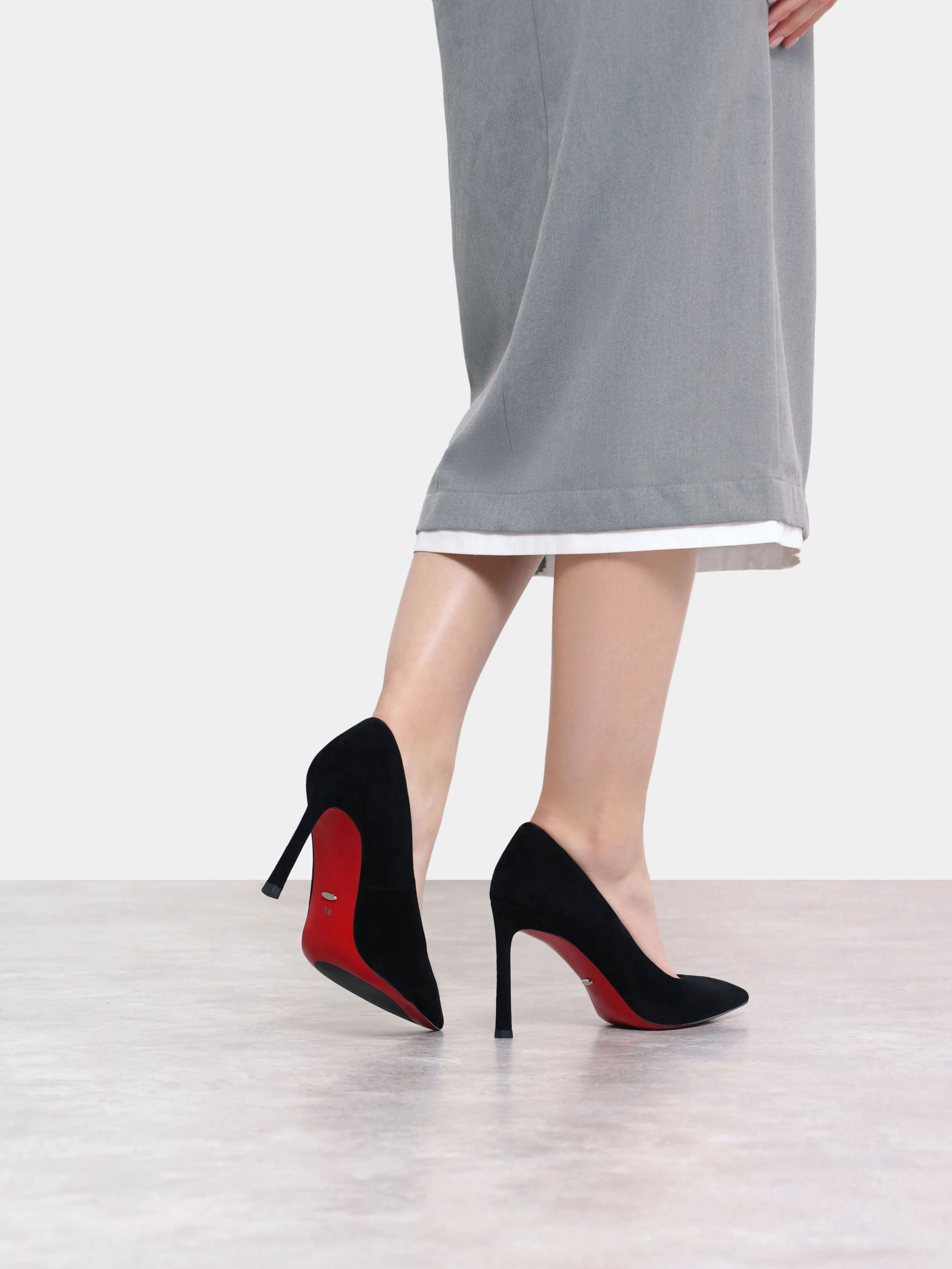 Туфли женские всесезонные, цвет черный, натуральный велюр