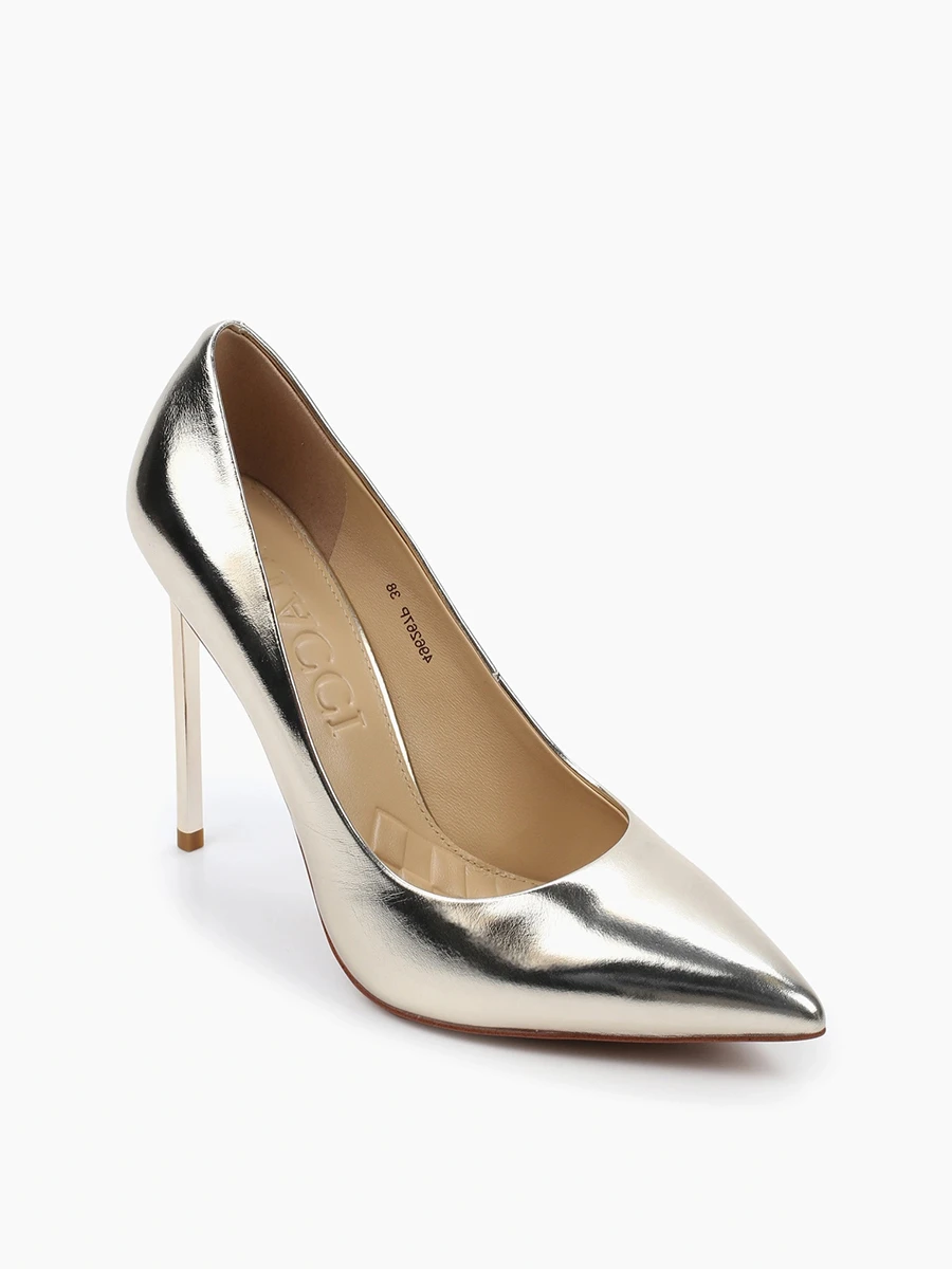 Туфли женские всесезонные, цвет золотой, натуральная кожа