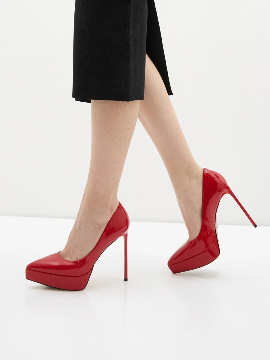 Туфли женские всесезонные, цвет красный, натуральная лаковая кожа