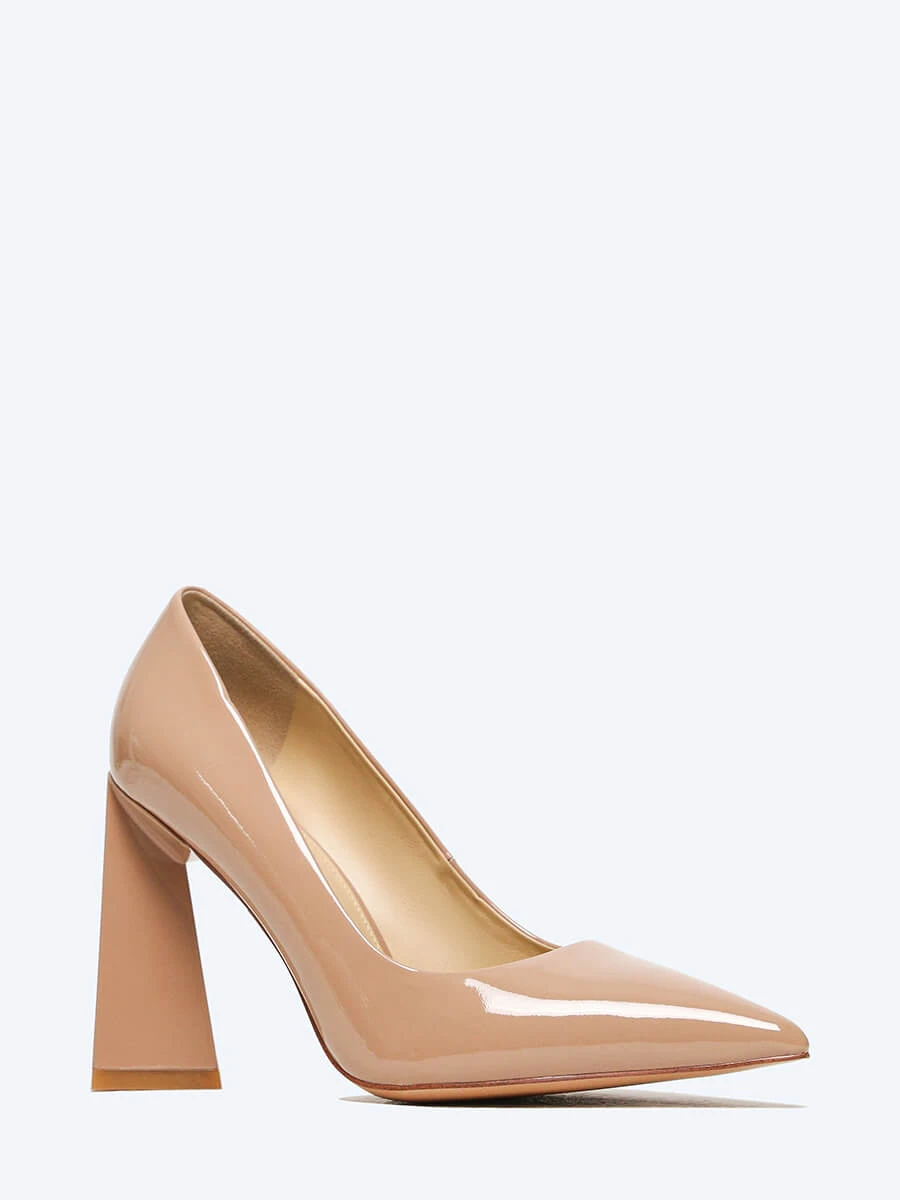 Туфли женские всесезонные, цвет бежевый, натуральная лаковая кожа
