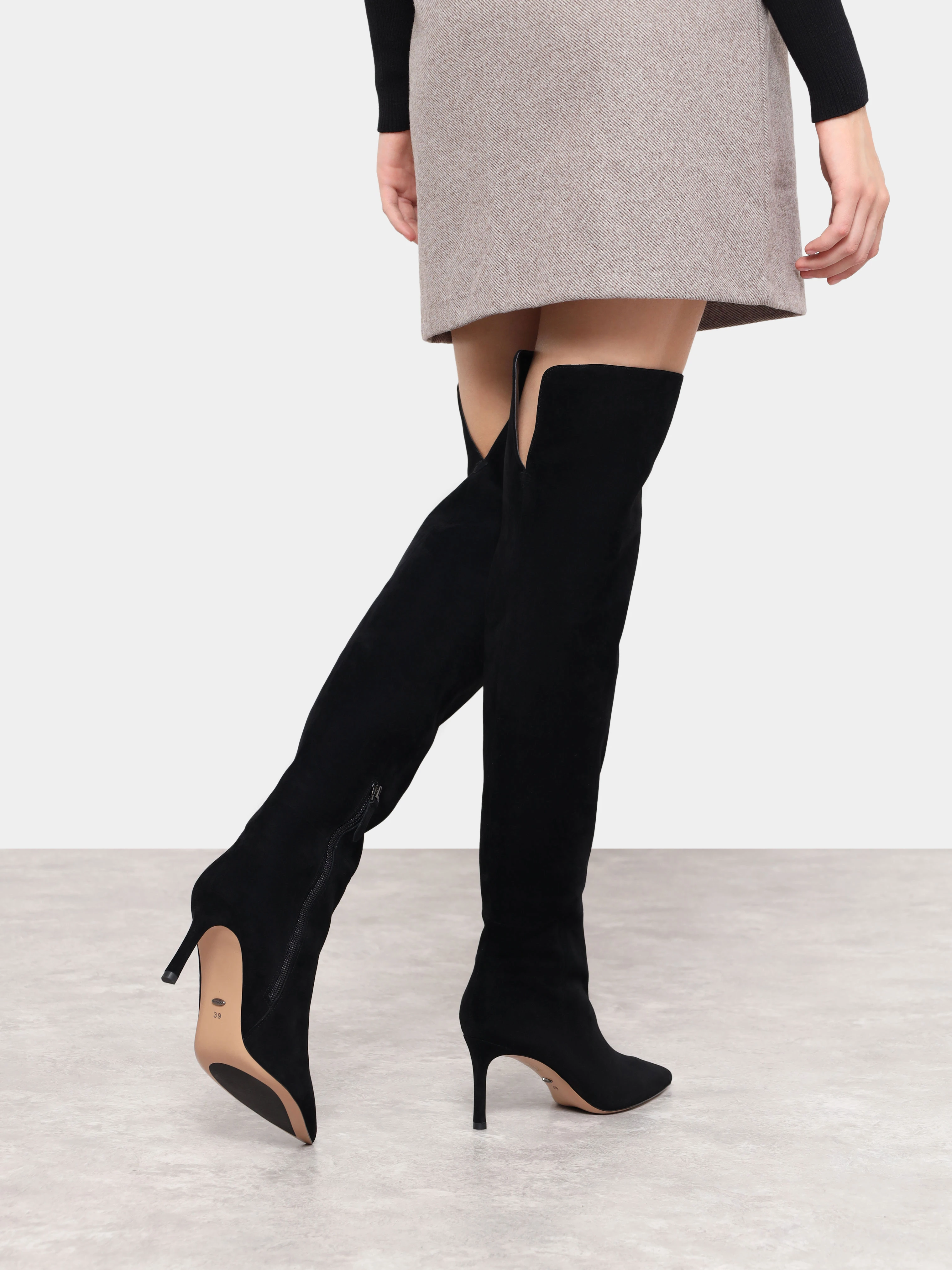 Ботфорты женские демисезонные, цвет черный, натуральный велюр