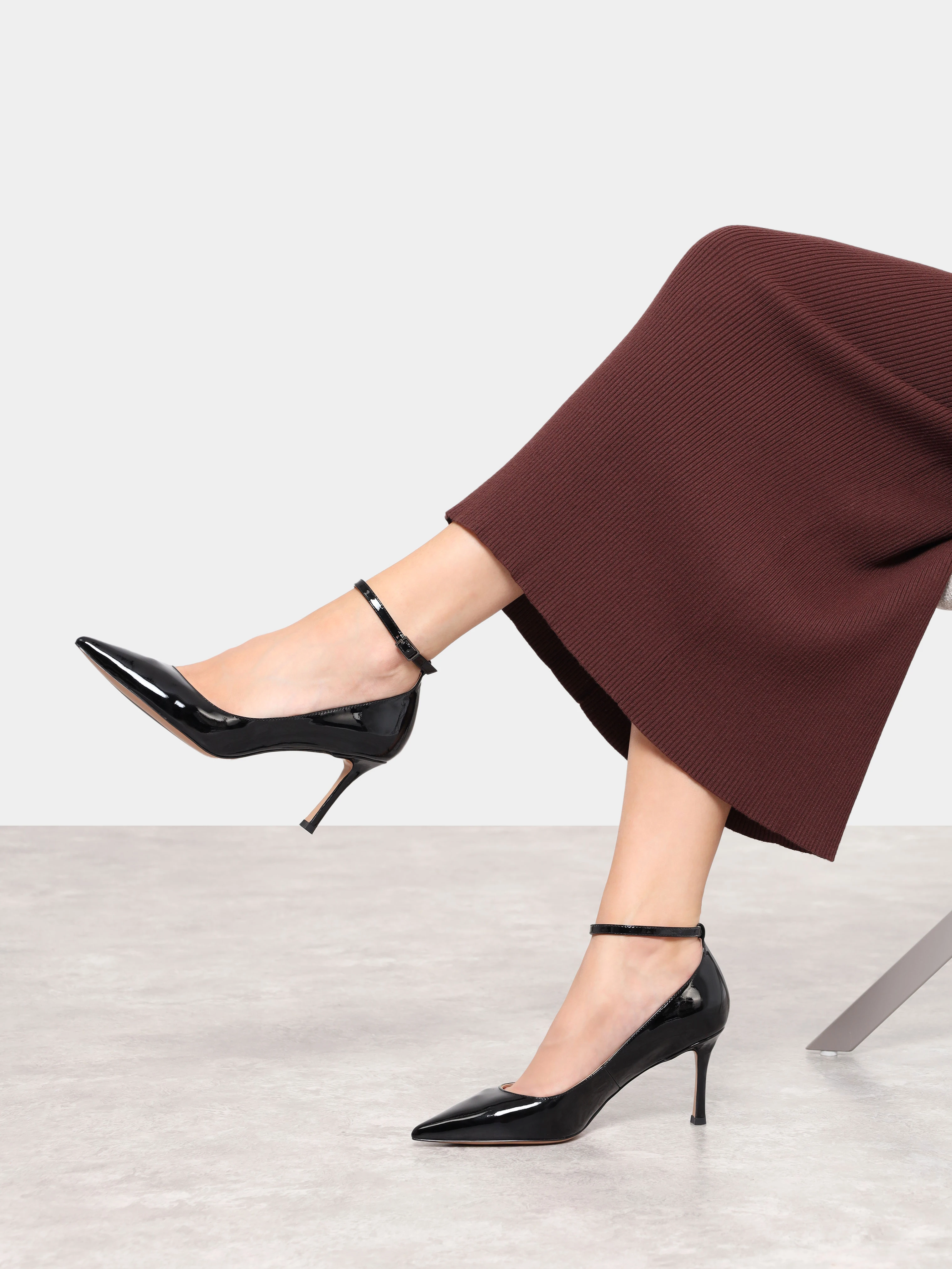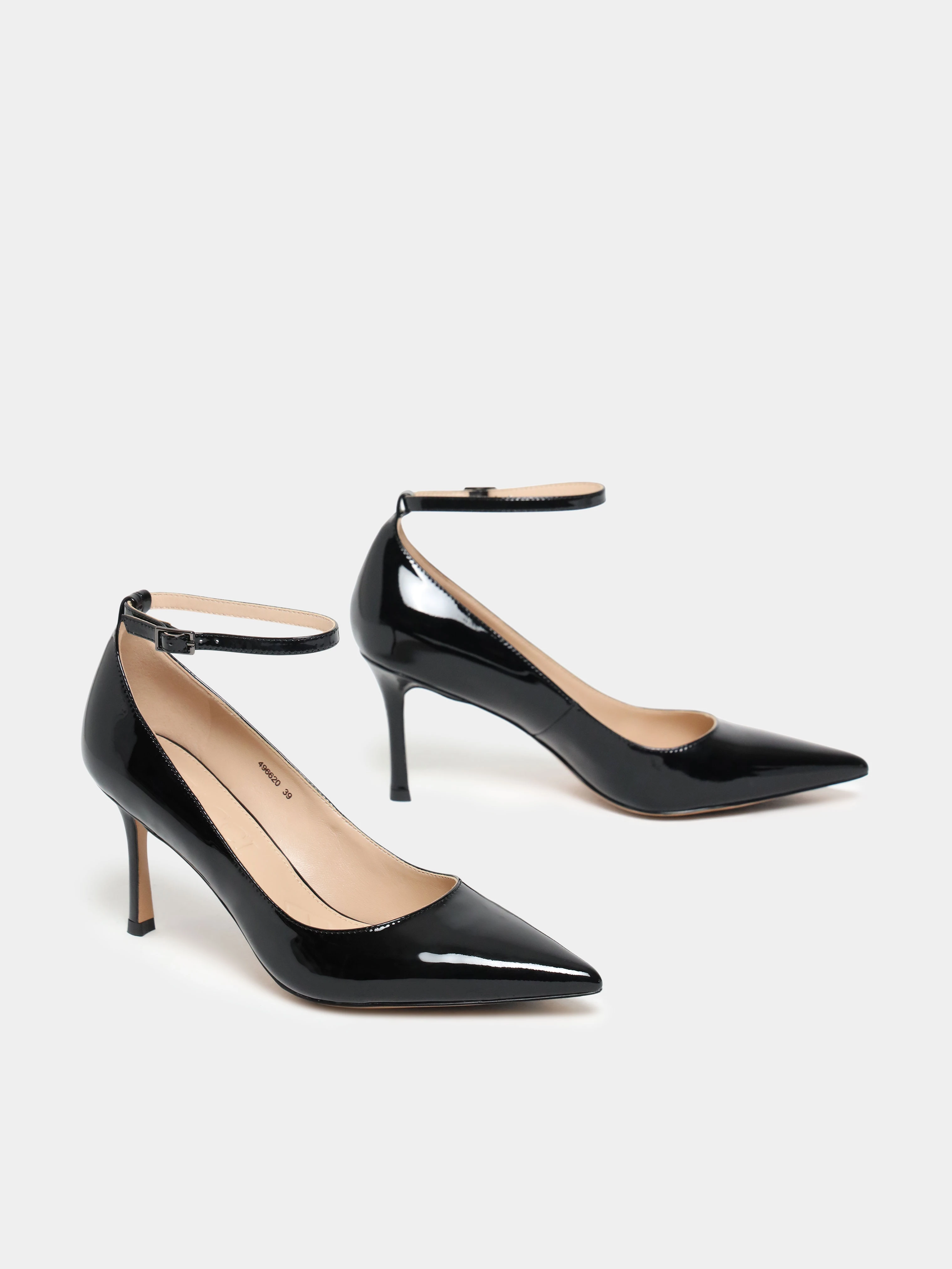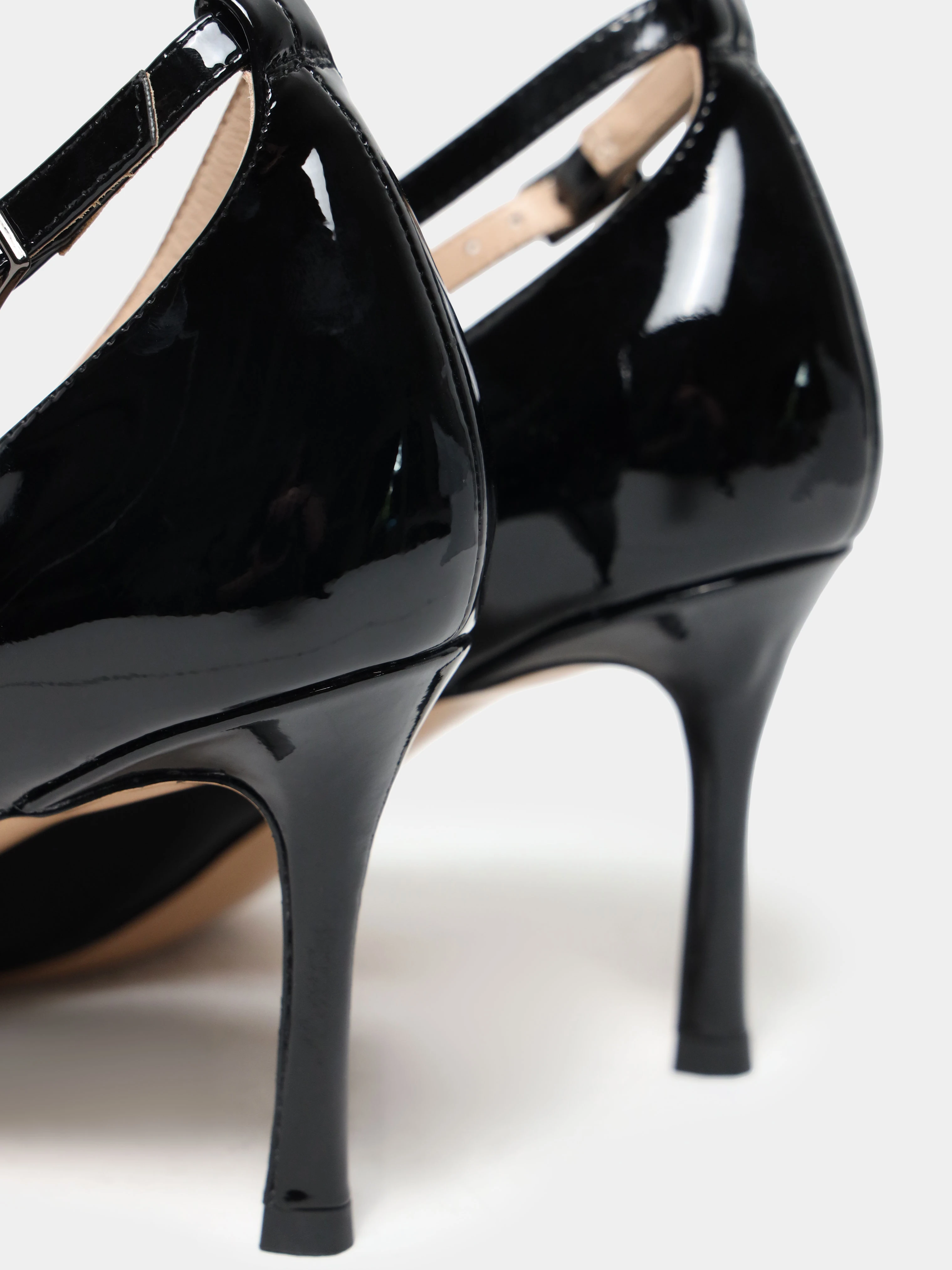 Туфли женские всесезонные, цвет черный, натуральная лаковая кожа