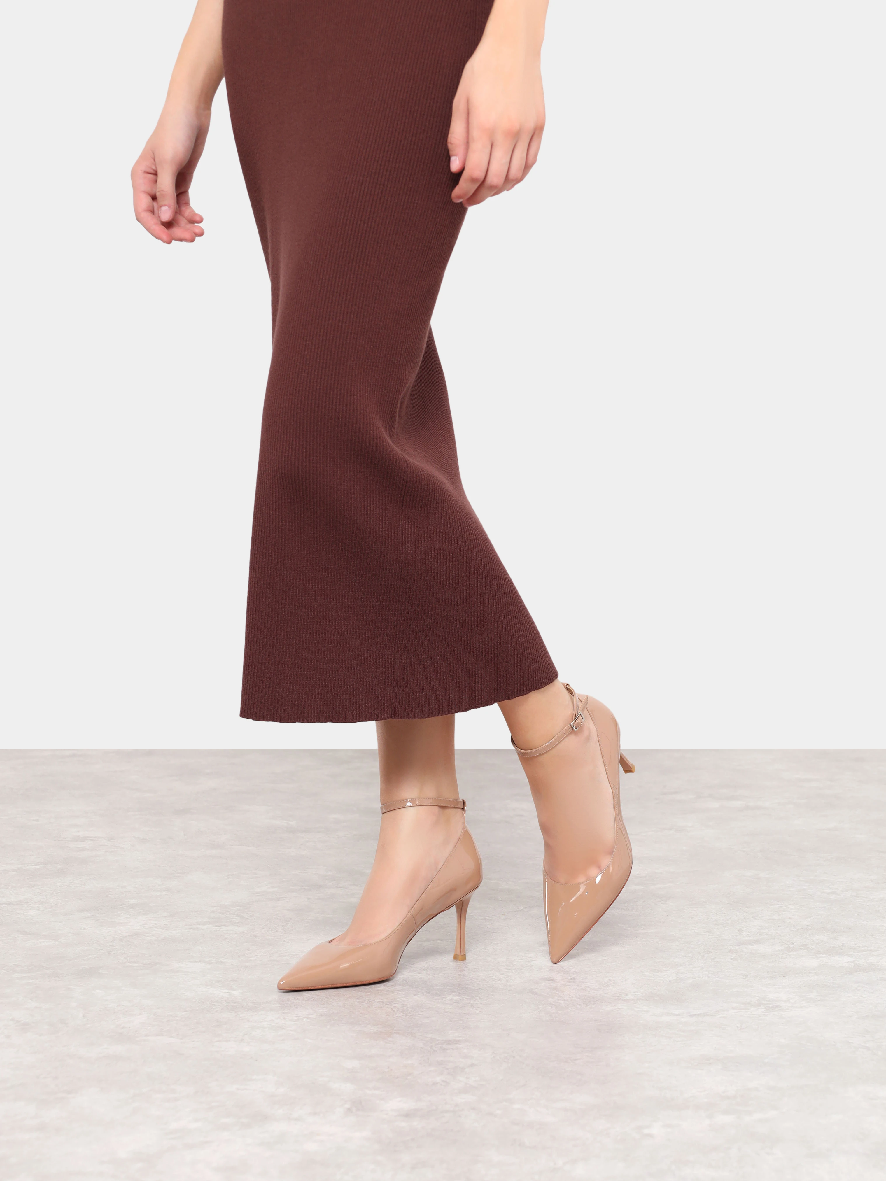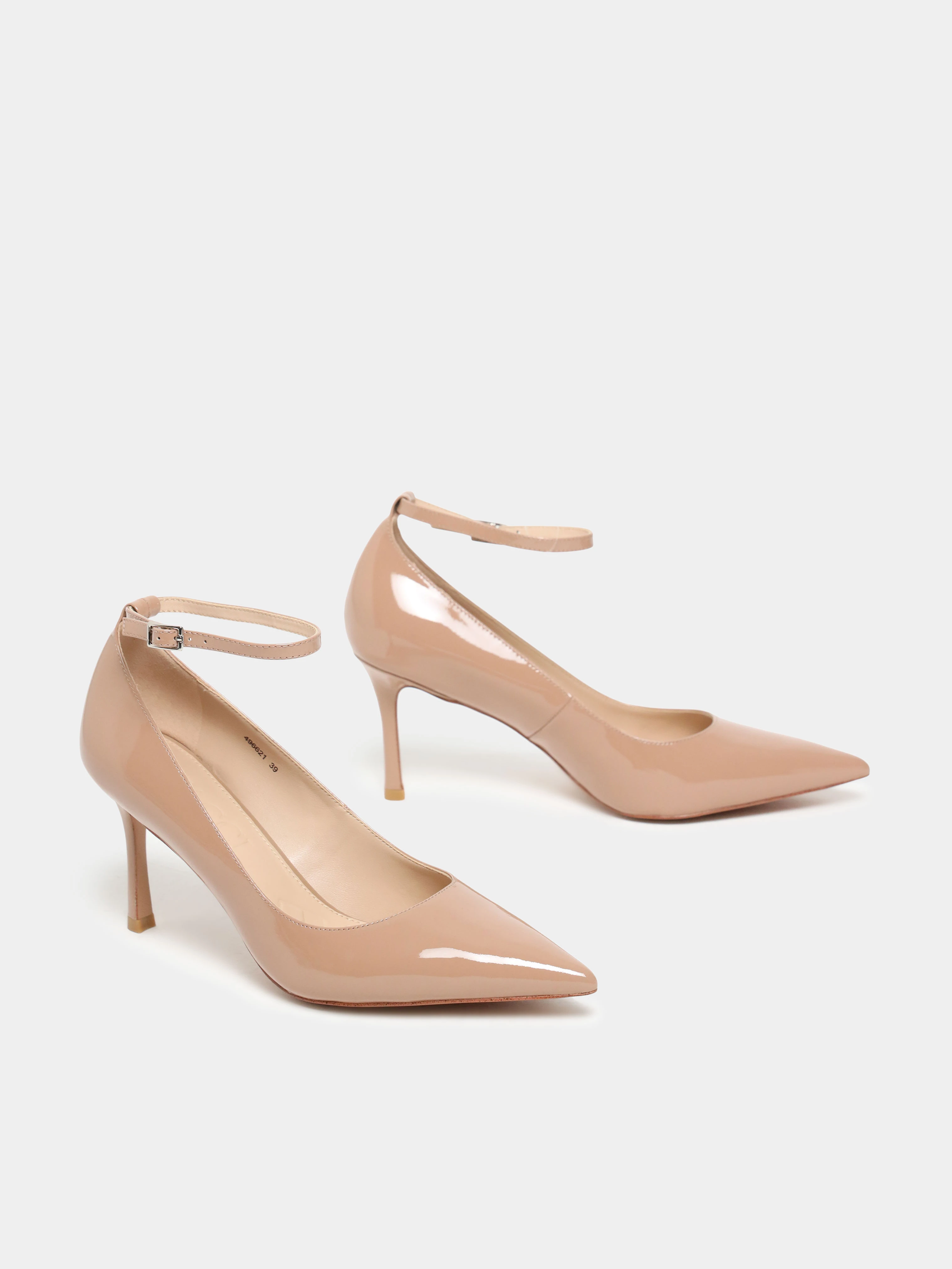 Туфли женские всесезонные, цвет бежевый, натуральная лаковая кожа