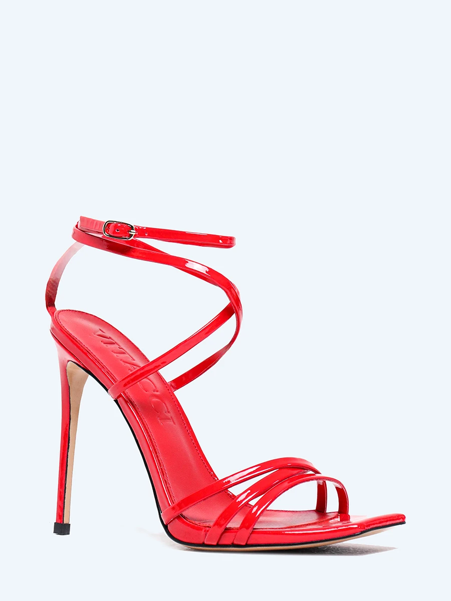 Босоножки женские летние, цвет красный, натуральная лаковая кожа