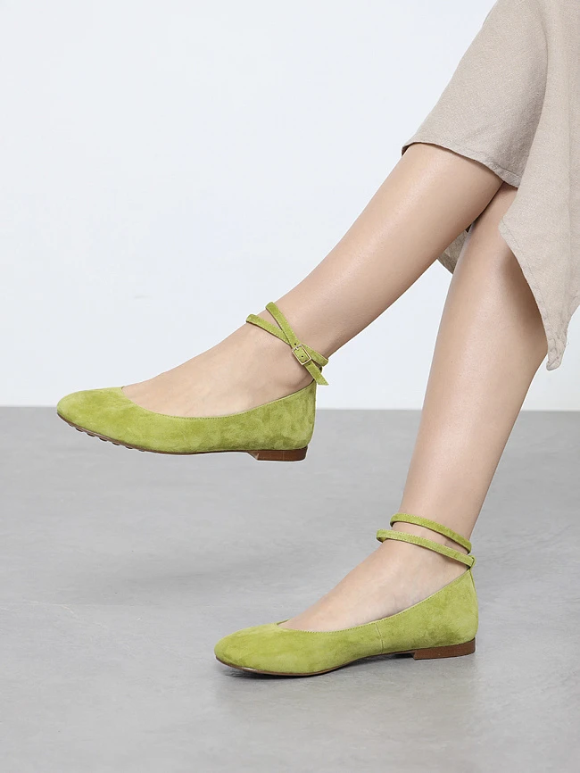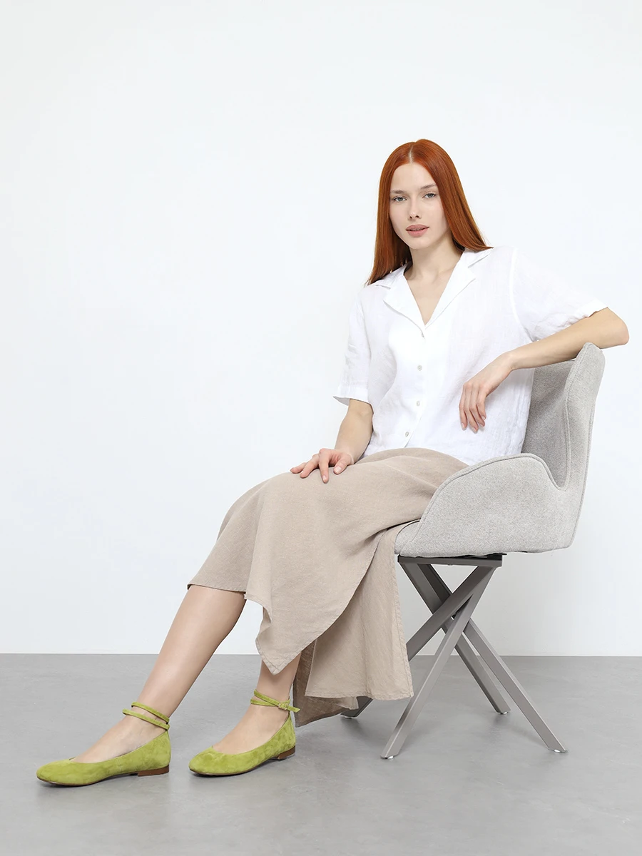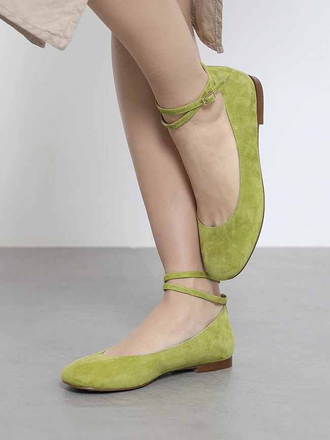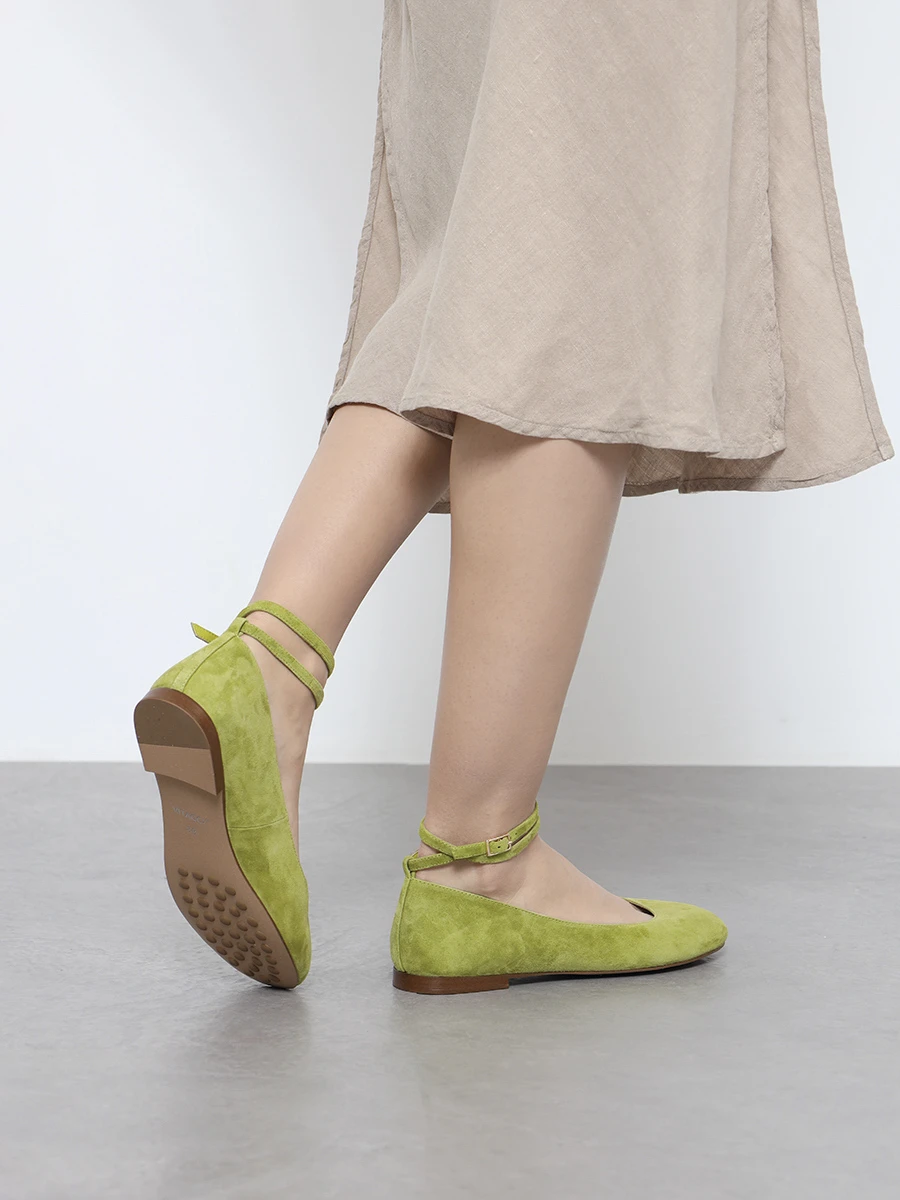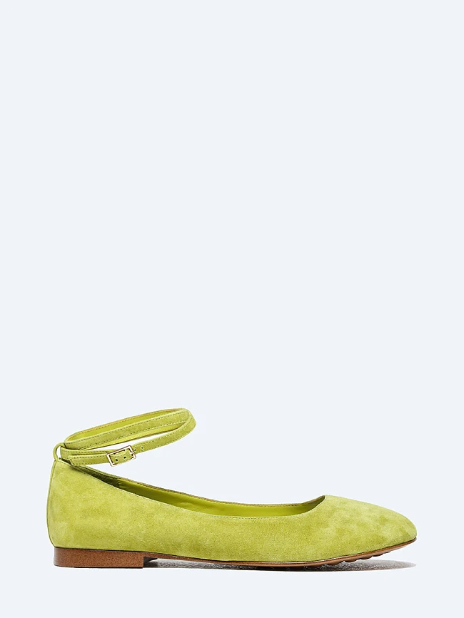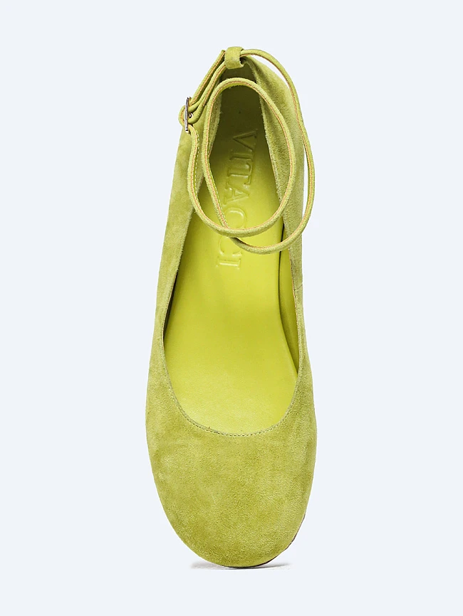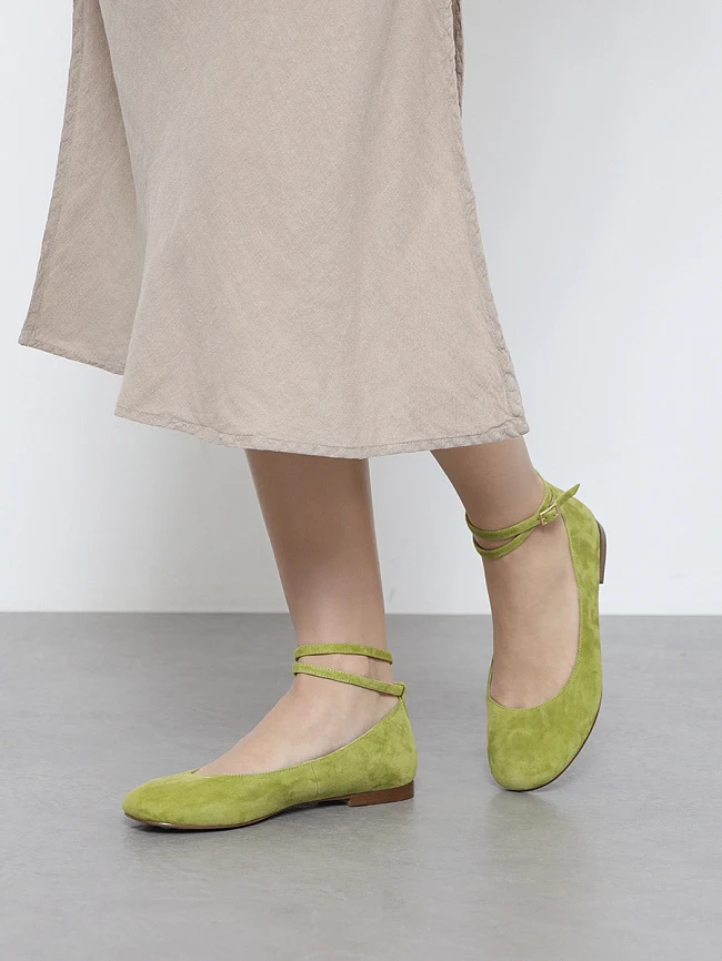 Балетки женские всесезонные, цвет салатовый, натуральный велюр