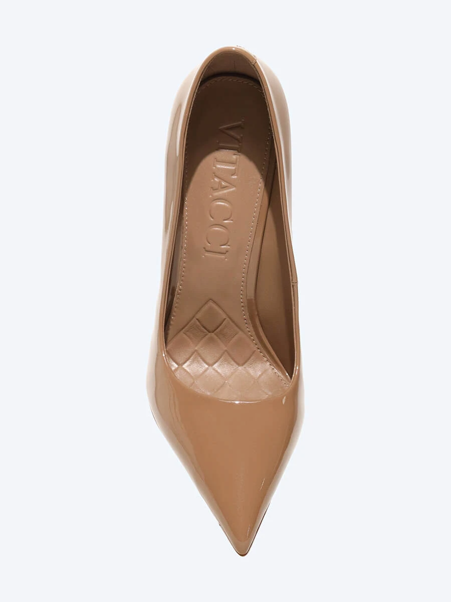Туфли женские всесезонные, цвет бежевый, натуральная лаковая кожа