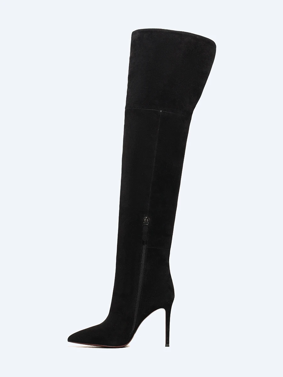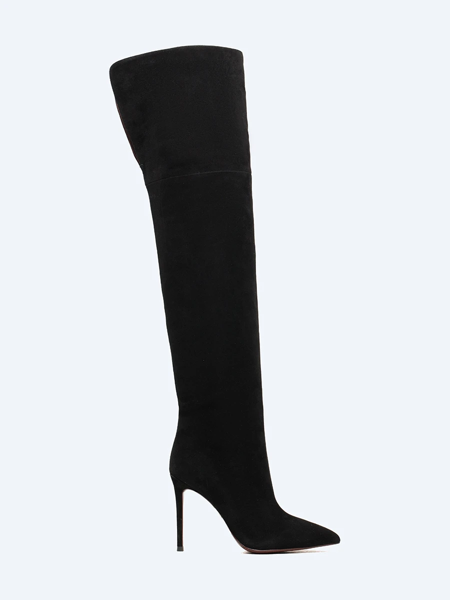 Ботфорты женские демисезонные, цвет черный, натуральный велюр