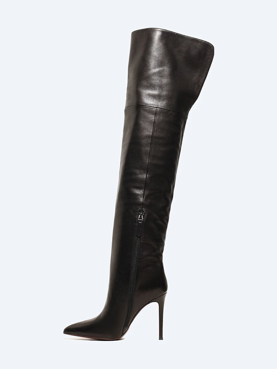 Ботфорты женские демисезонные, цвет черный, натуральная кожа