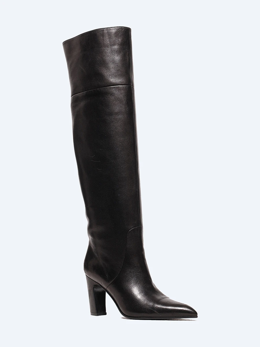 Ботфорты женские демисезонные, цвет черный, натуральная кожа