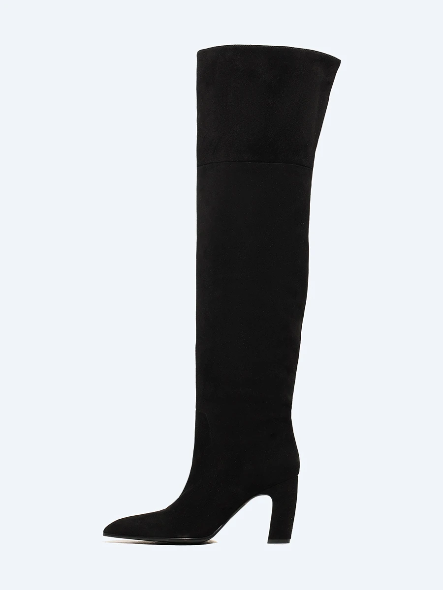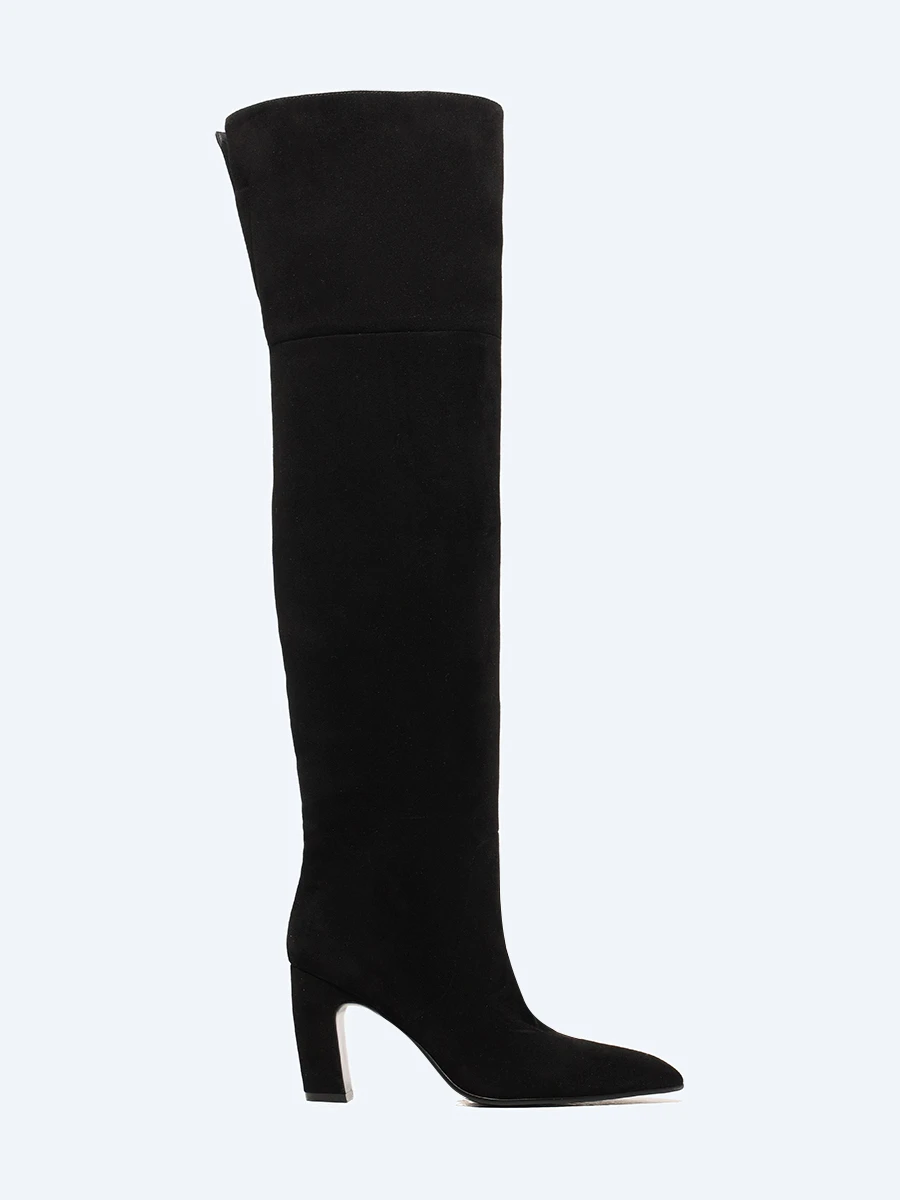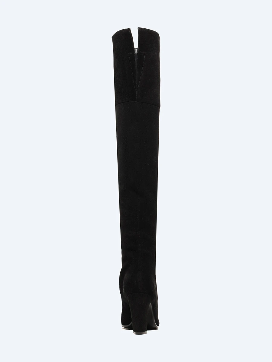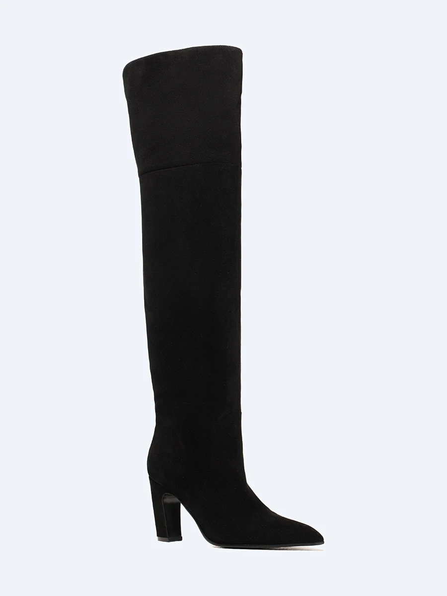 Ботфорты женские демисезонные, цвет черный, натуральный велюр