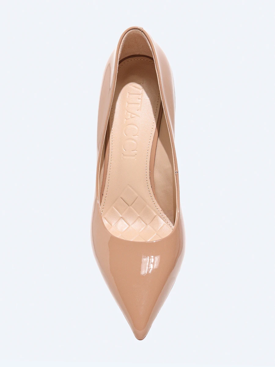 Туфли женские всесезонные, цвет бежевый, натуральная лаковая кожа