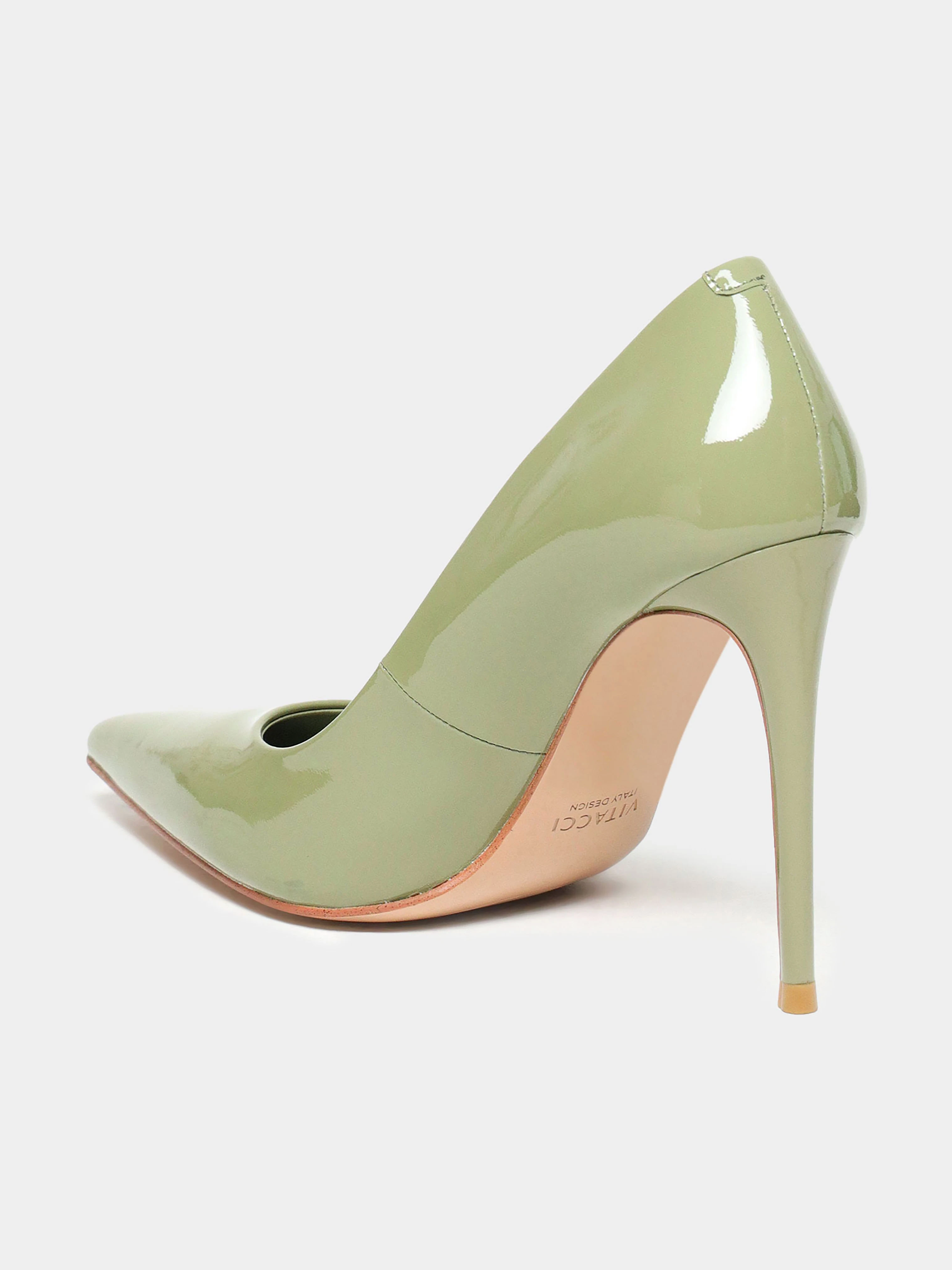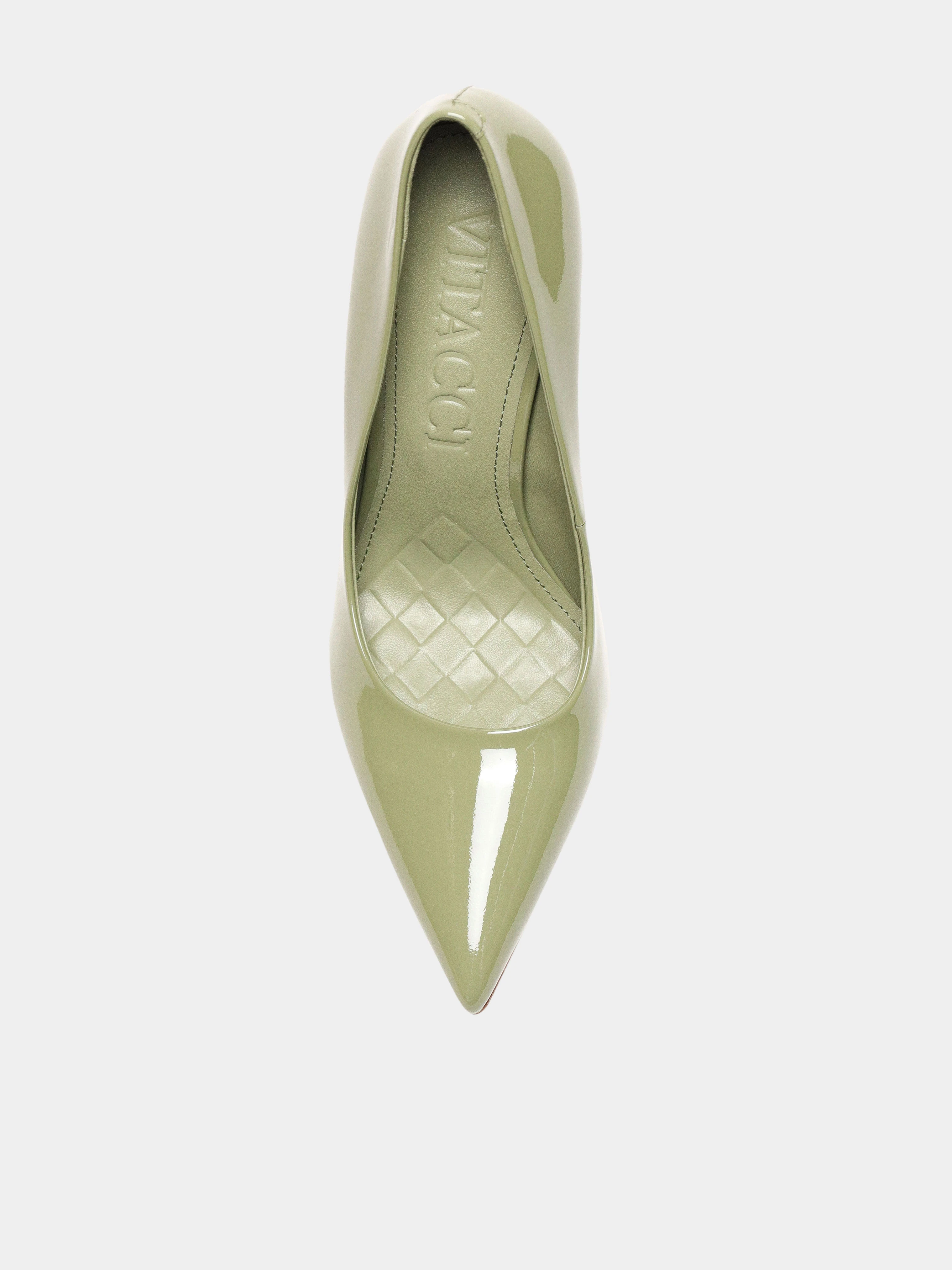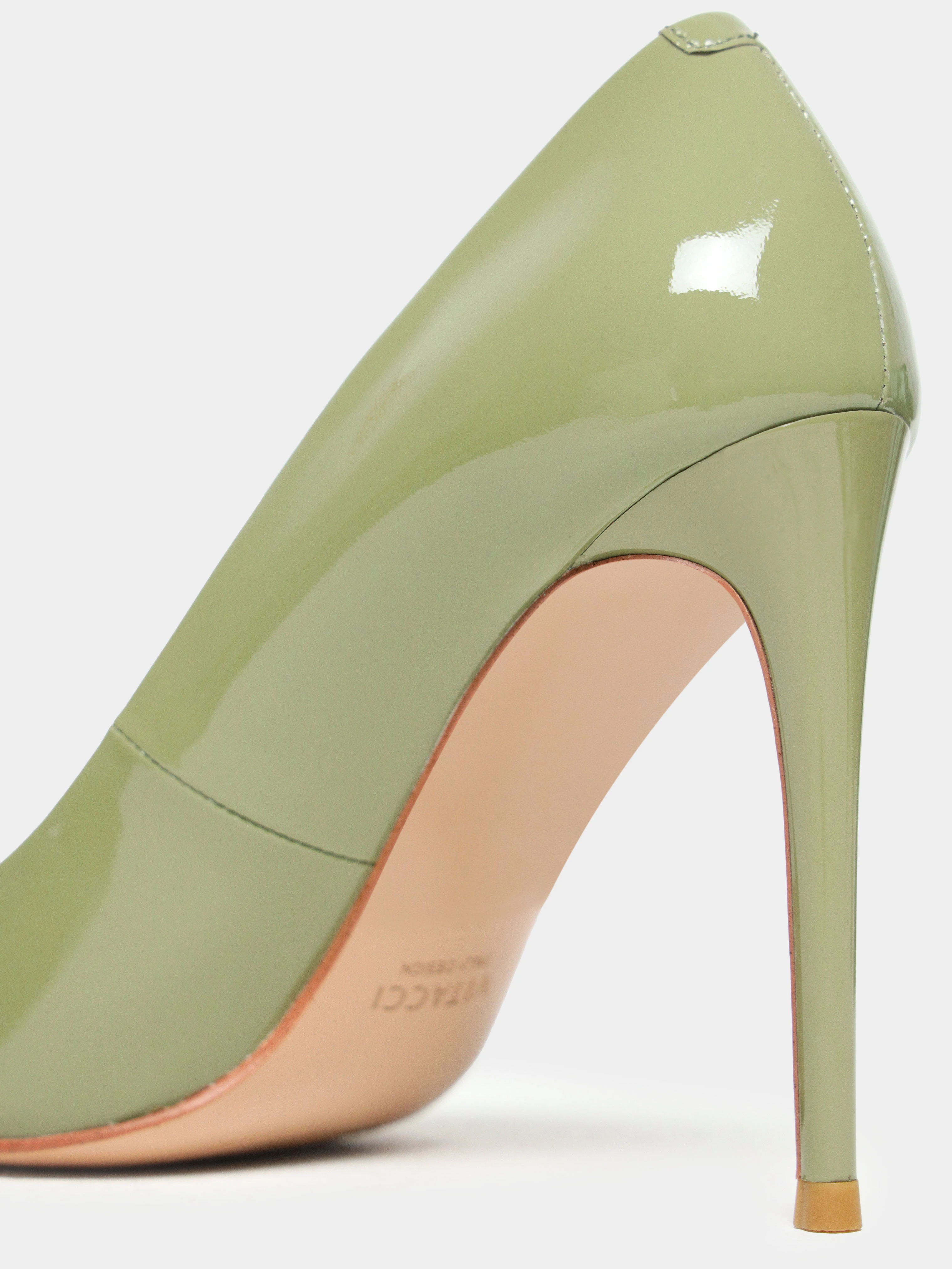 Туфли женские всесезонные, цвет хаки, натуральная лаковая кожа