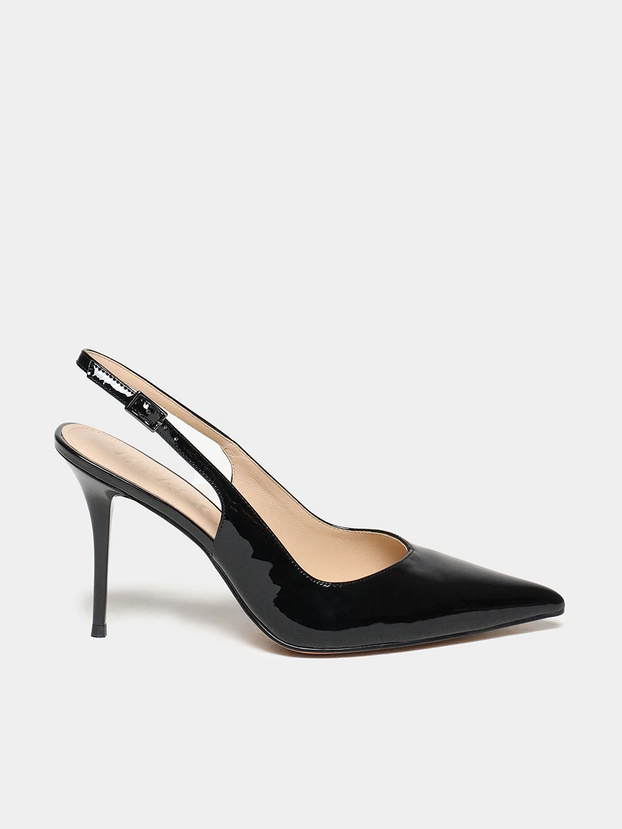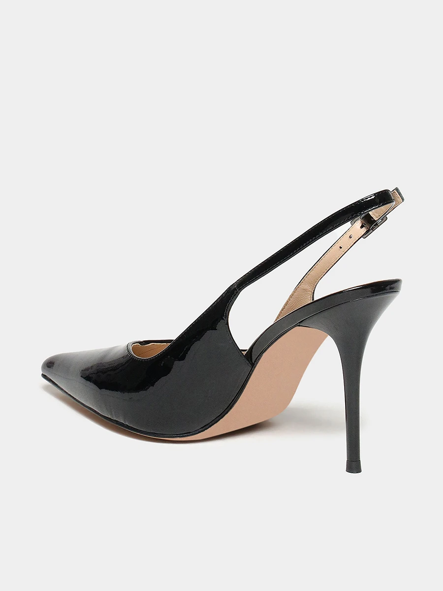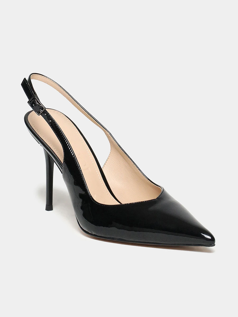 Туфли женские летние, цвет черный, натуральная лаковая кожа