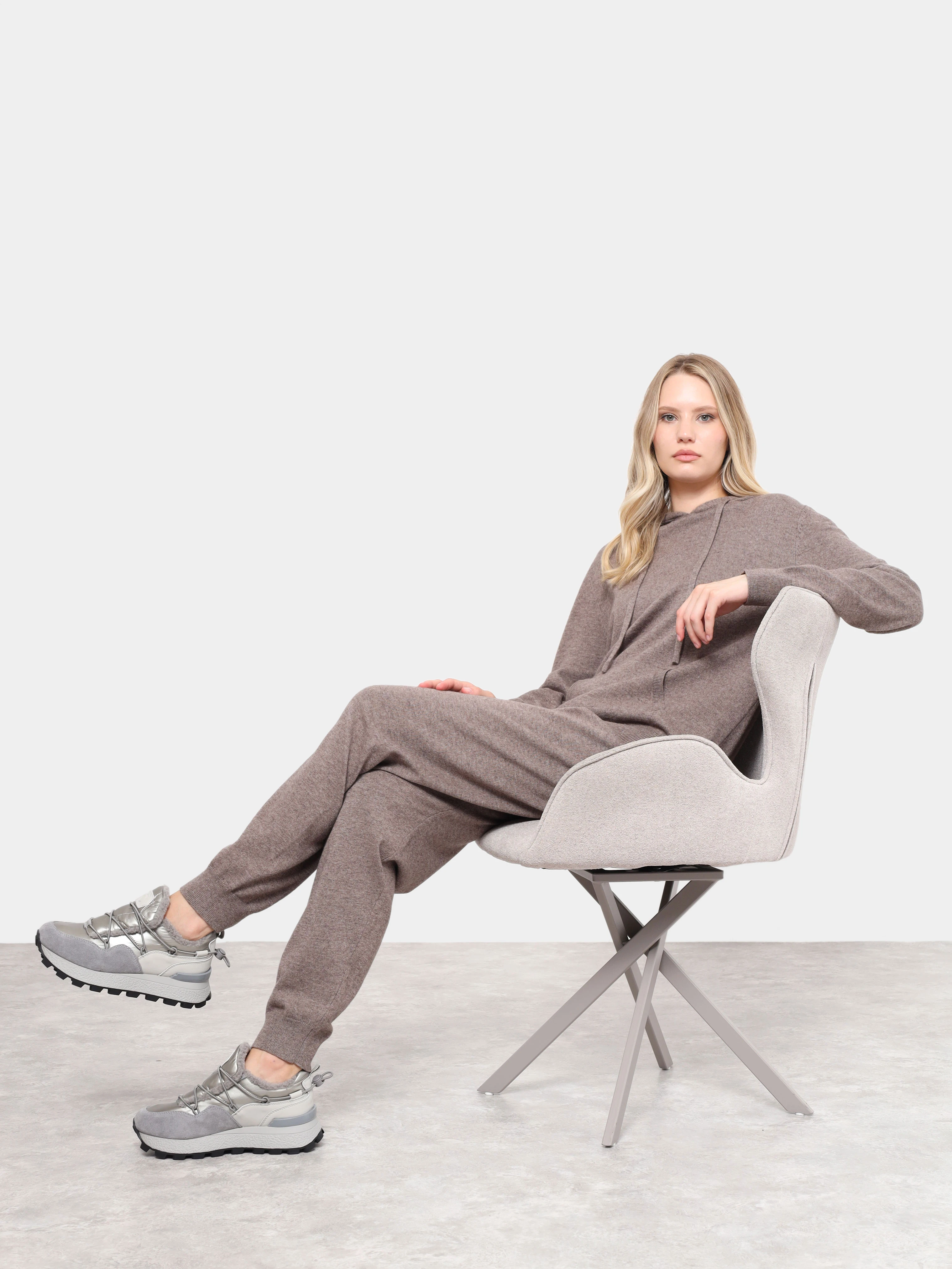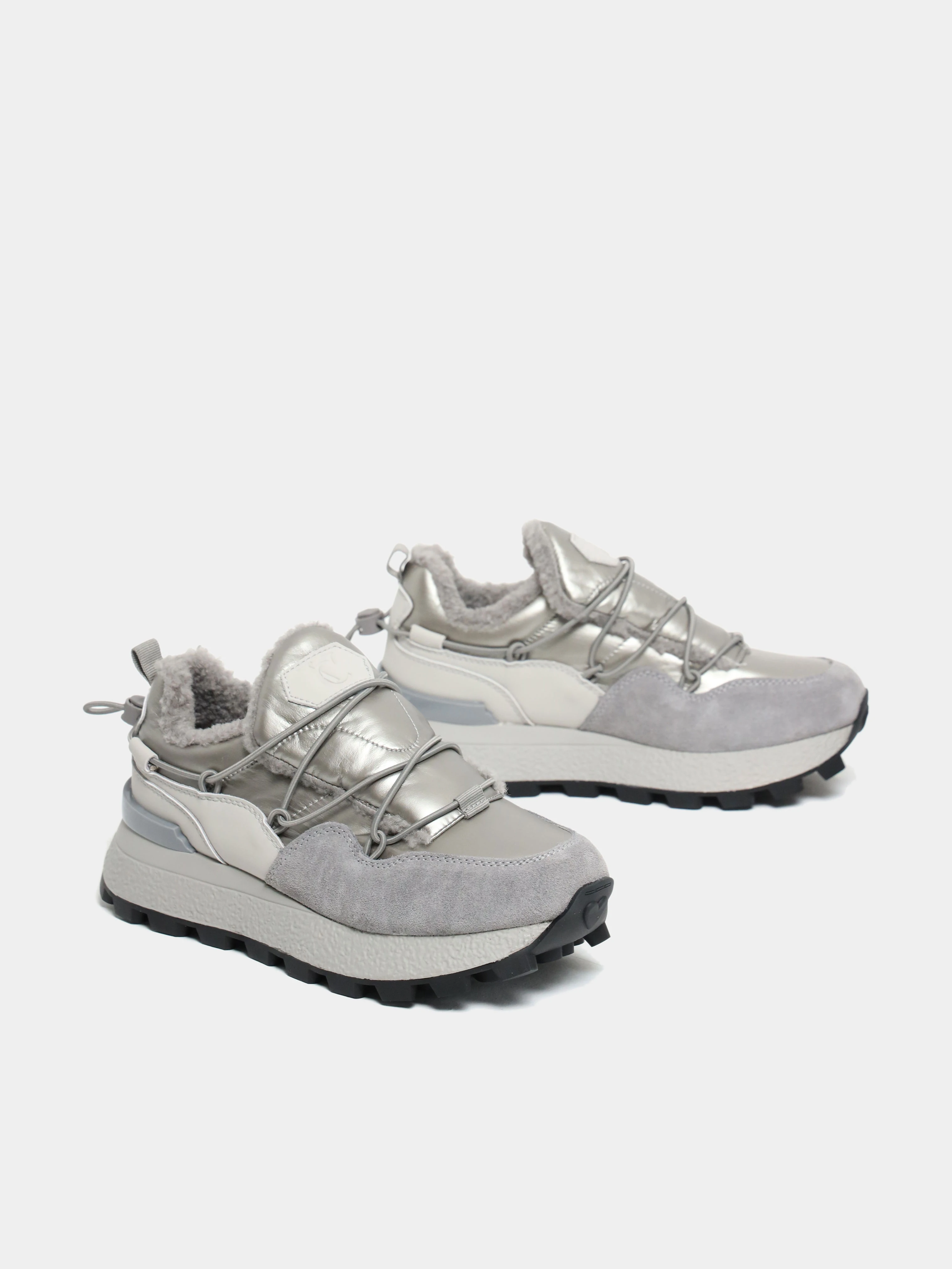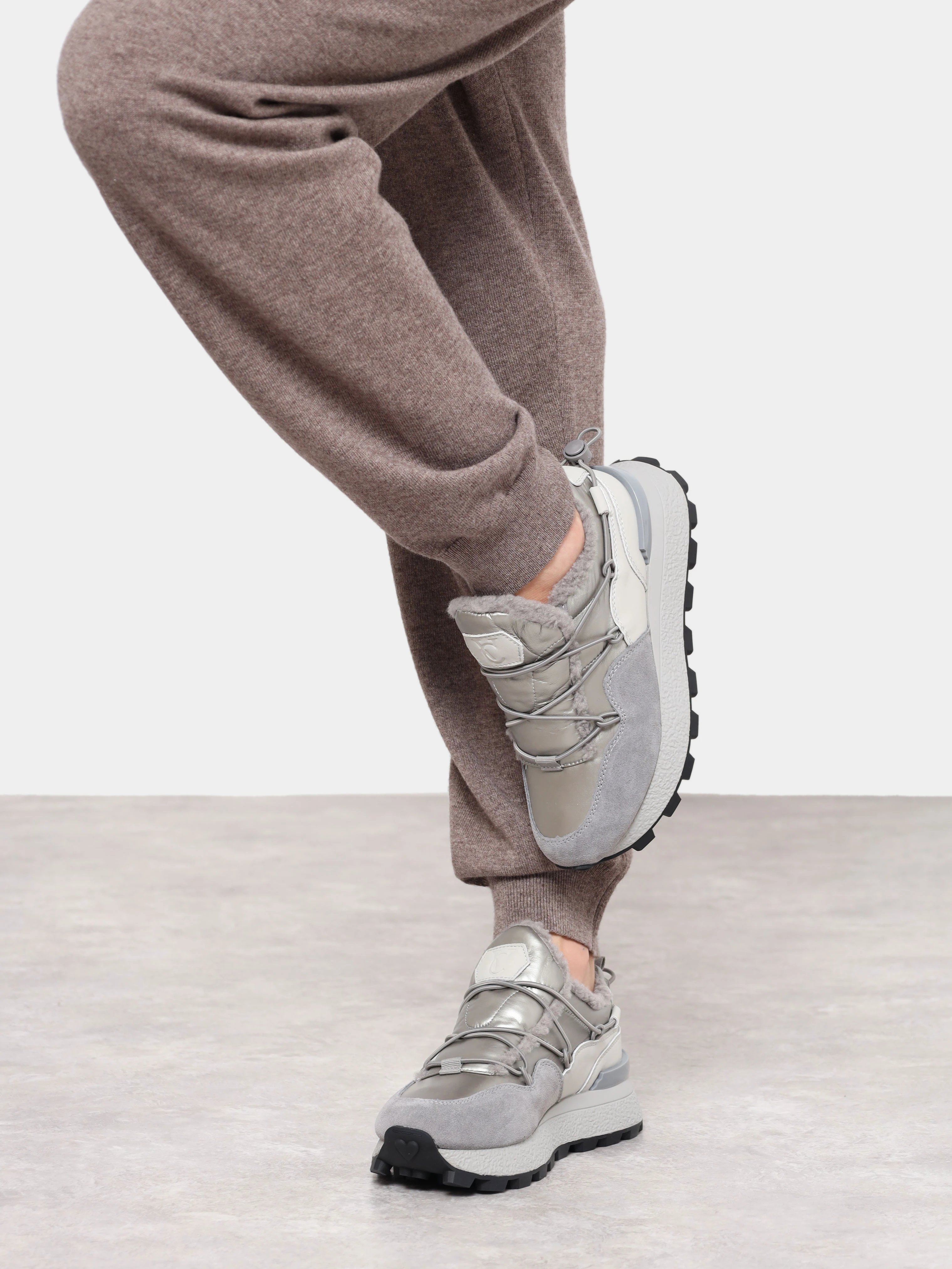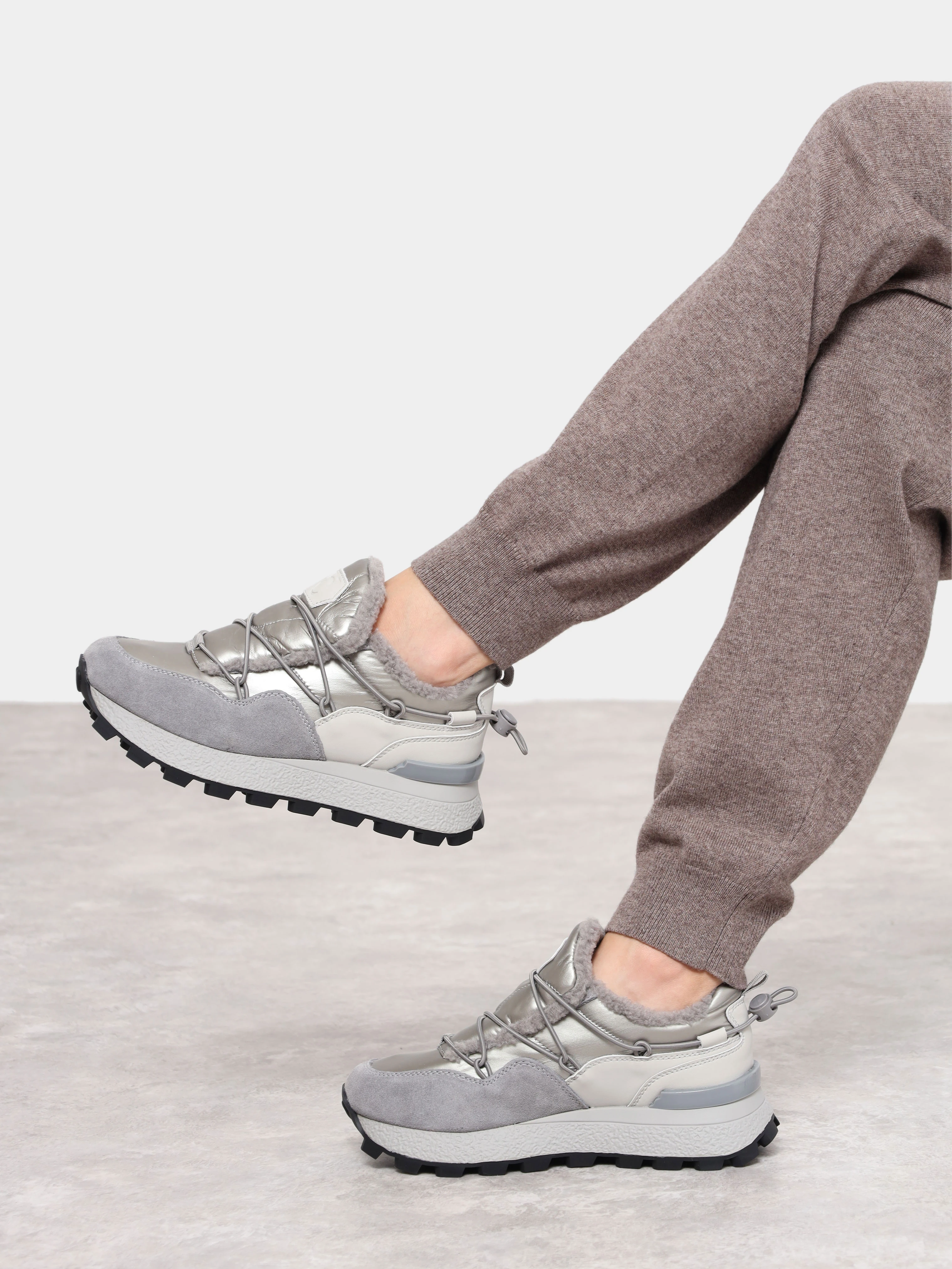 Кроссовки женские зимние, цвет серый, натуральный спилок/текстиль/искусственный мех