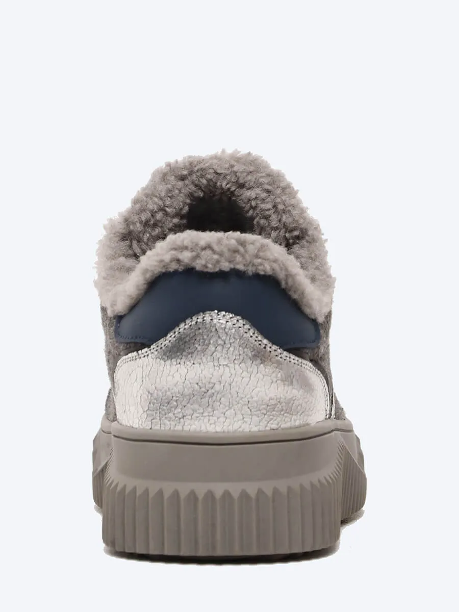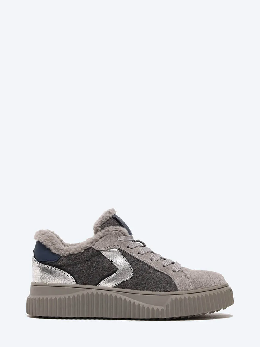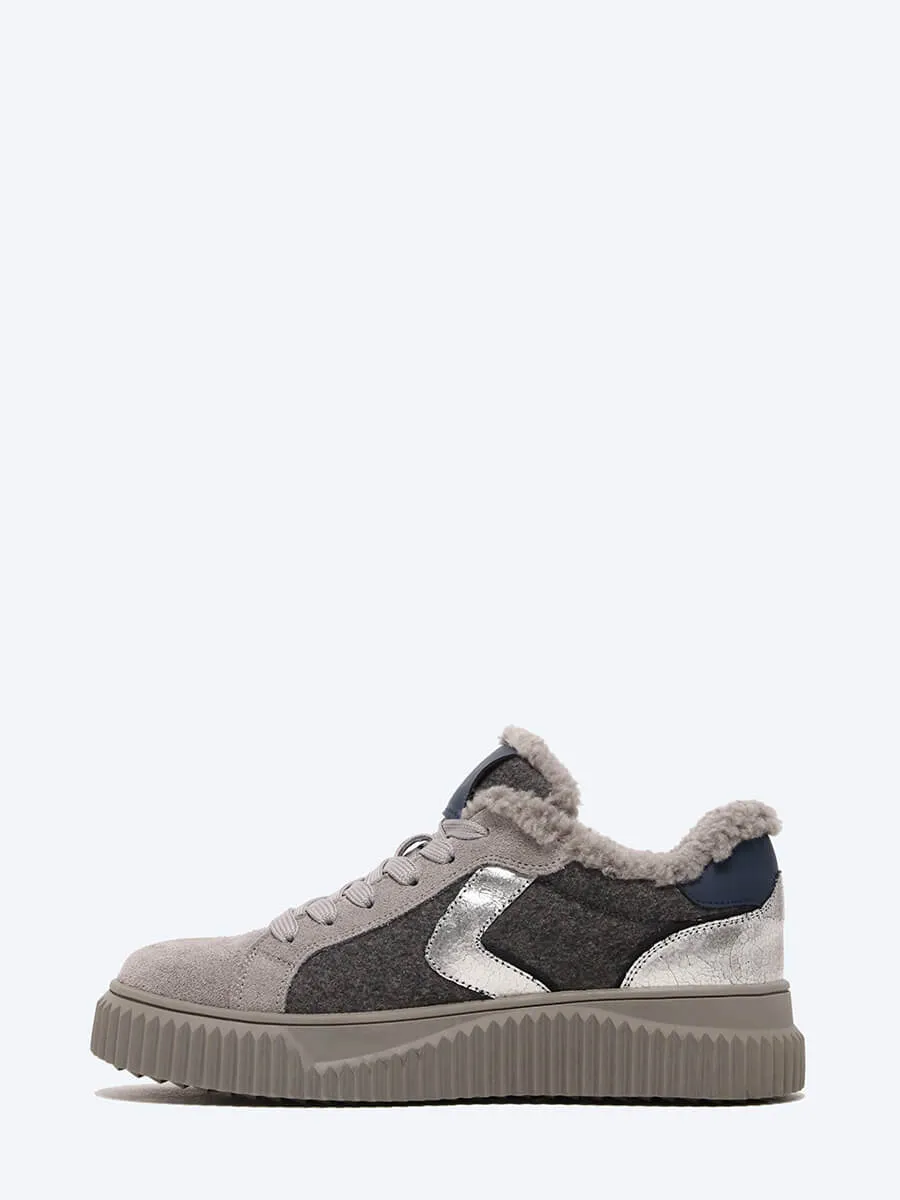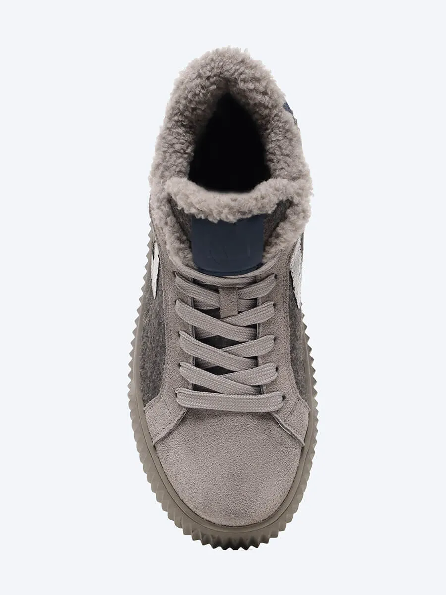 Кеды женские зимние, цвет серый, натуральный спилок/текстиль/искусственный мех
