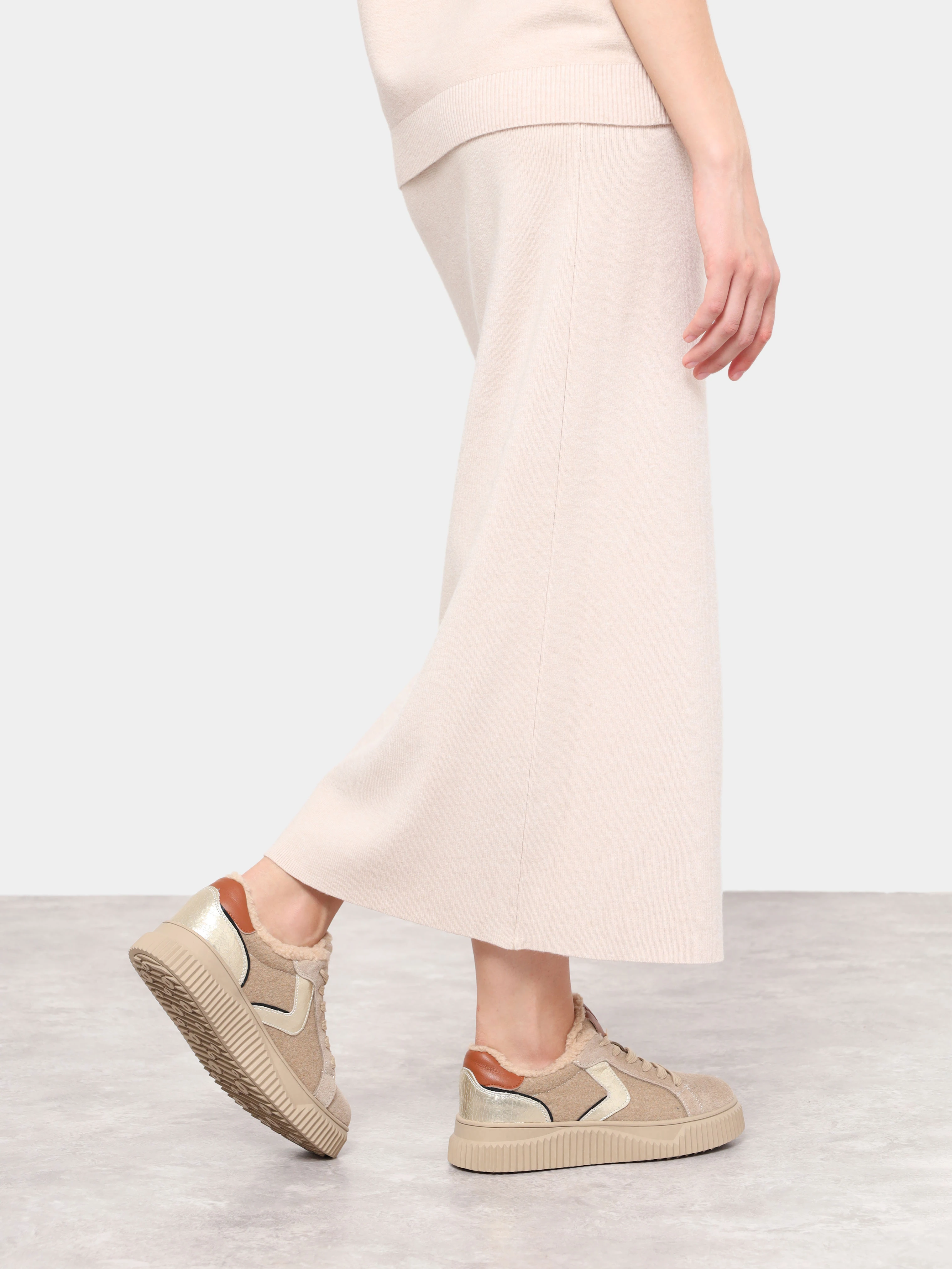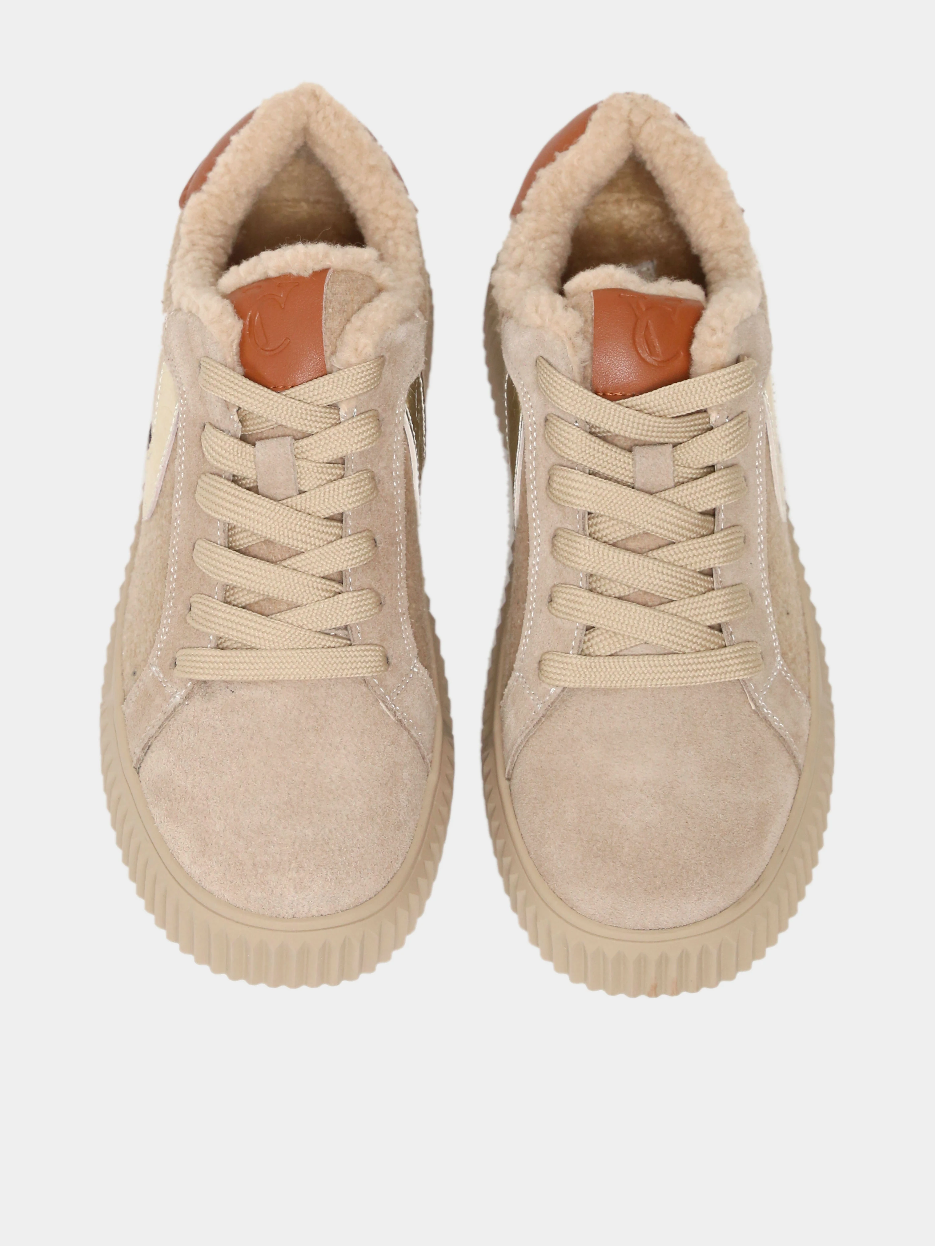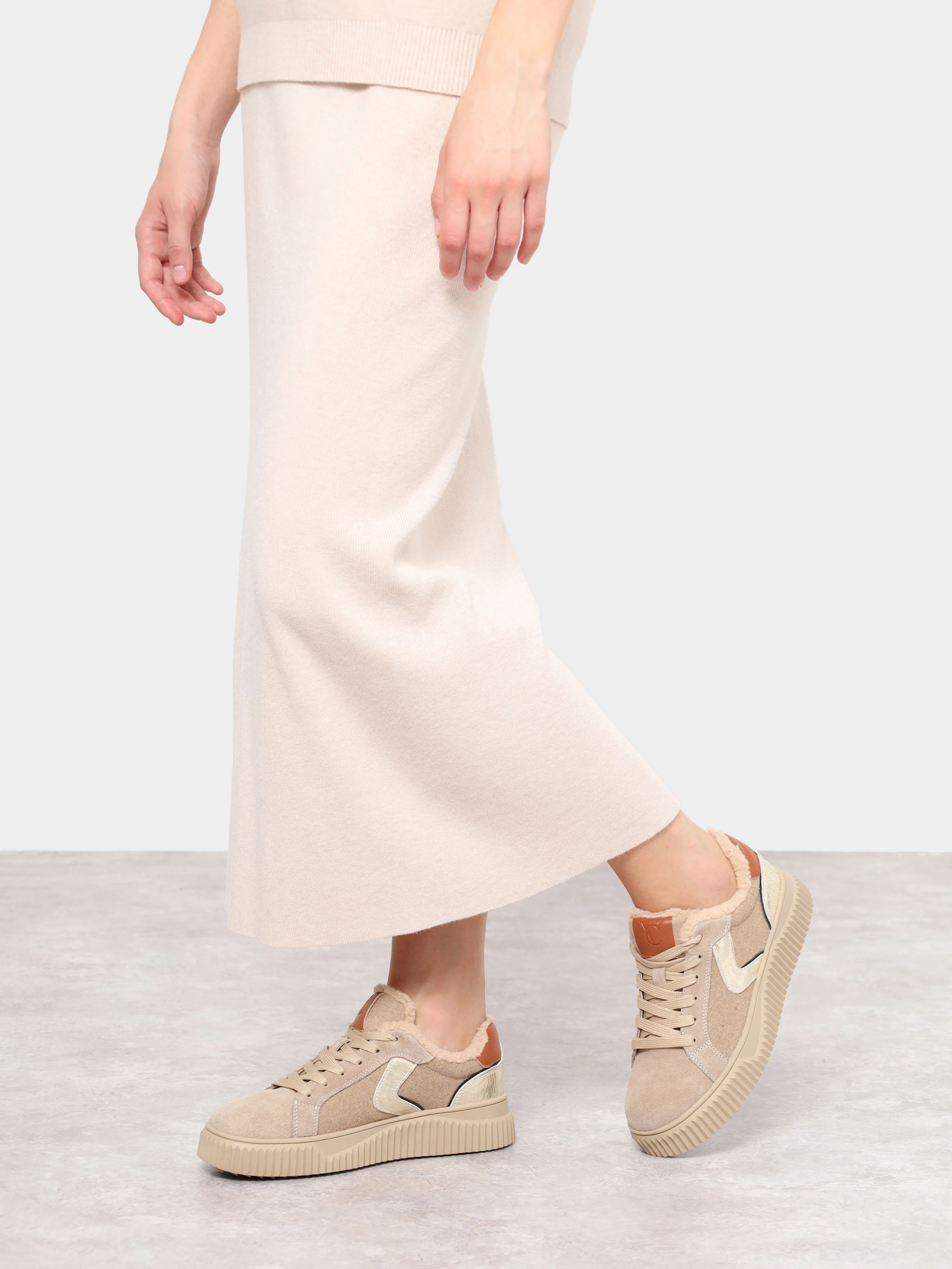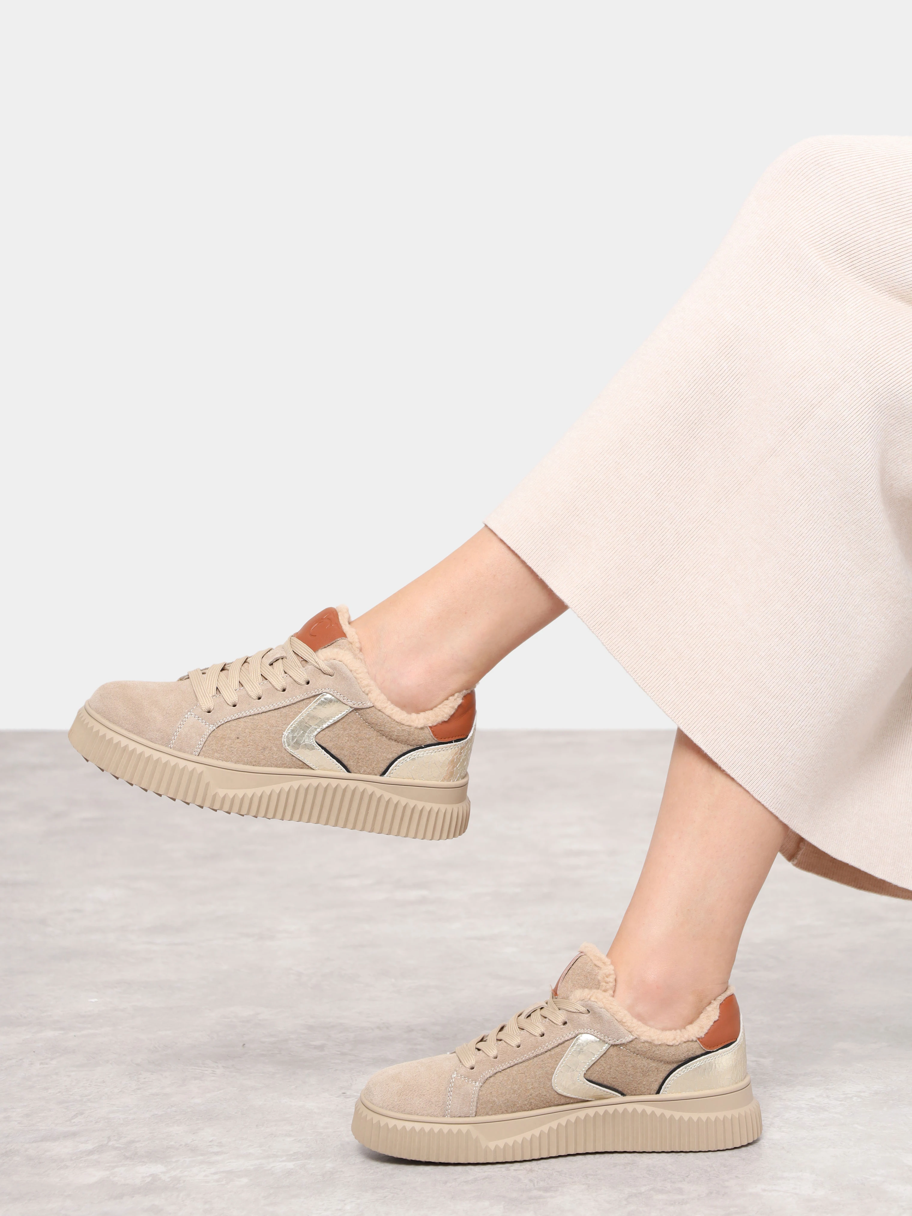 Кеды женские зимние, цвет бежевый, натуральный спилок/текстиль/искусственный мех