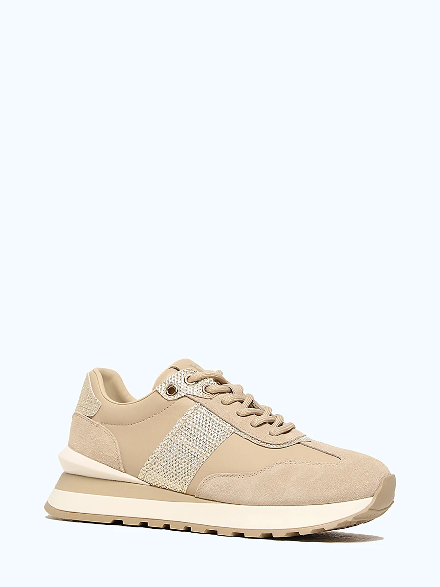 Кроссовки женские демисезонные, цвет бежевый, натуральная кожа/натуральный спилок