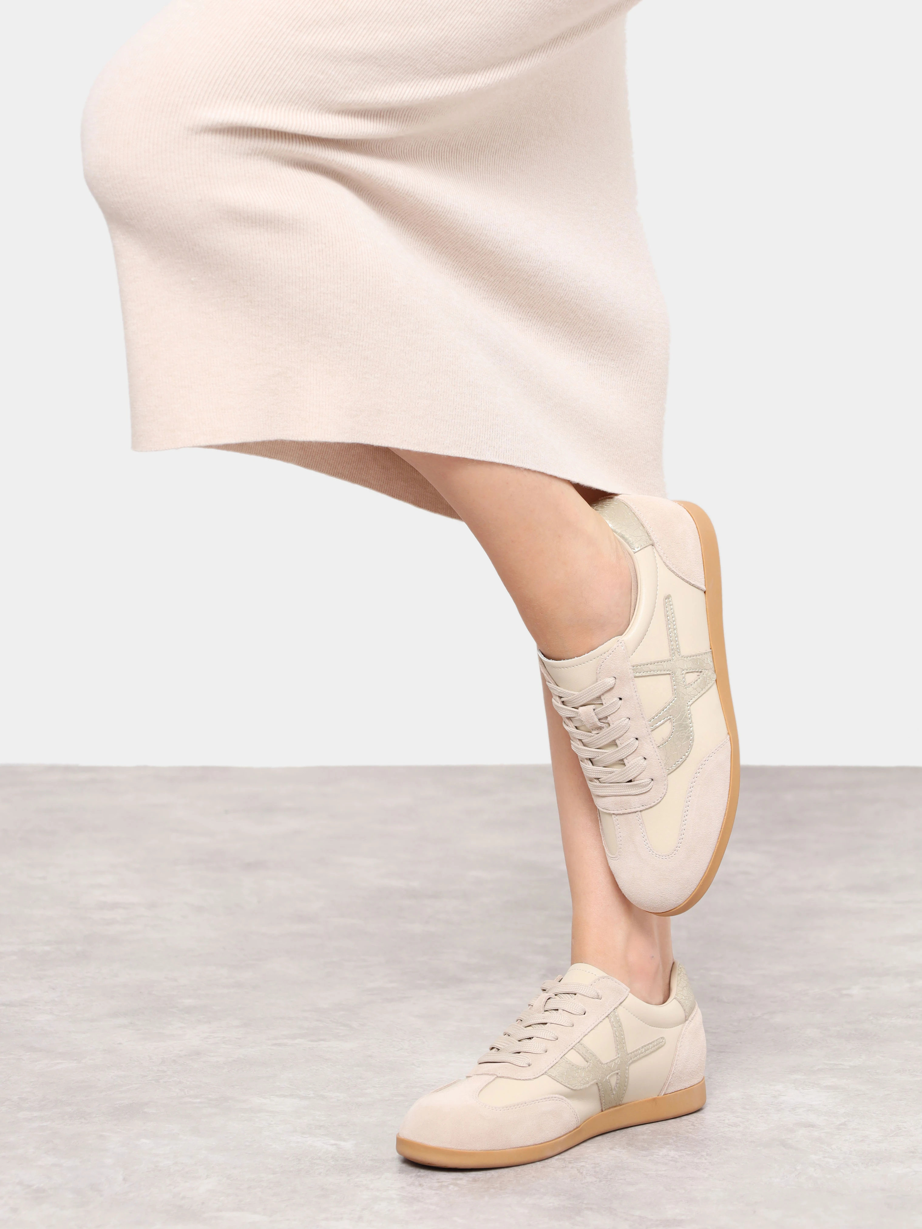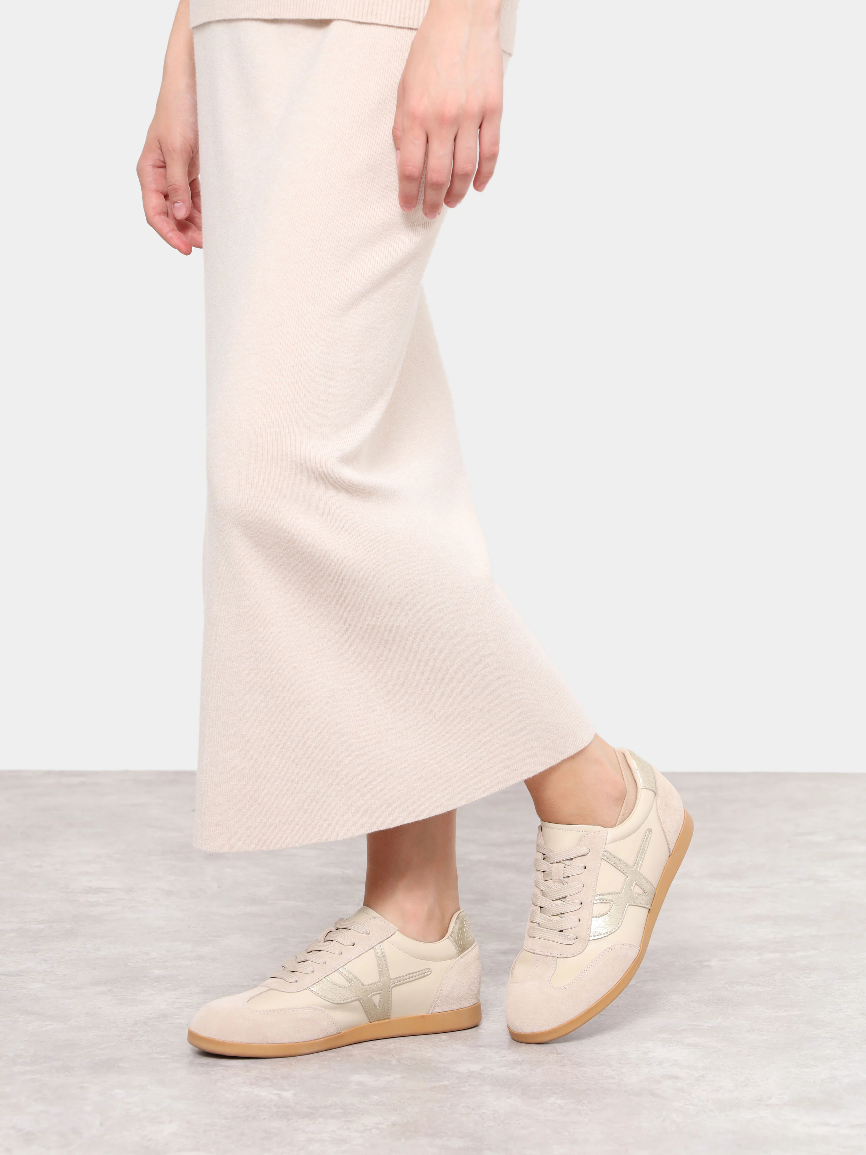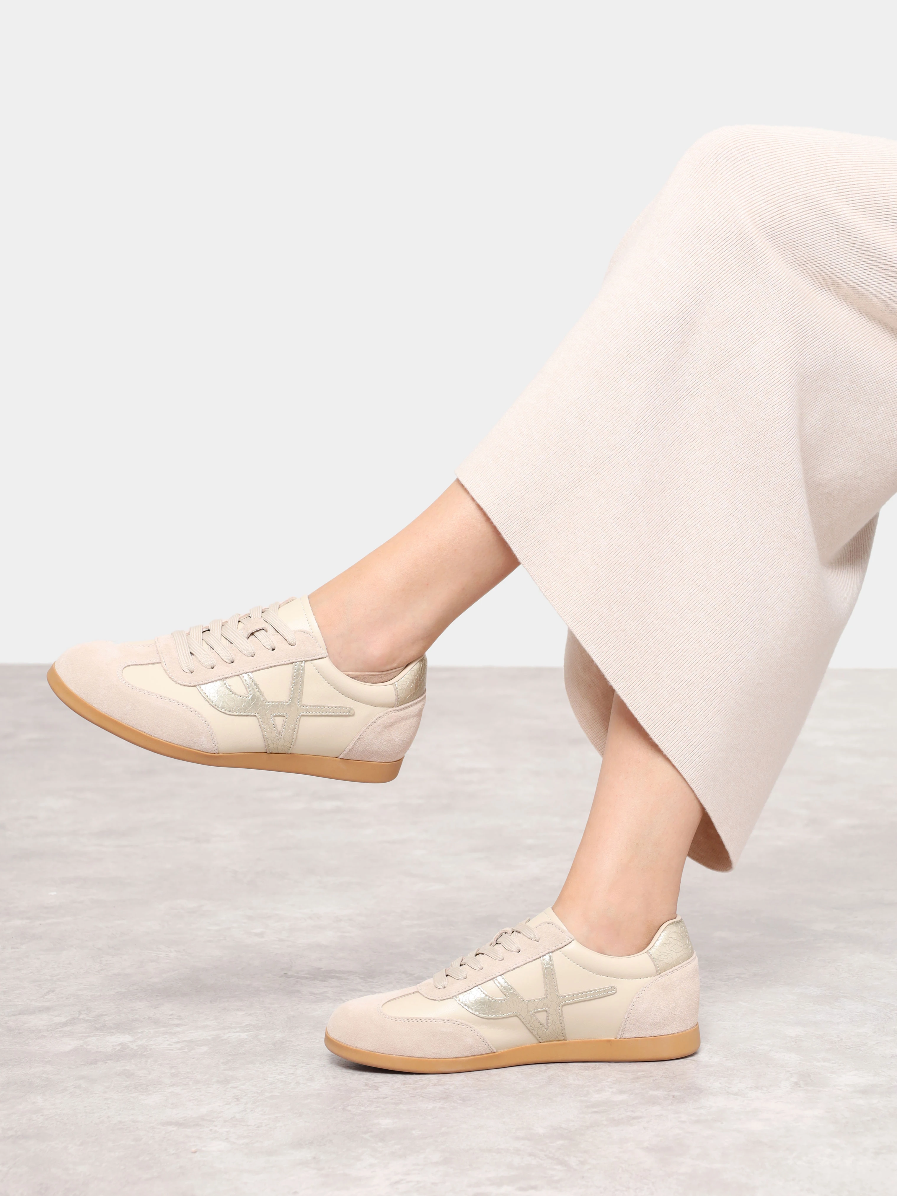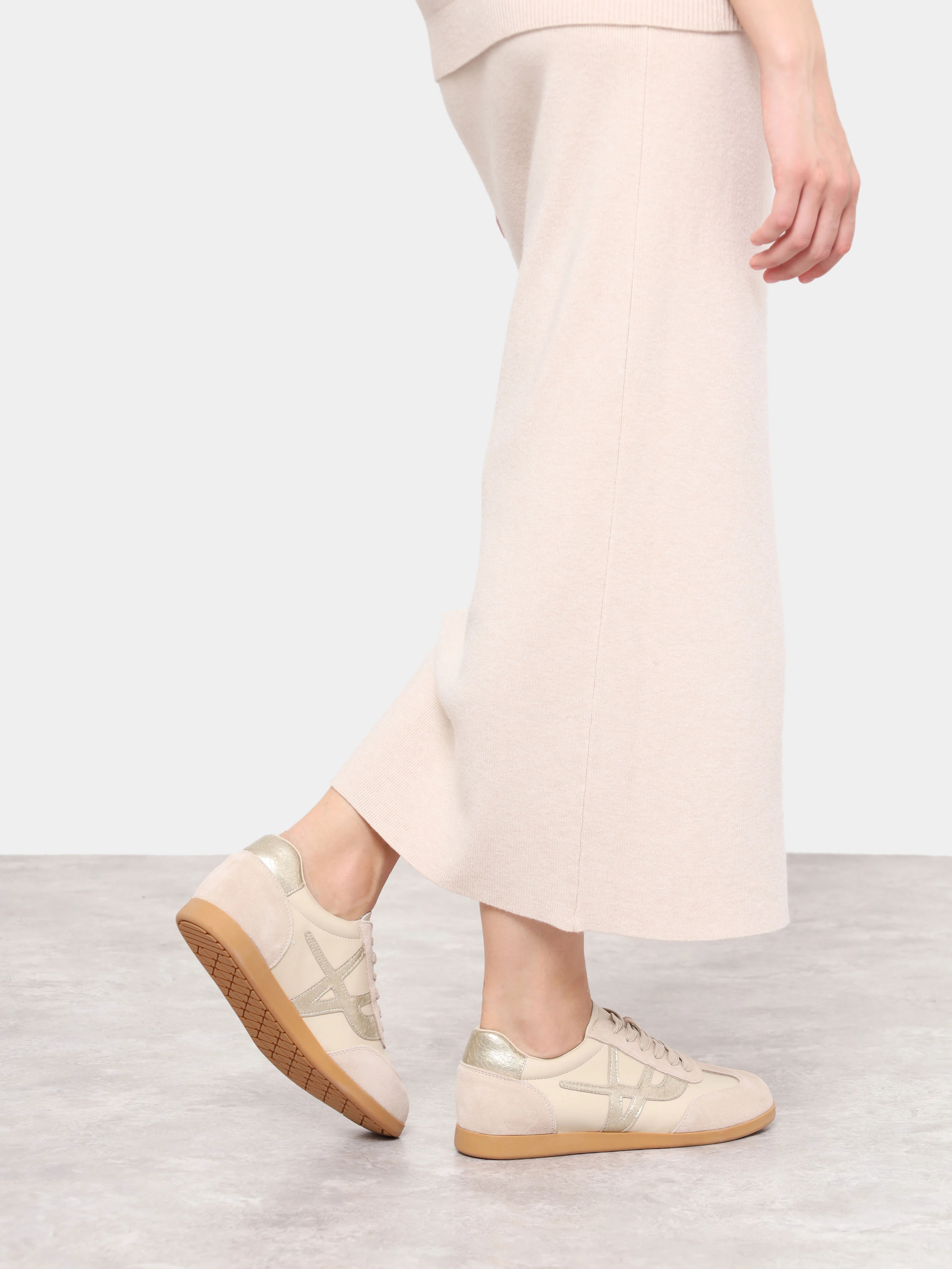 Кеды женские демисезонные, цвет бежевый, натуральная кожа/натуральный спилок