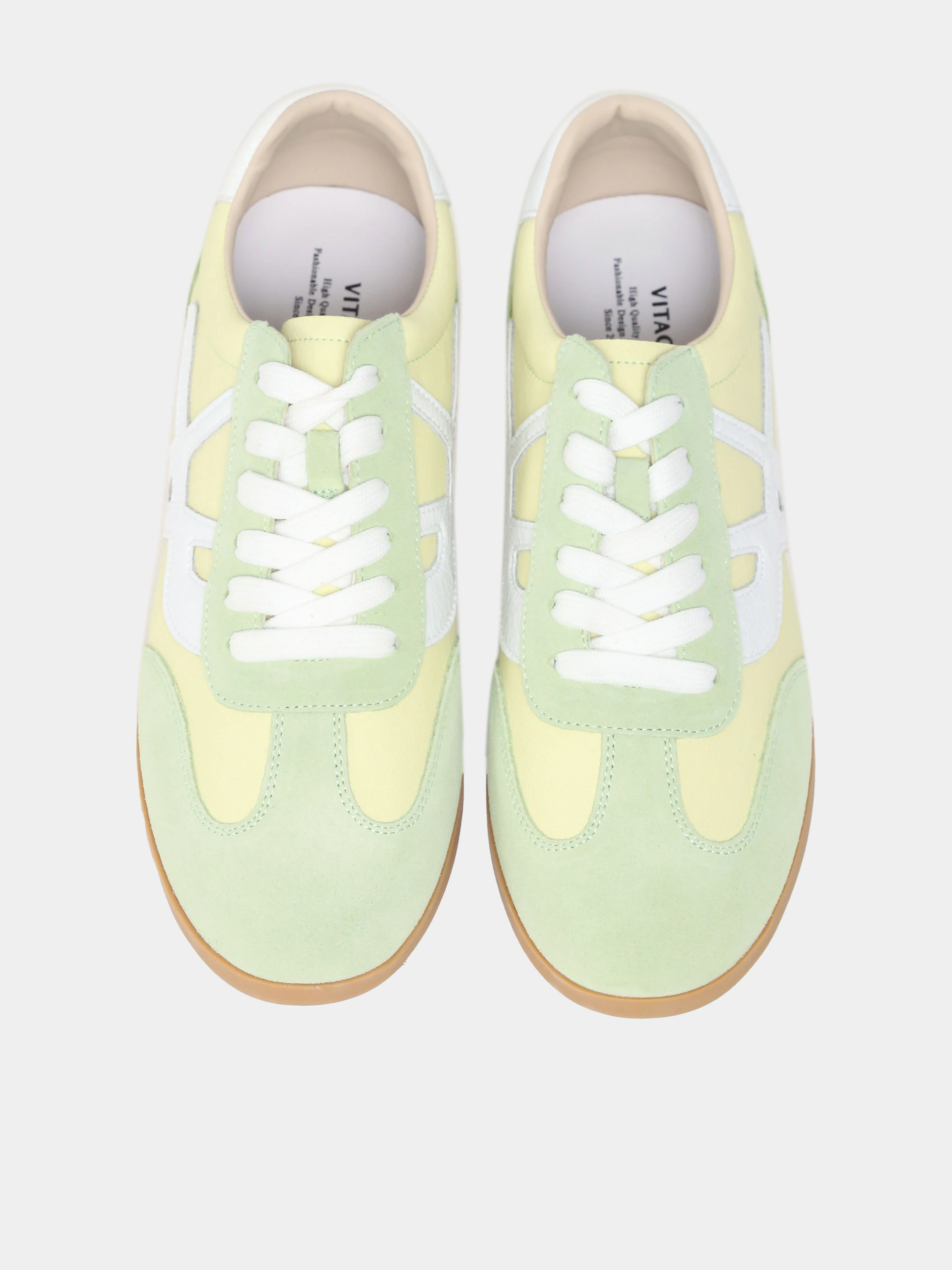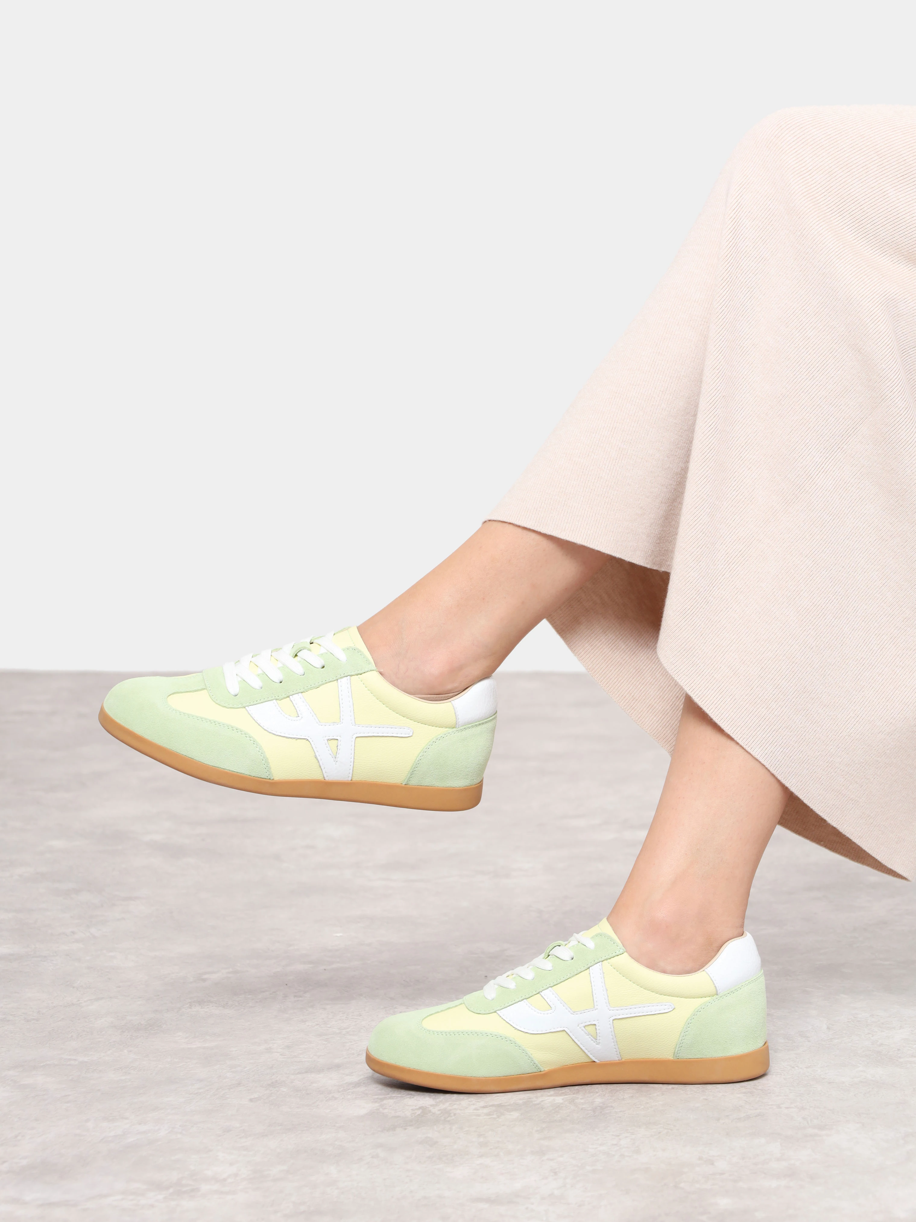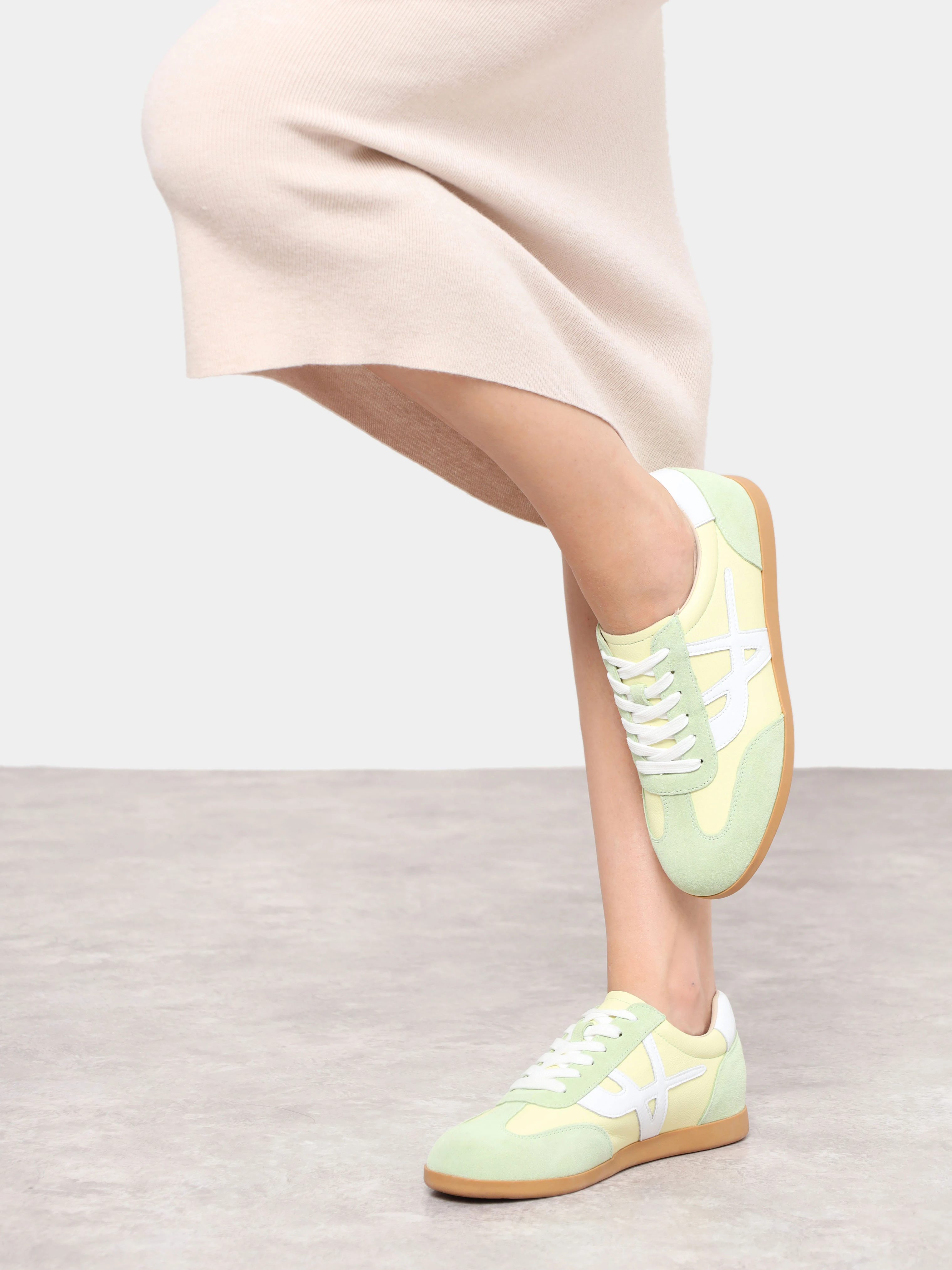 Кеды женские демисезонные, цвет салатовый, натуральная кожа/натуральный спилок