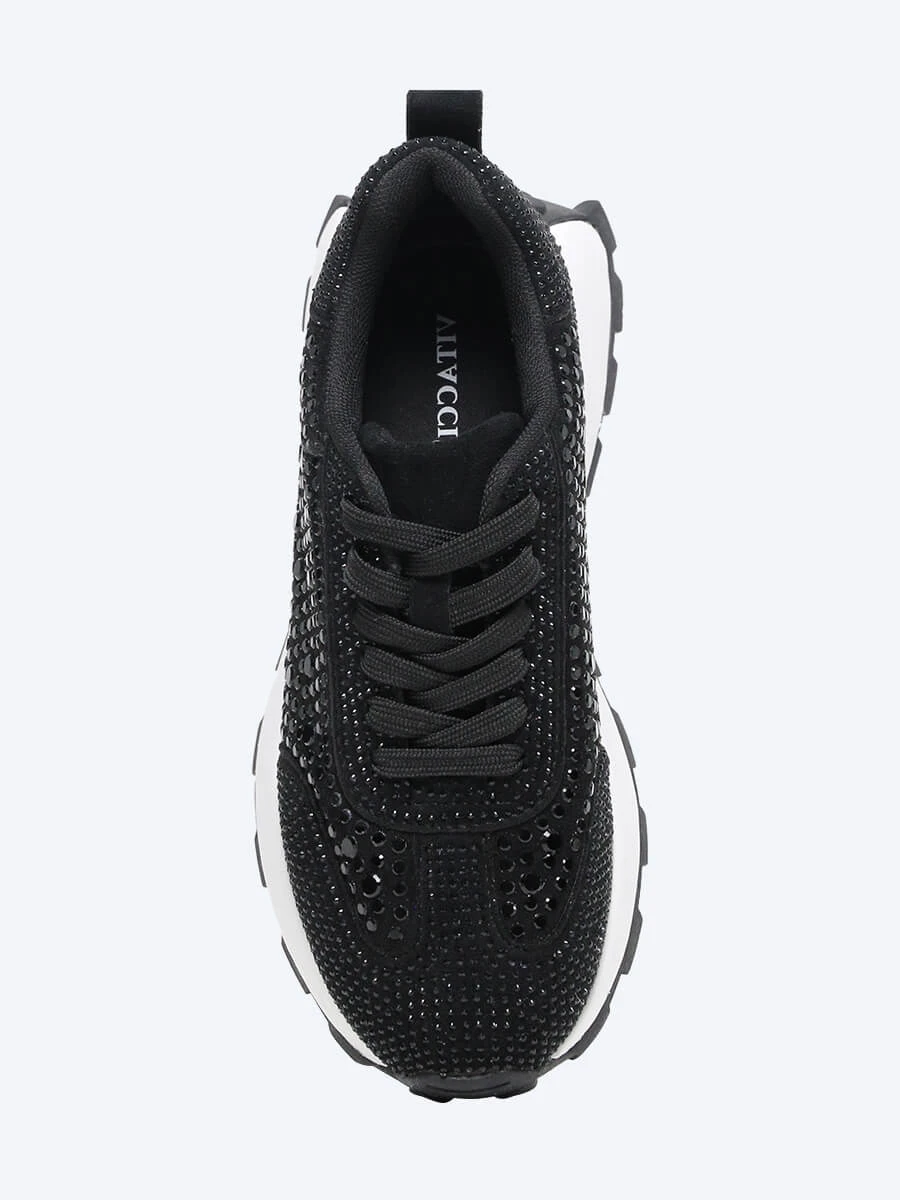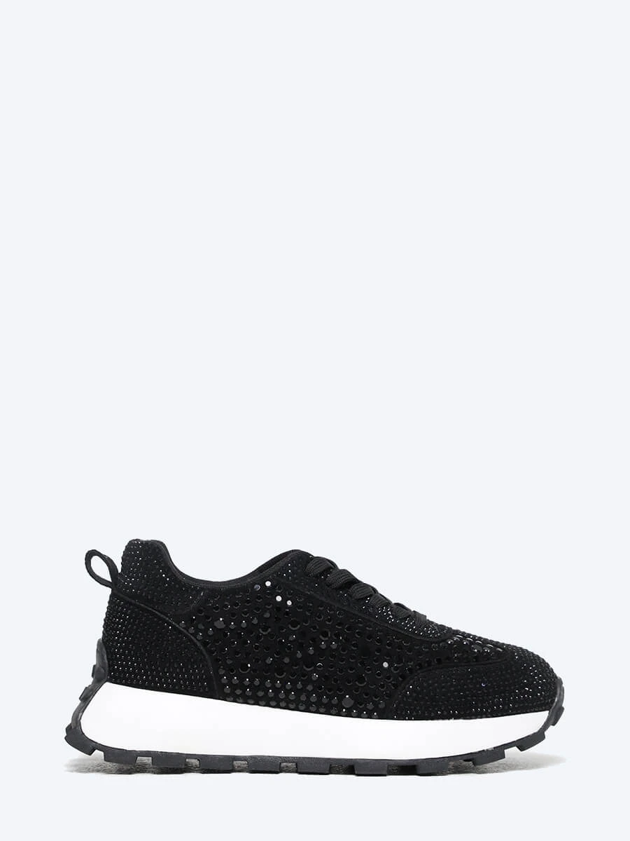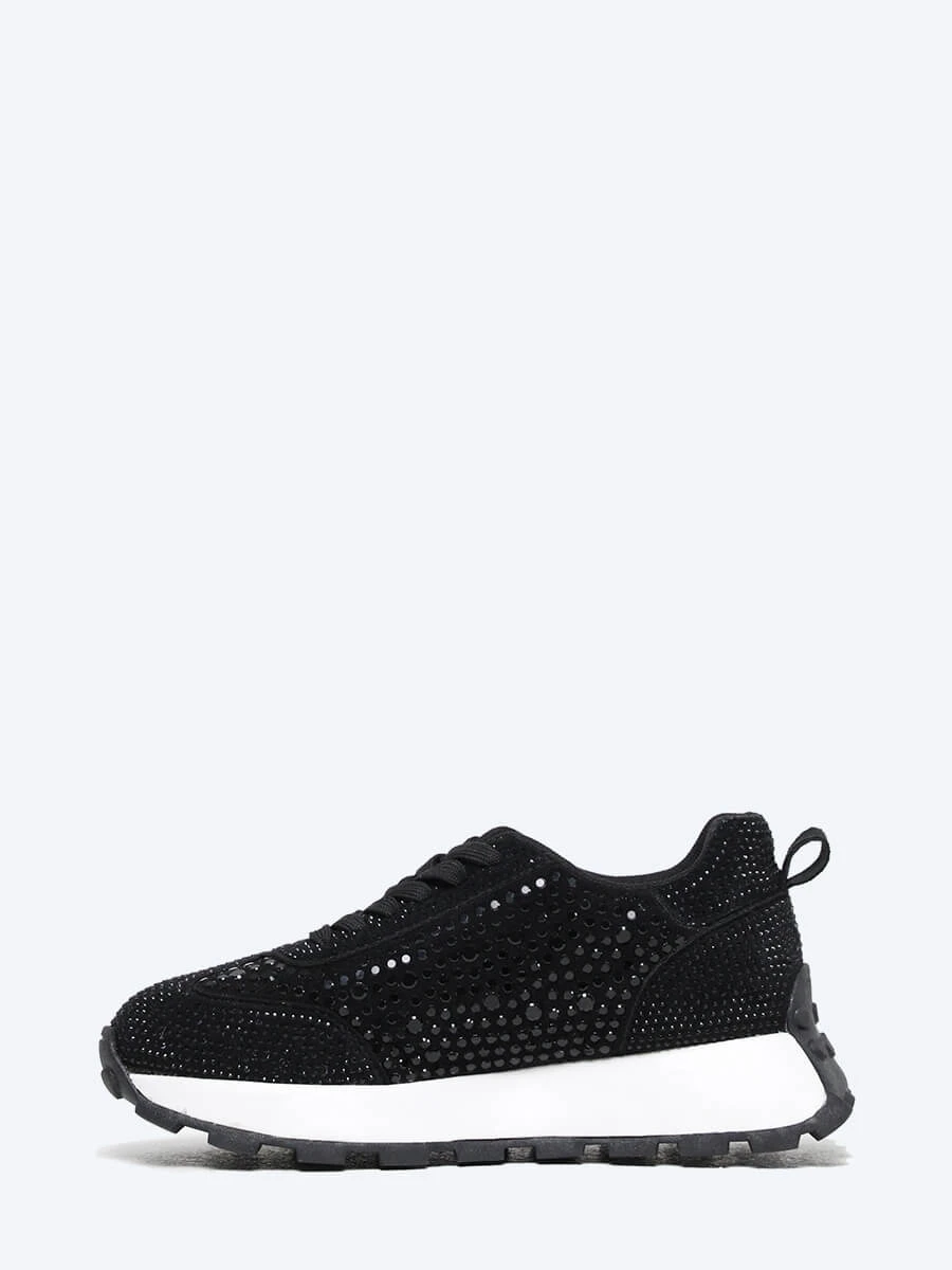 Кроссовки из искусственного спилка, усыпанного стразами. Внутри подкладка и стелька из текстиля. Обувь в стиле "Fashion Sport" – это умение сочетать её с одеждой таким образом, чтобы в ней можно было пойти в офис, на прогулку и даже ресторан.