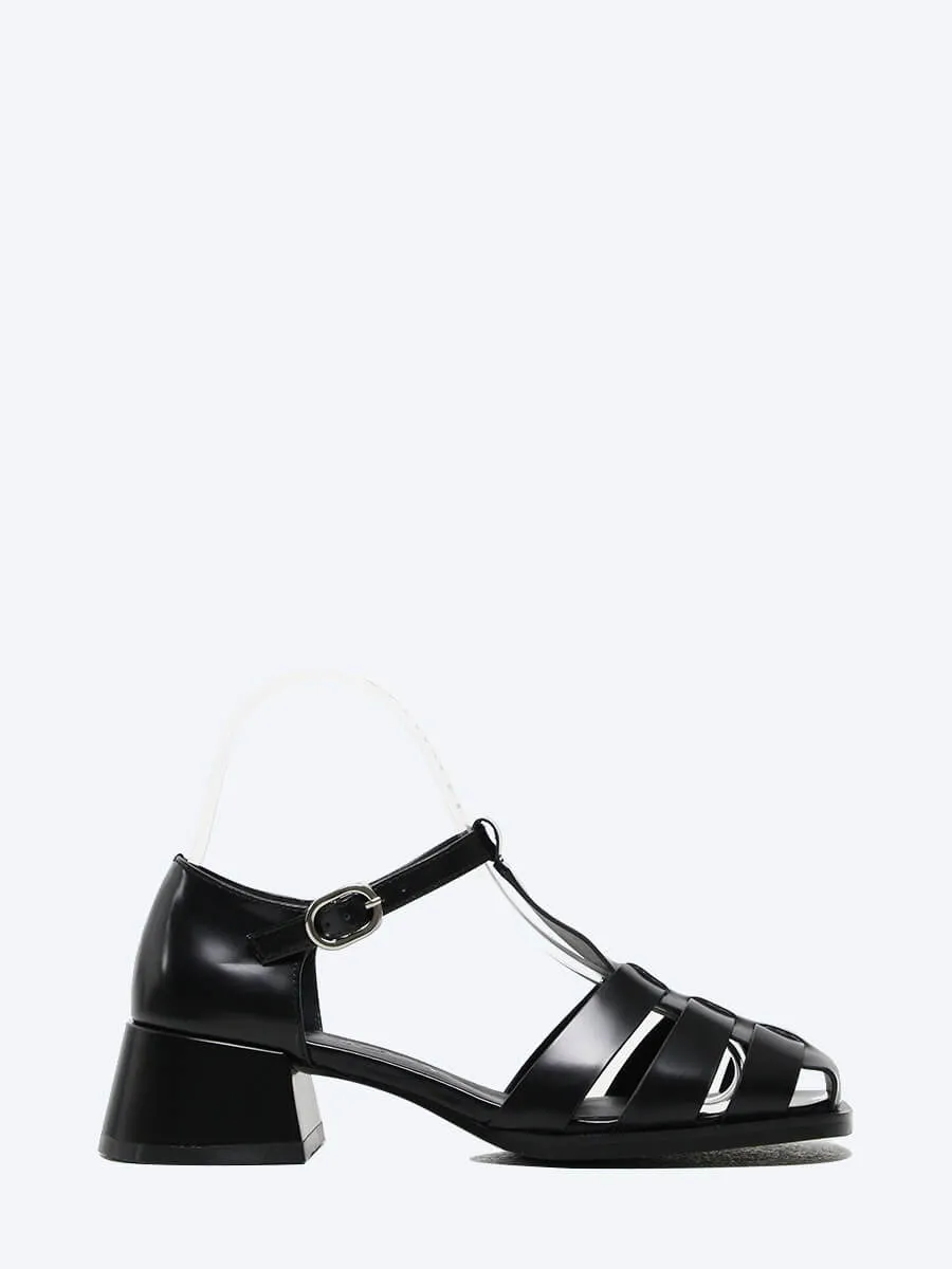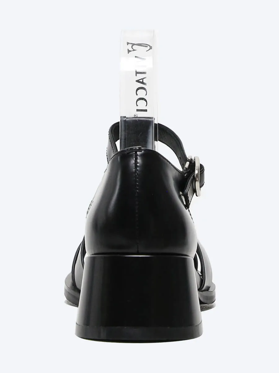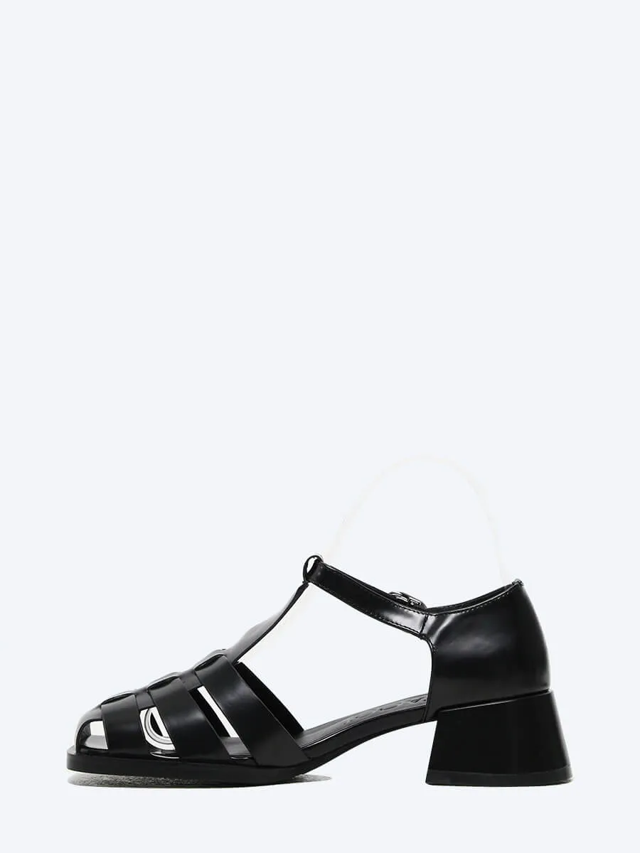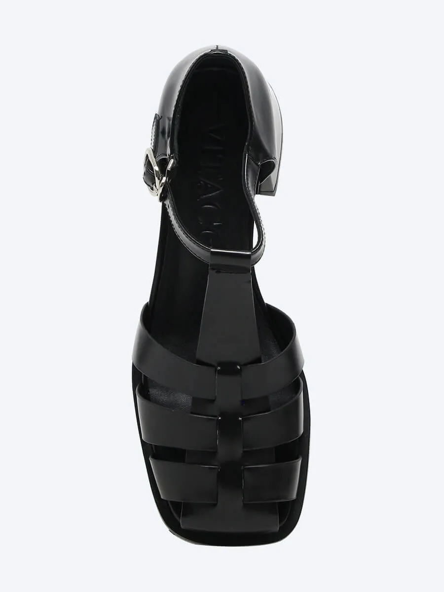 Туфли женские летние, цвет черный, натуральная лаковая кожа