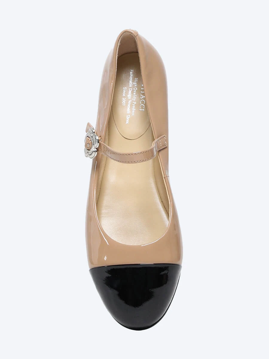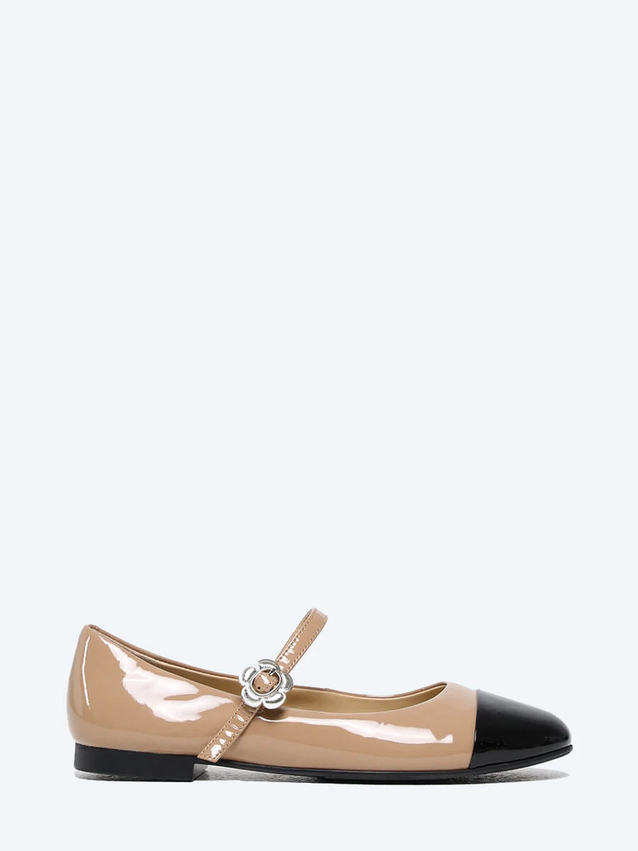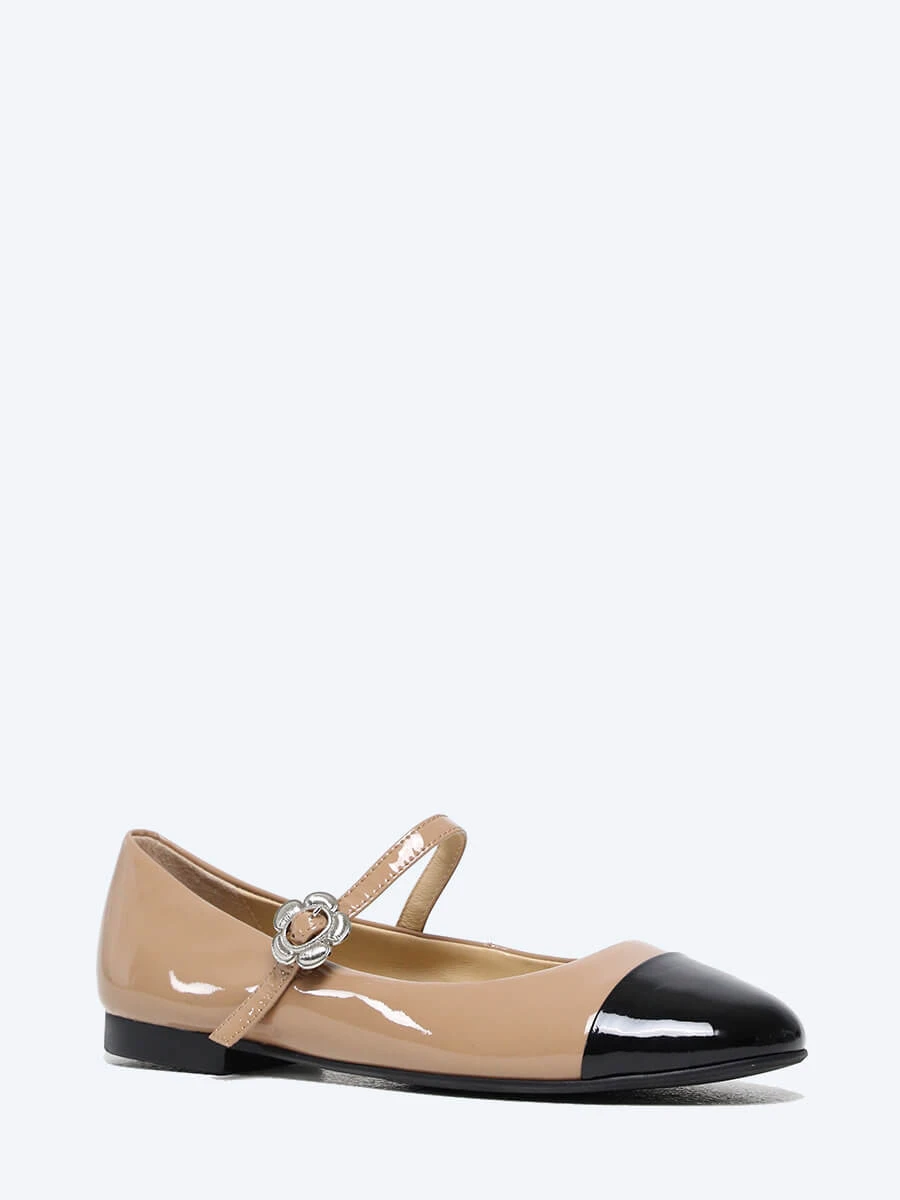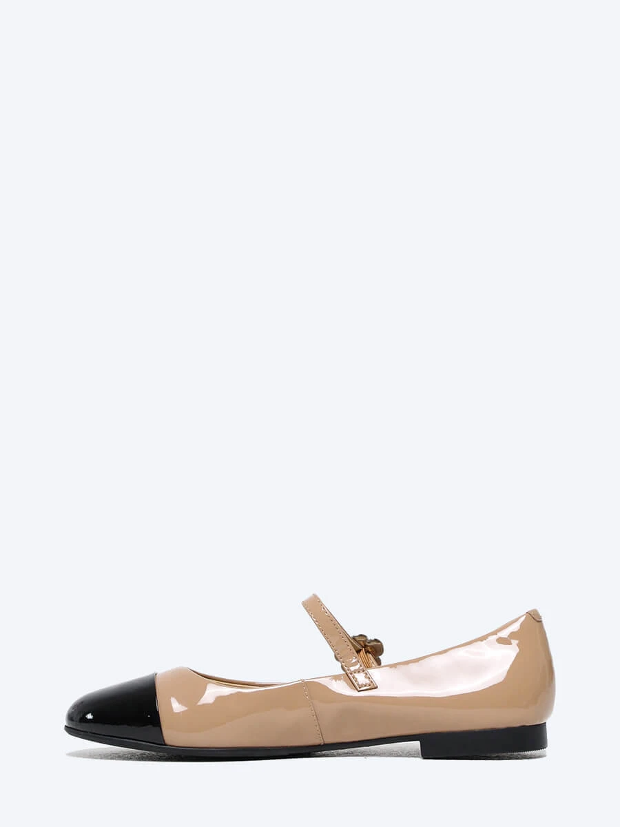 Балетки 641596 женские цвет бежевый, натуральная лаковая кожа