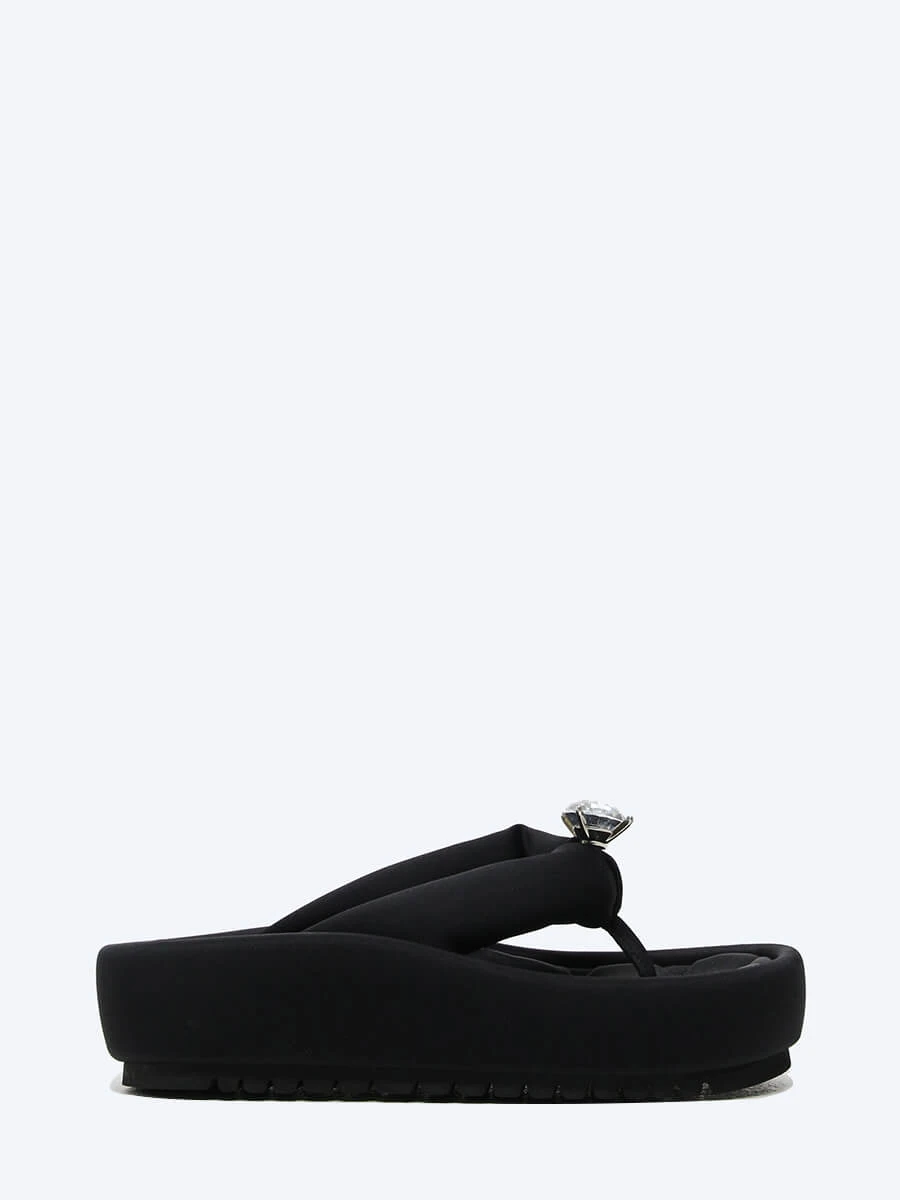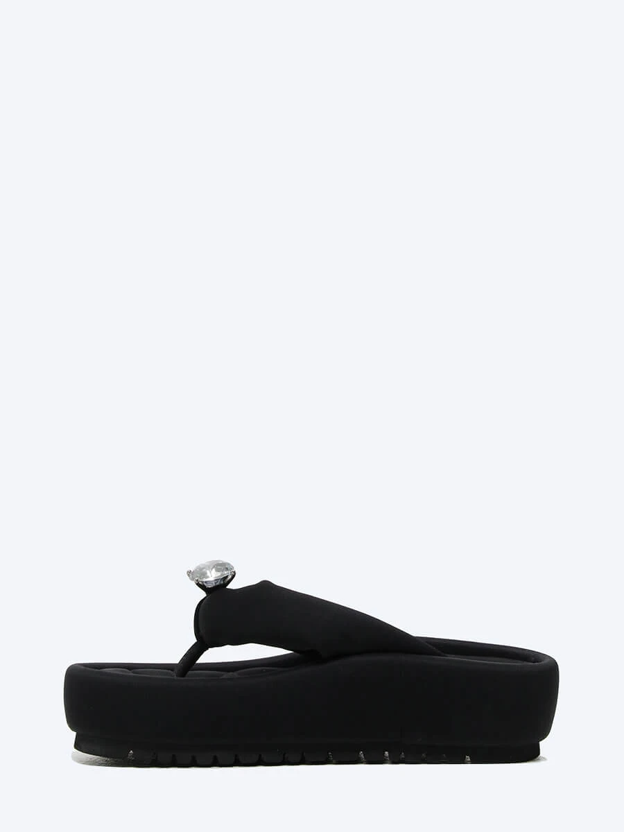 Сабо-вьетнамки на платформе – это незаменимая обувь летом, так как подходит и для города, и для пляжа. Выполнены из гладкого текстиля снаружи и внутри.