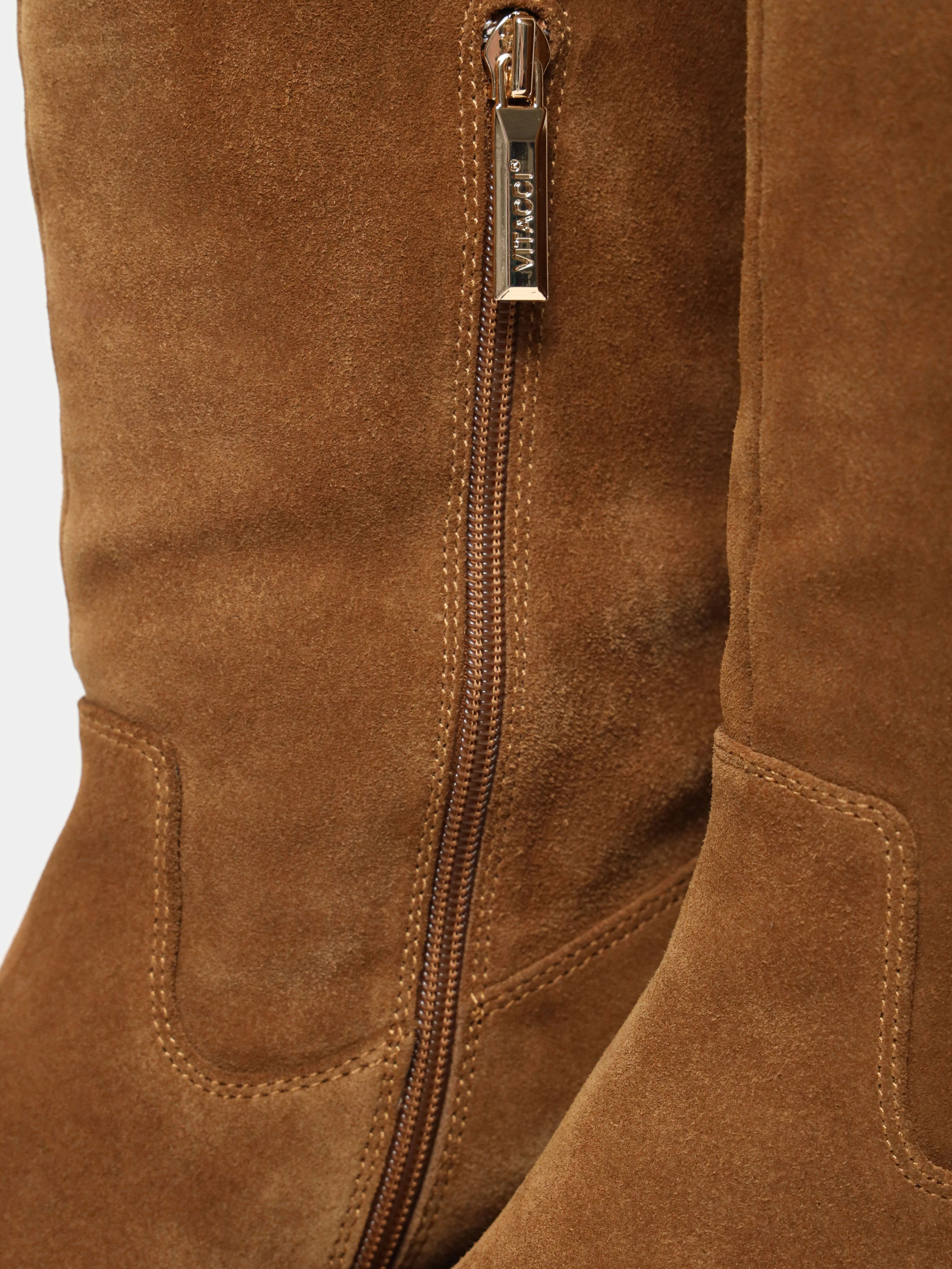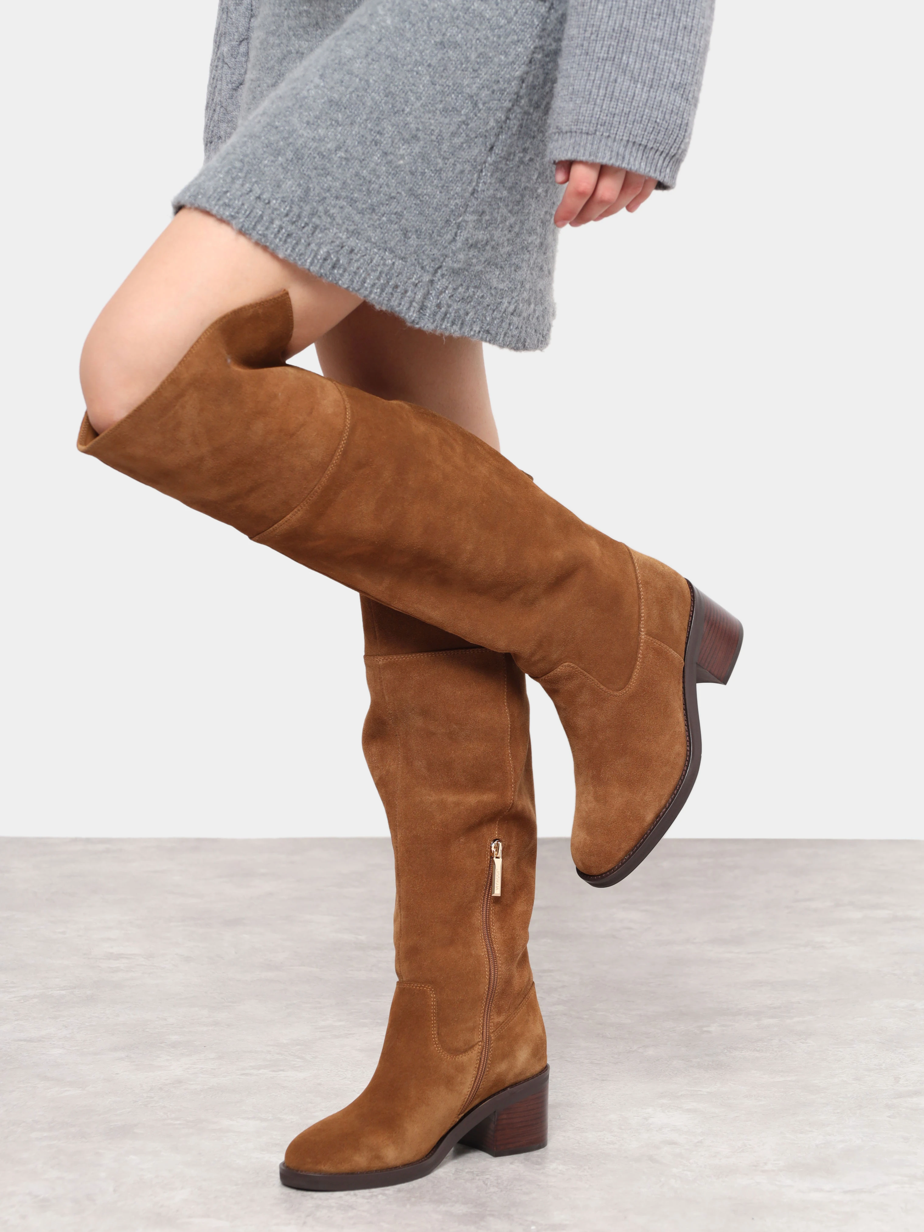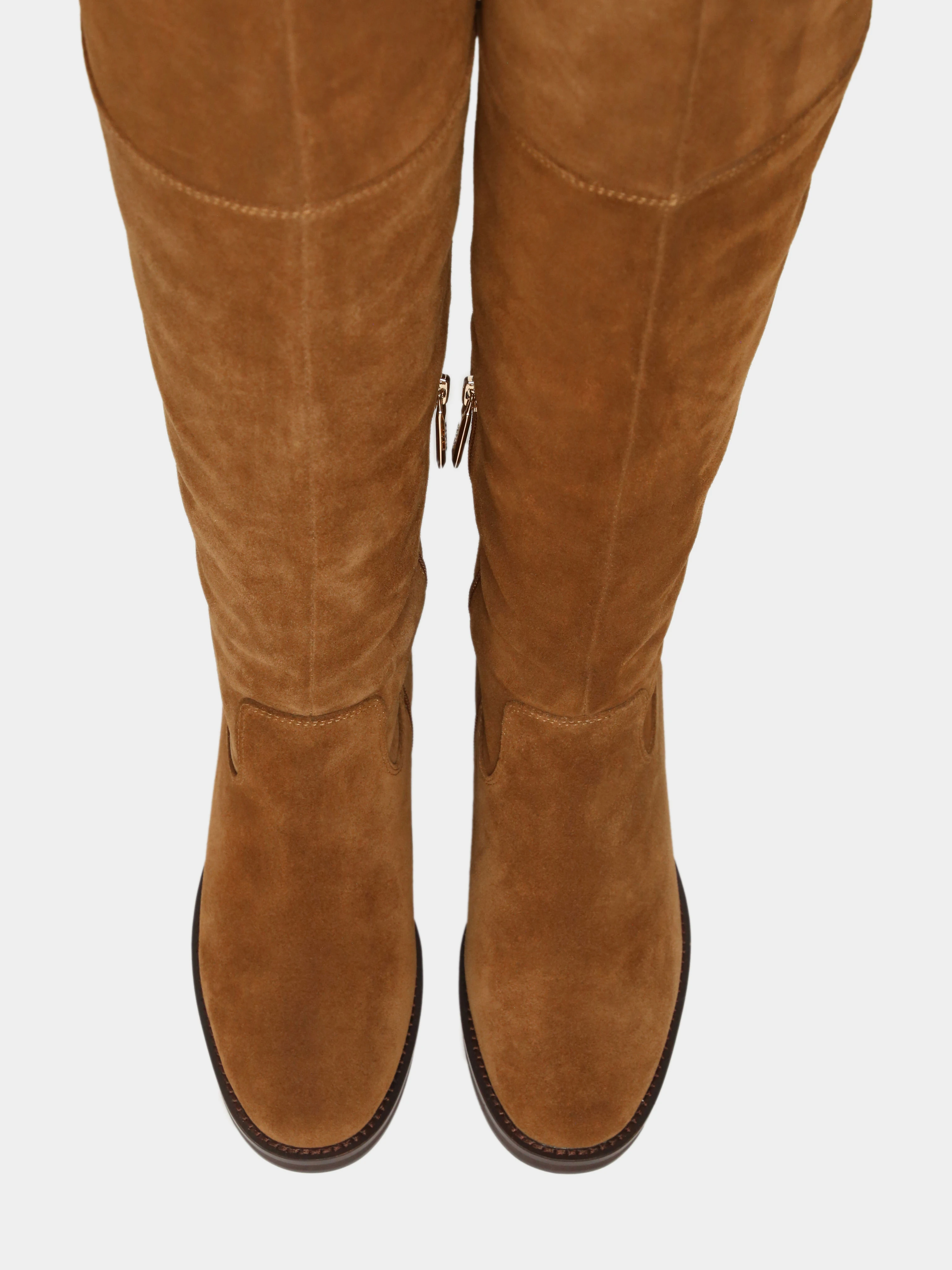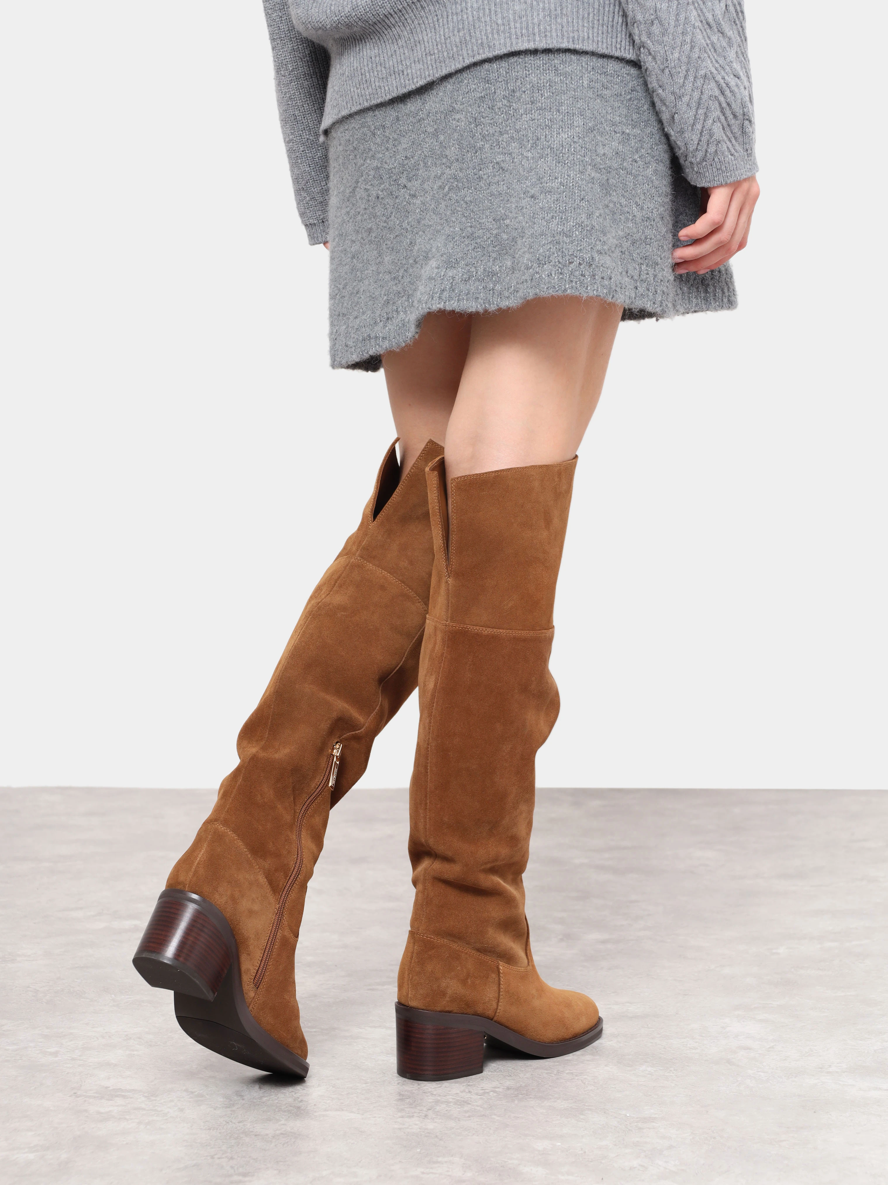 Ботфорты женские зимние, цвет коричневый, натуральный спилок