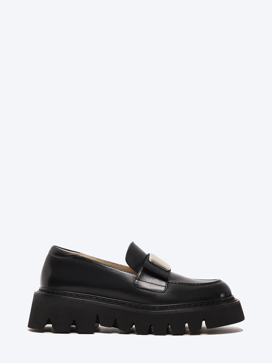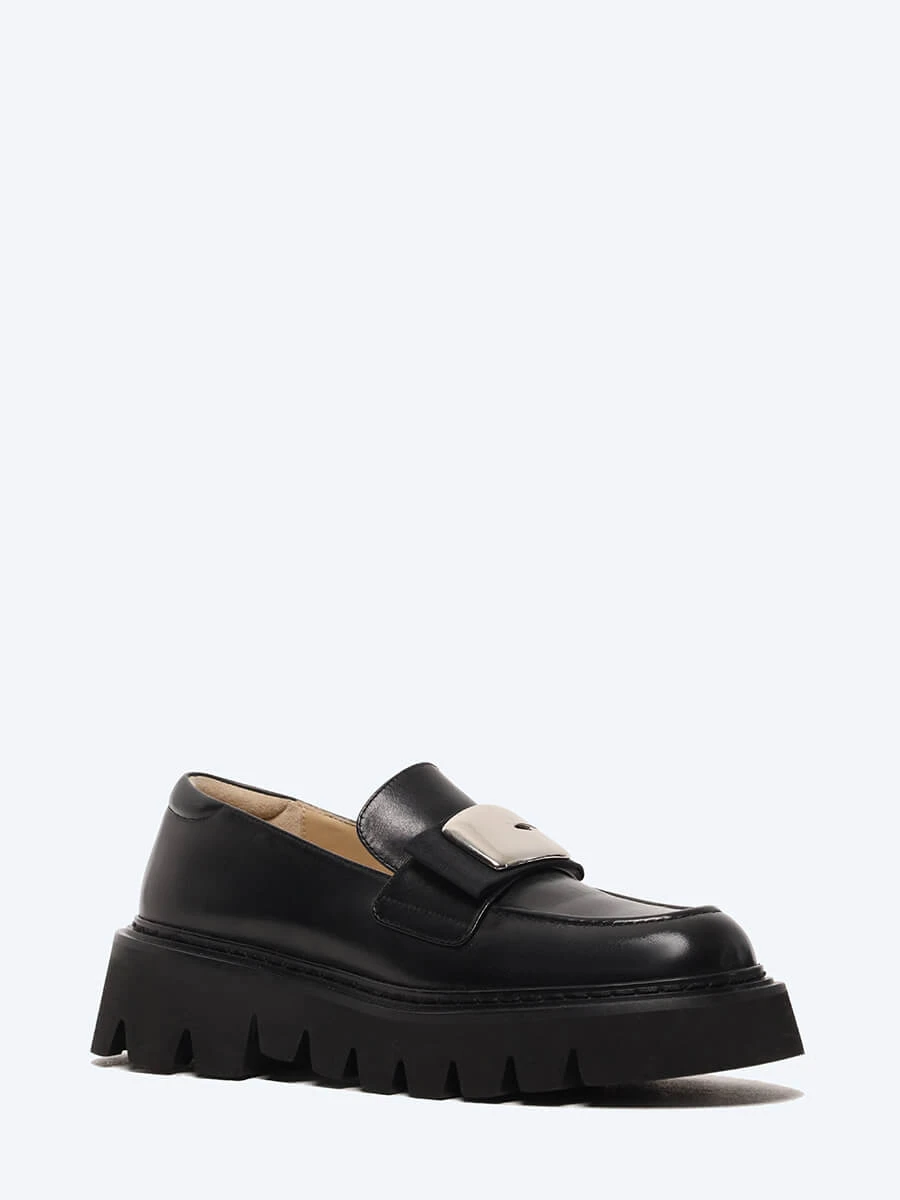 Лоферы женские всесезонные, цвет черный, натуральная кожа