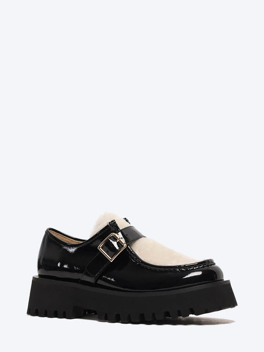 Лоферы женские всесезонные, цвет черный, натуральный наплак/натуральный мех