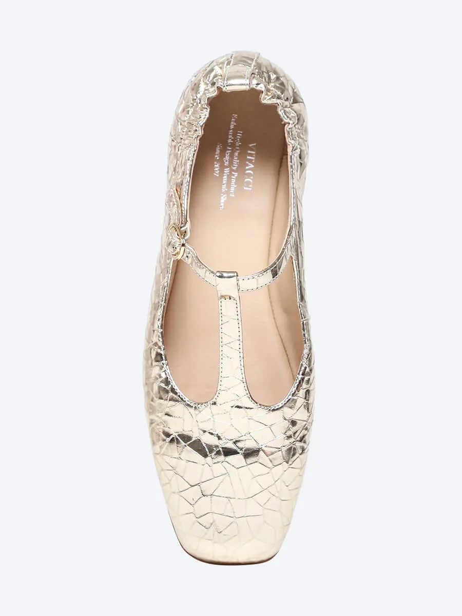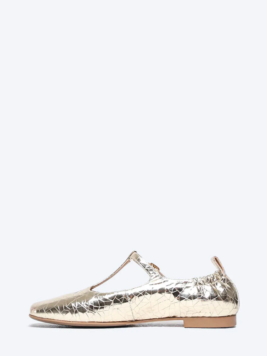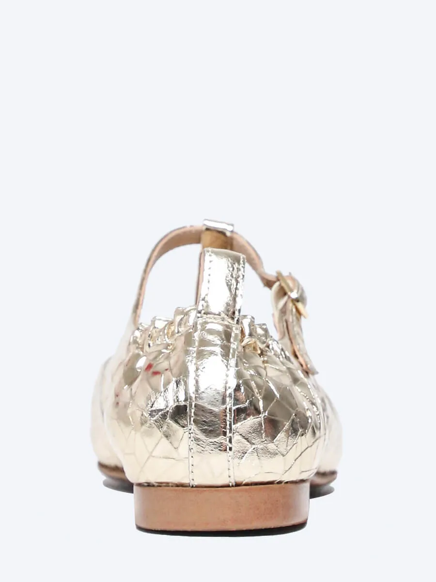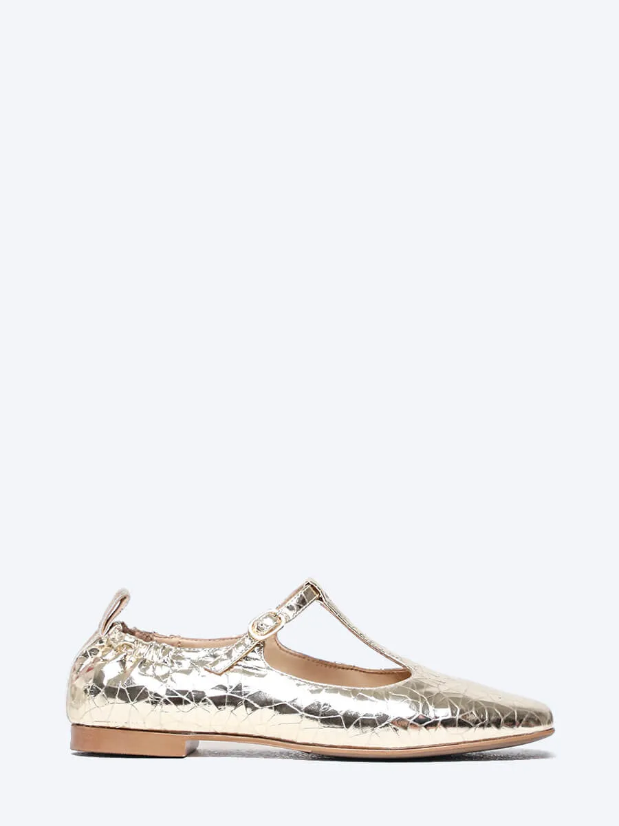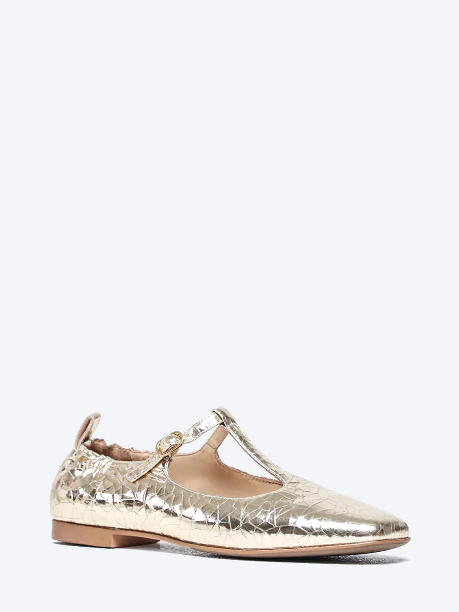 Балетки женские всесезонные, цвет золотой, натуральная кожа