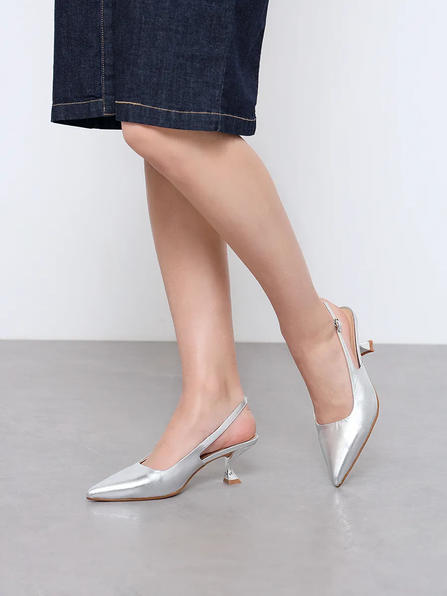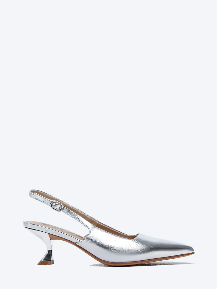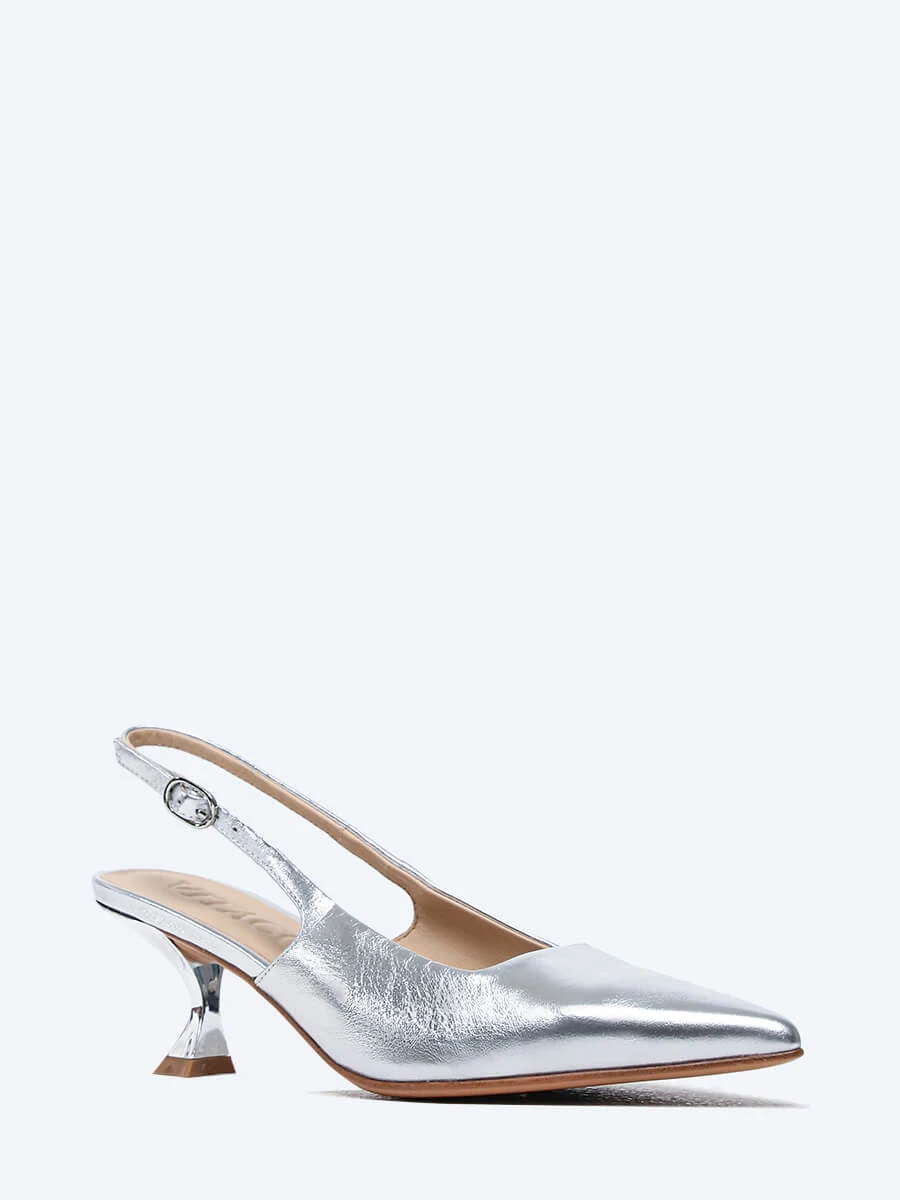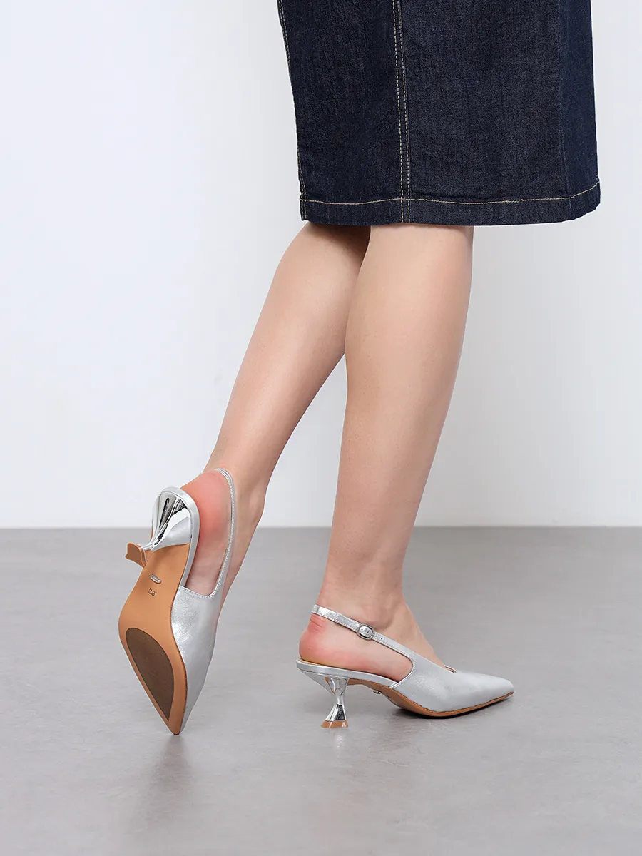 Туфли женские летние, цвет серебряный, натуральный наплак