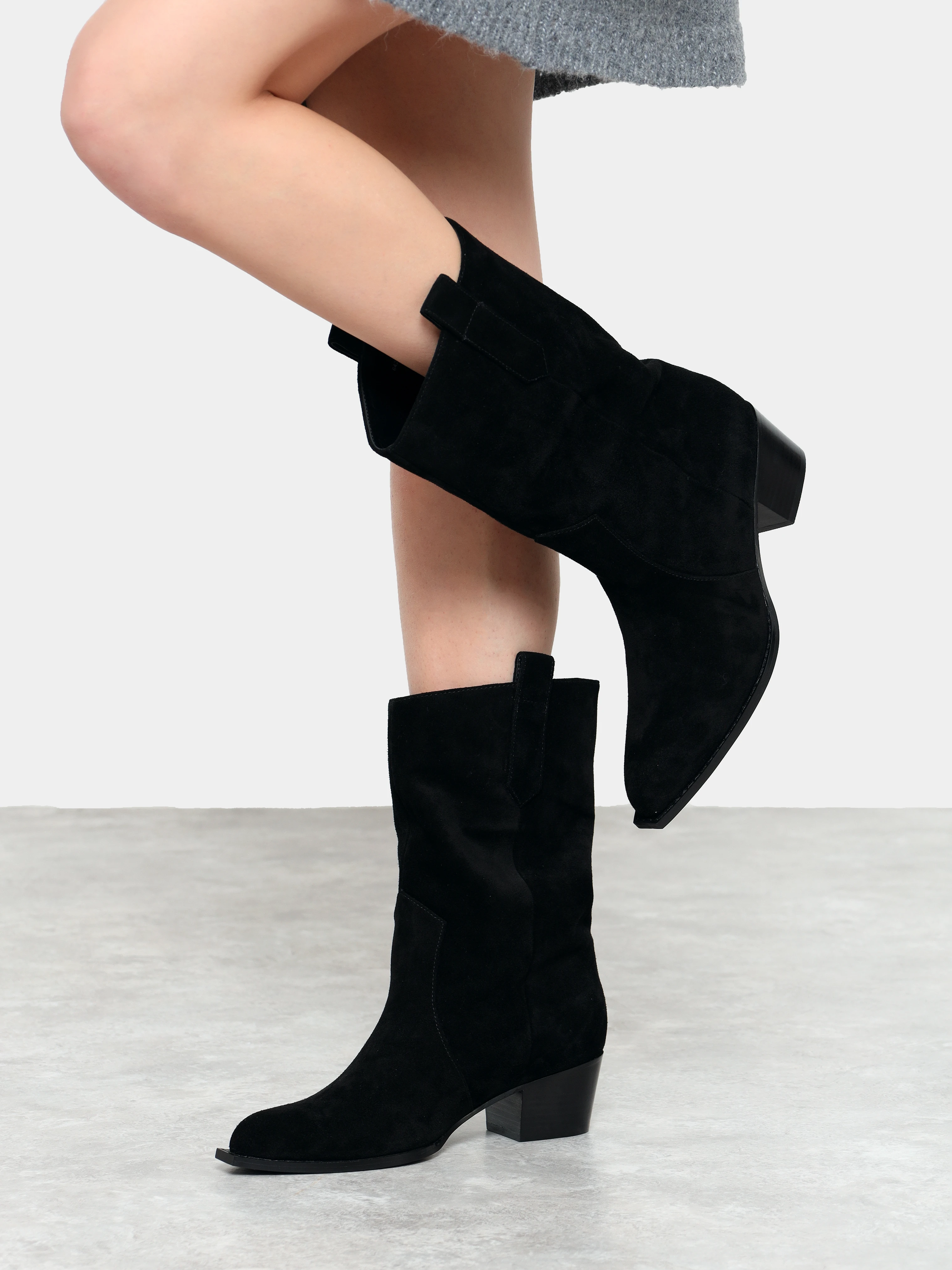Сапоги женские демисезонные, цвет черный, натуральный спилок