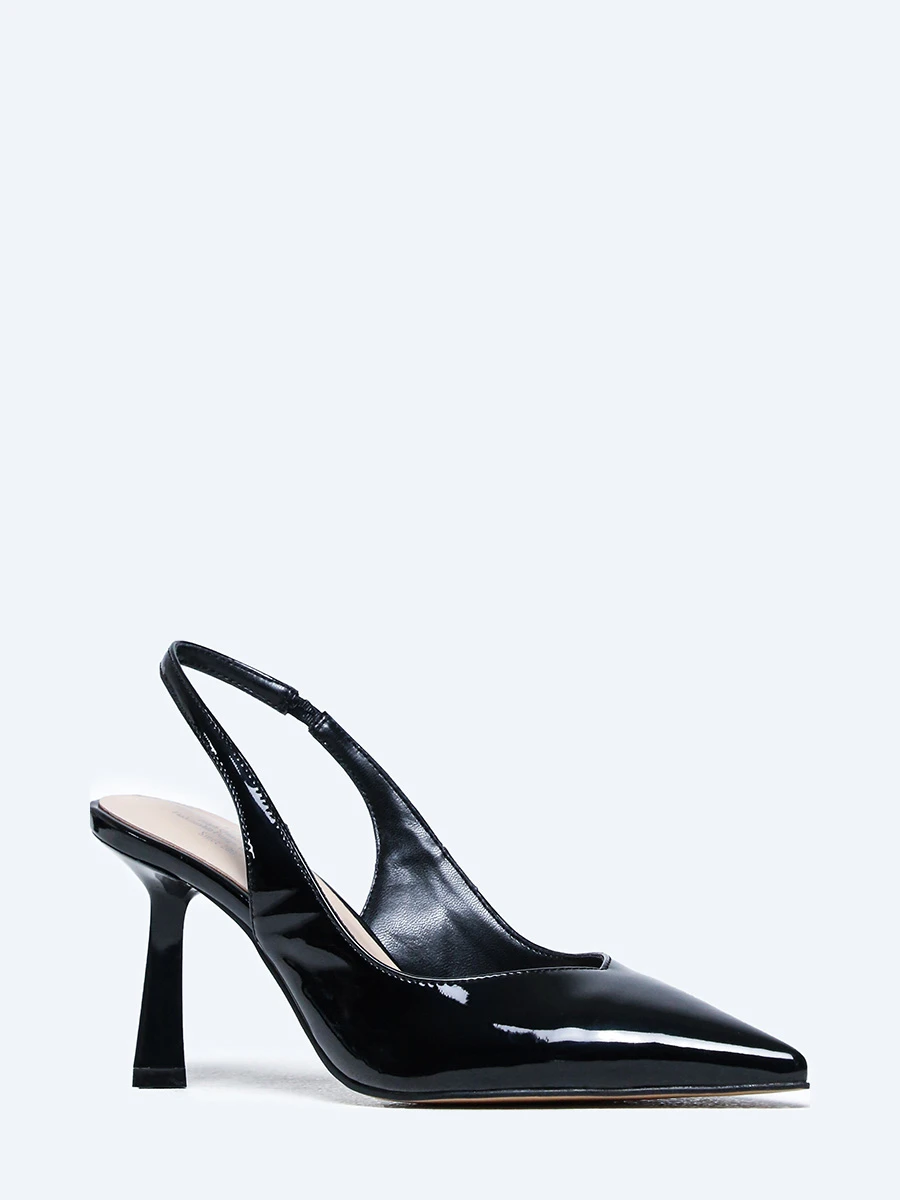 Туфли женские летние, цвет черный, искусственная лаковая кожа