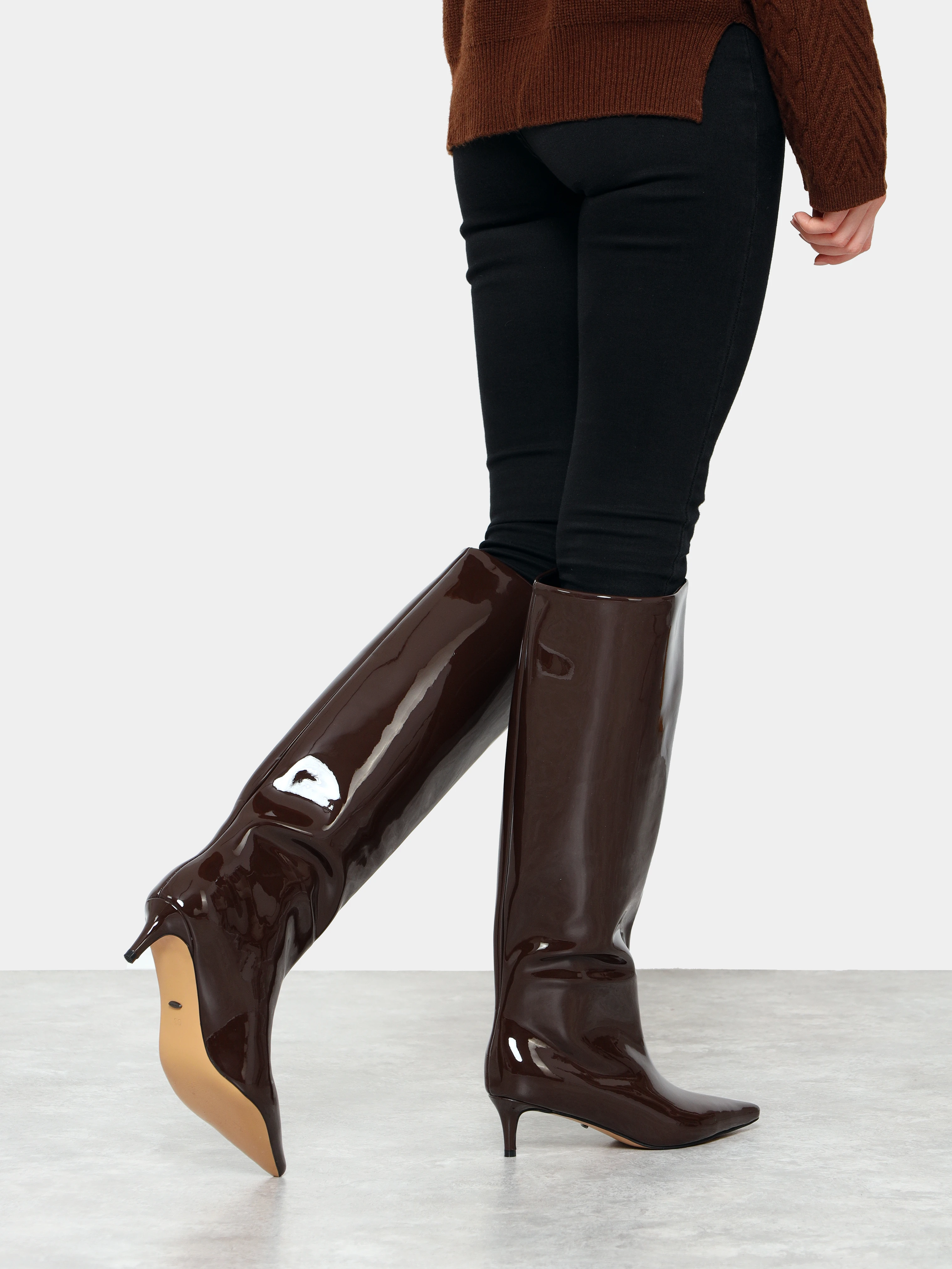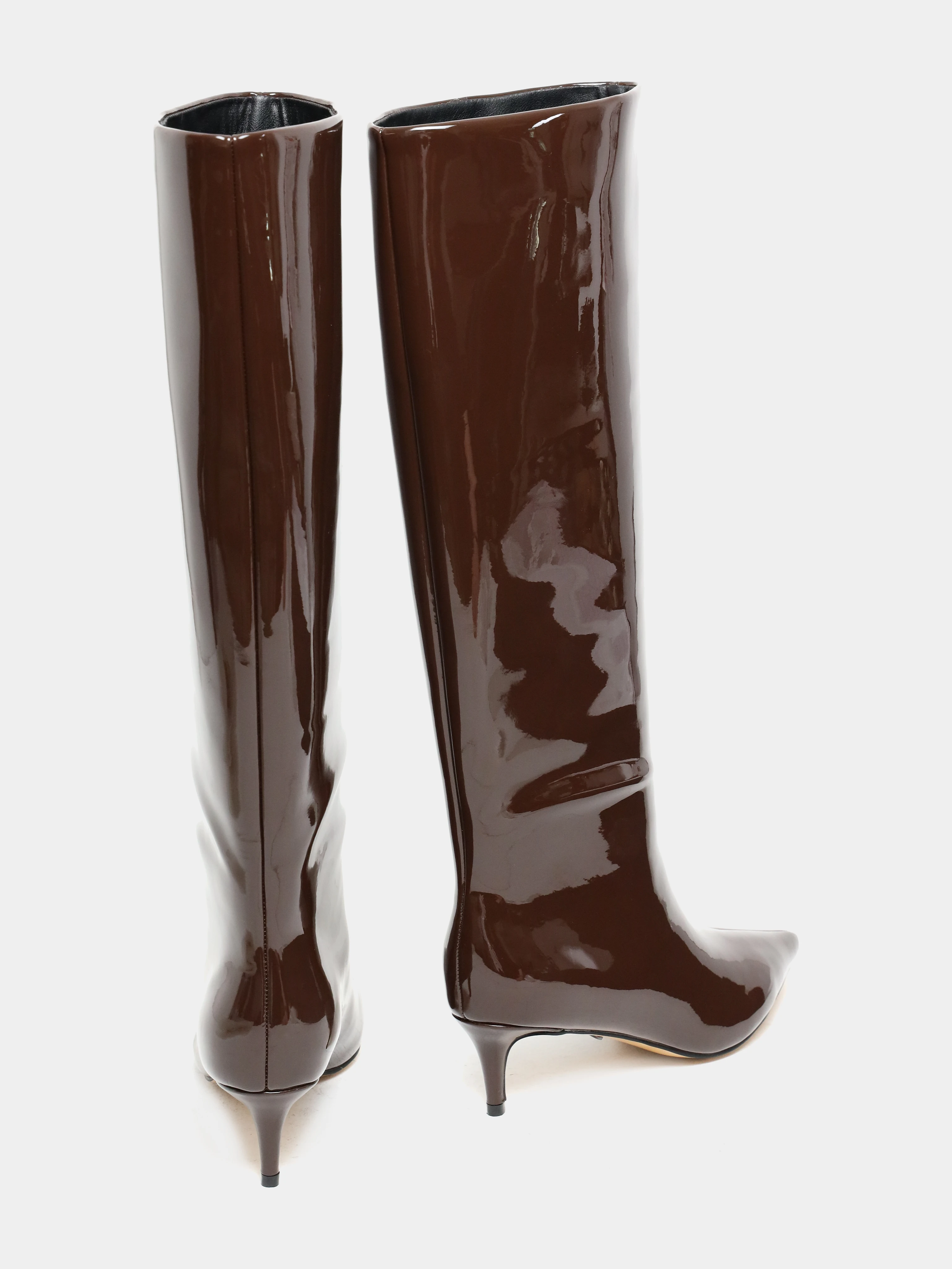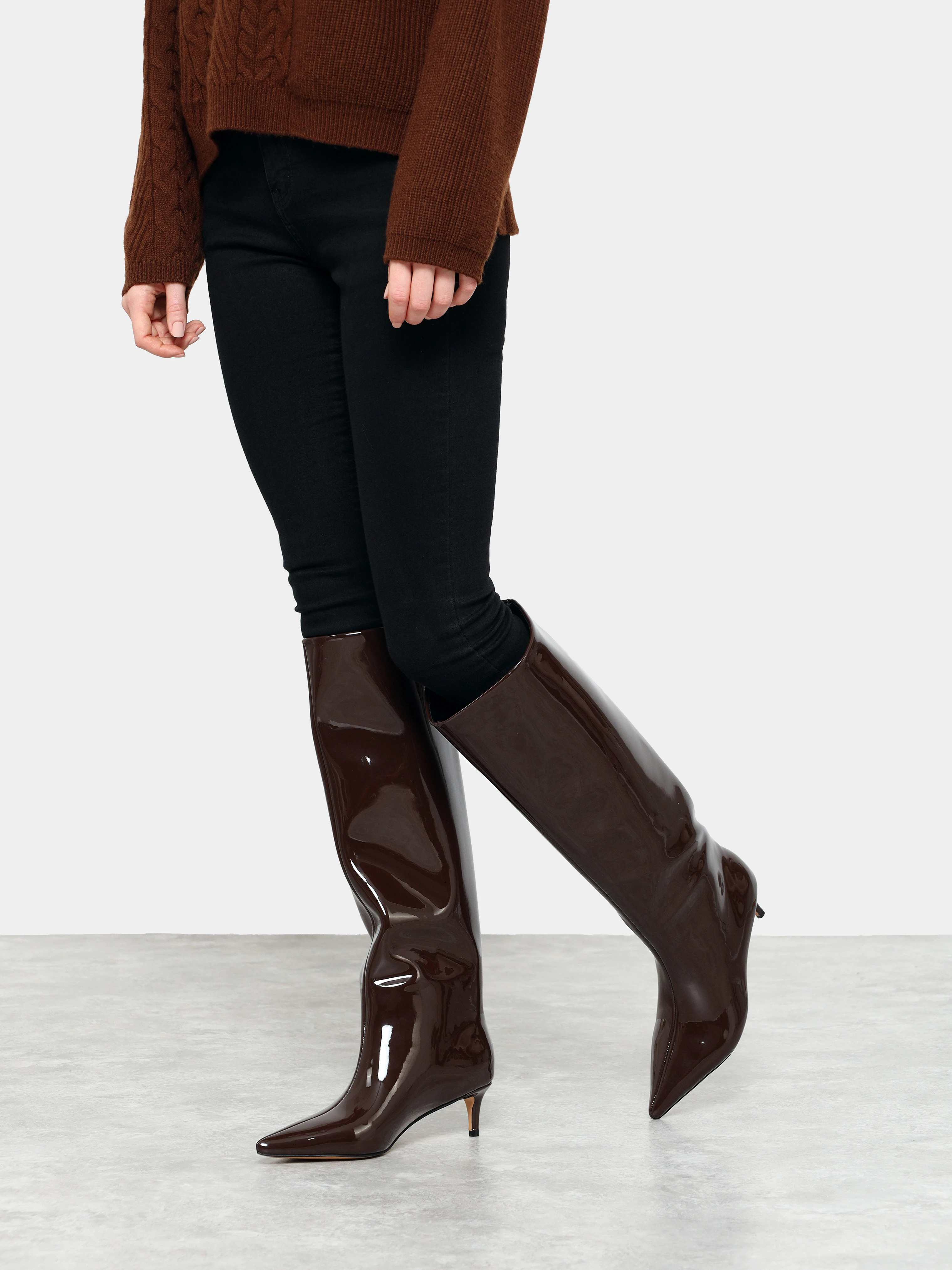 Сапоги женские демисезонные, цвет коричневый, натуральная лаковая кожа