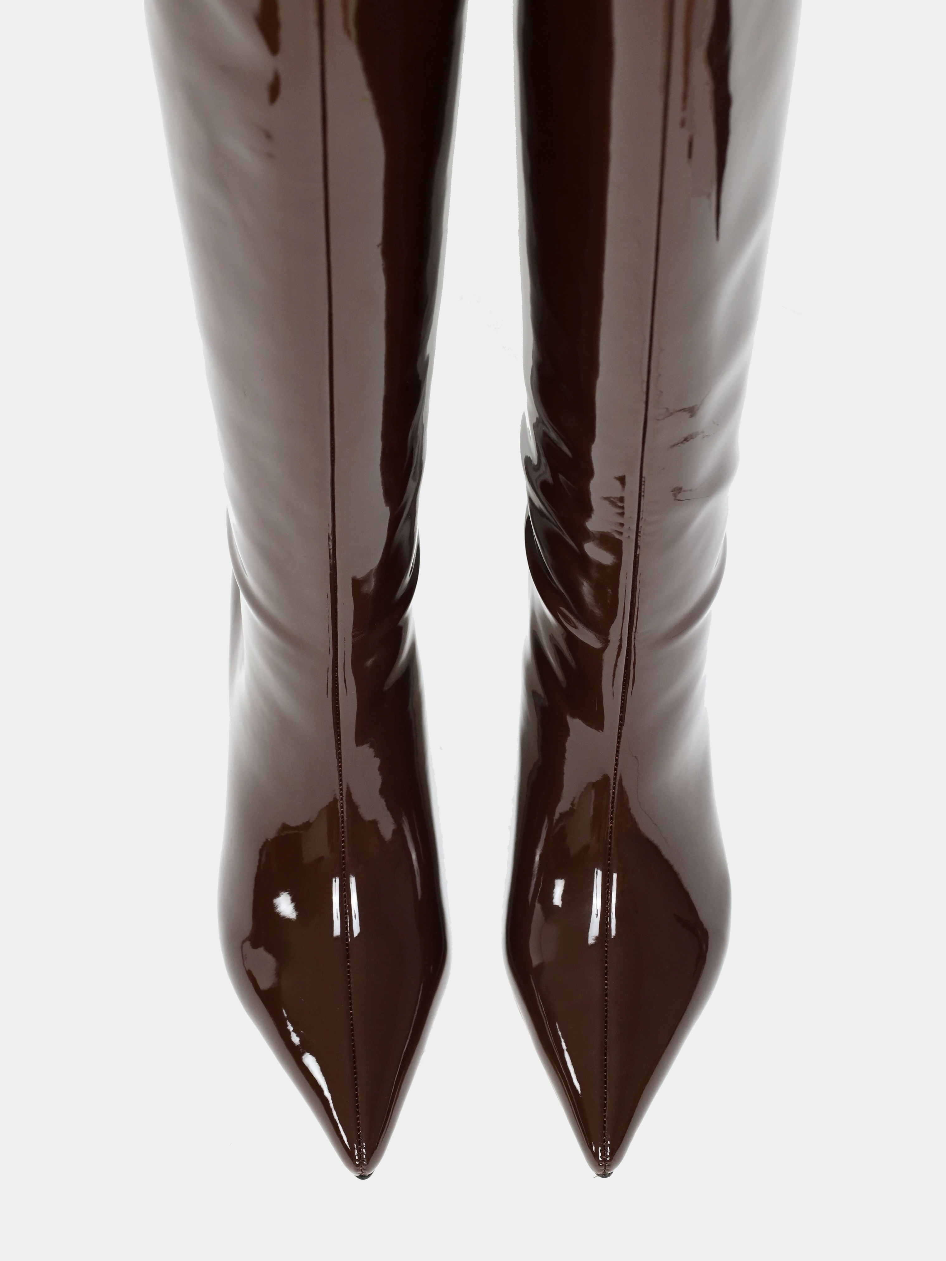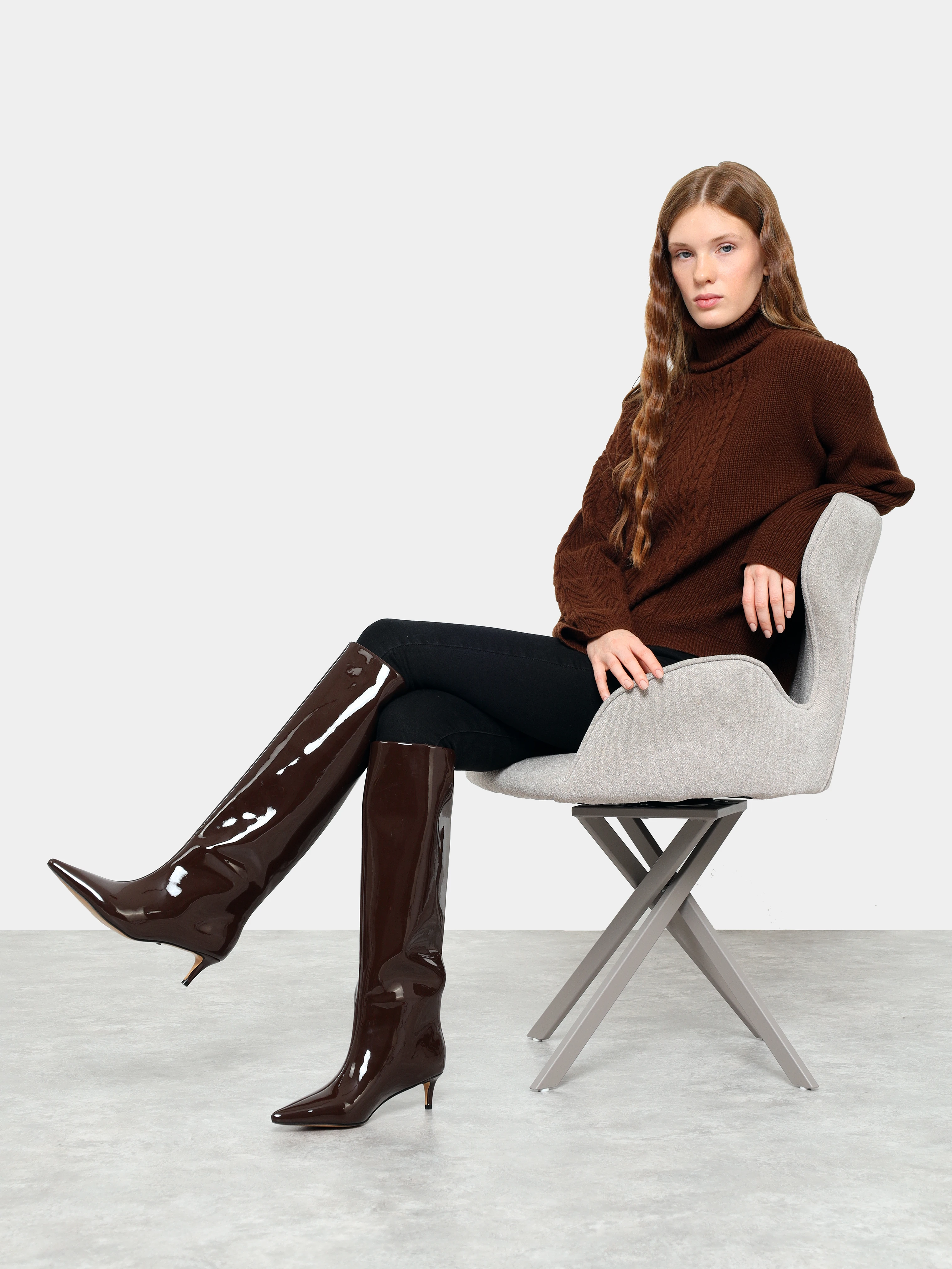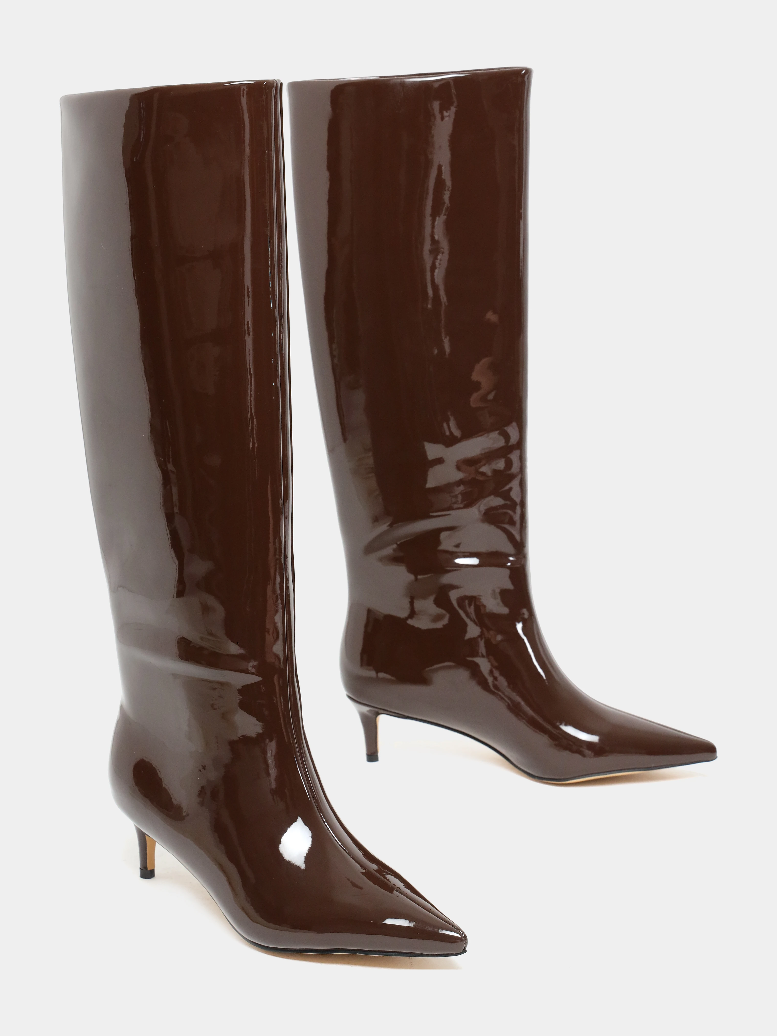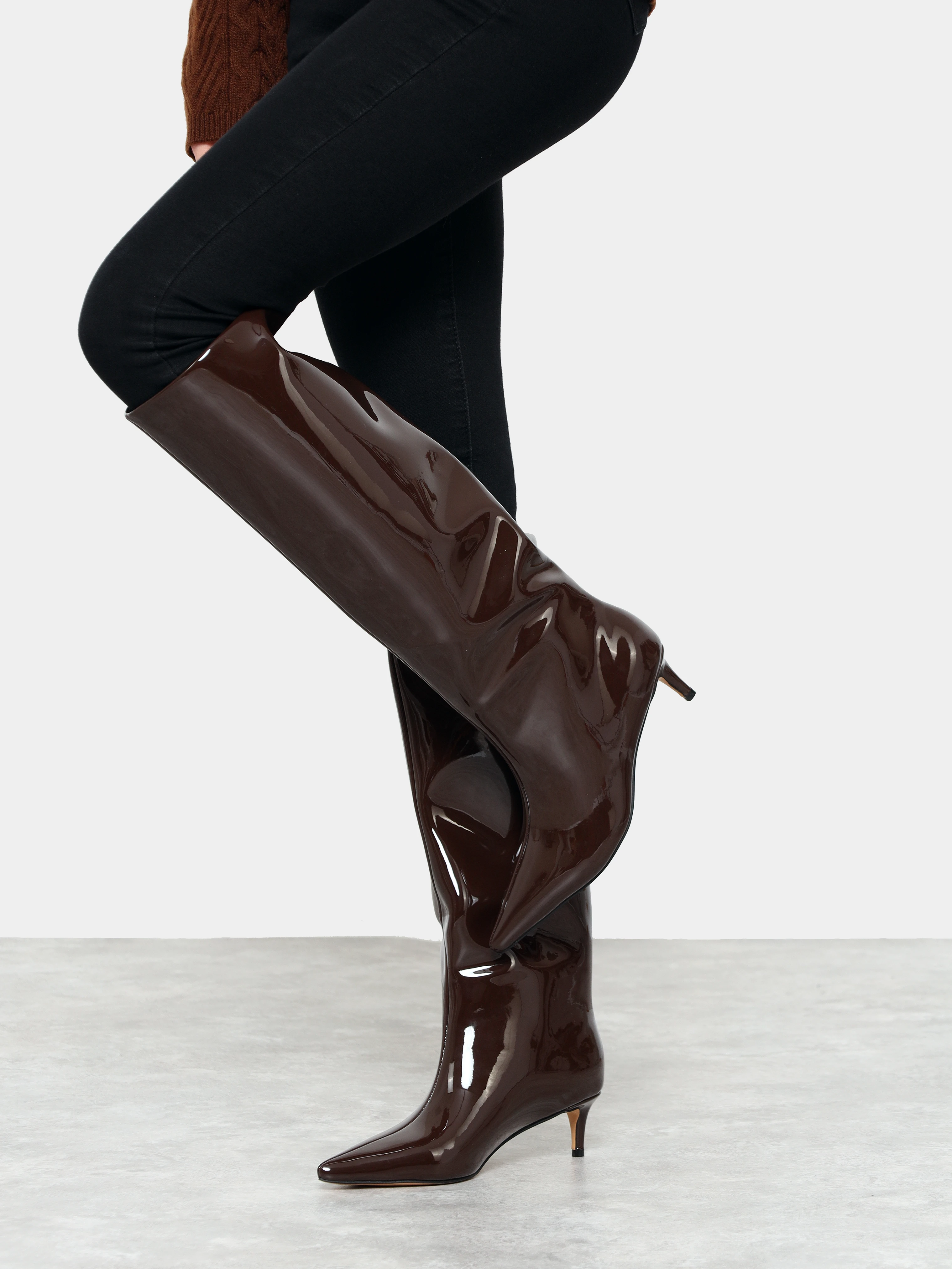 Сапоги женские демисезонные, цвет коричневый, натуральная лаковая кожа