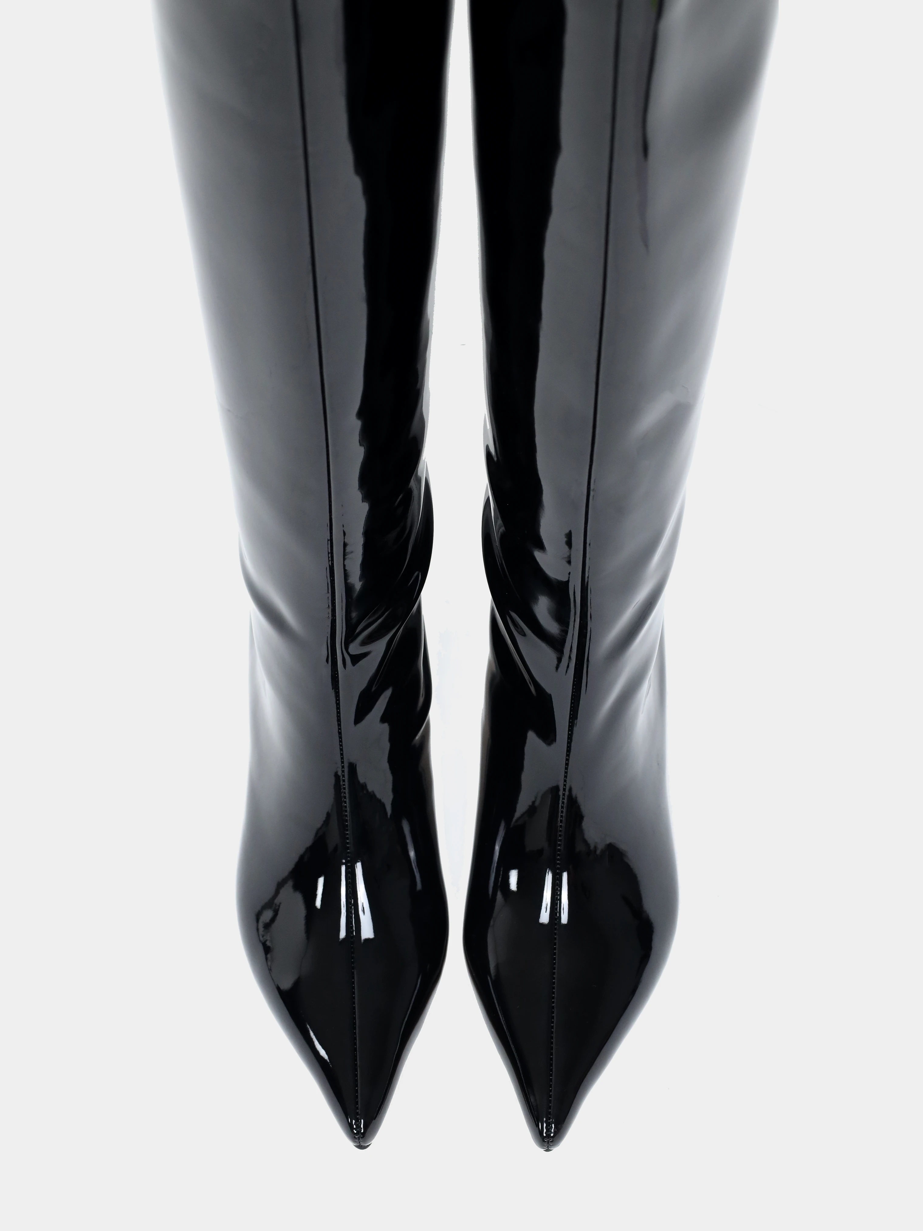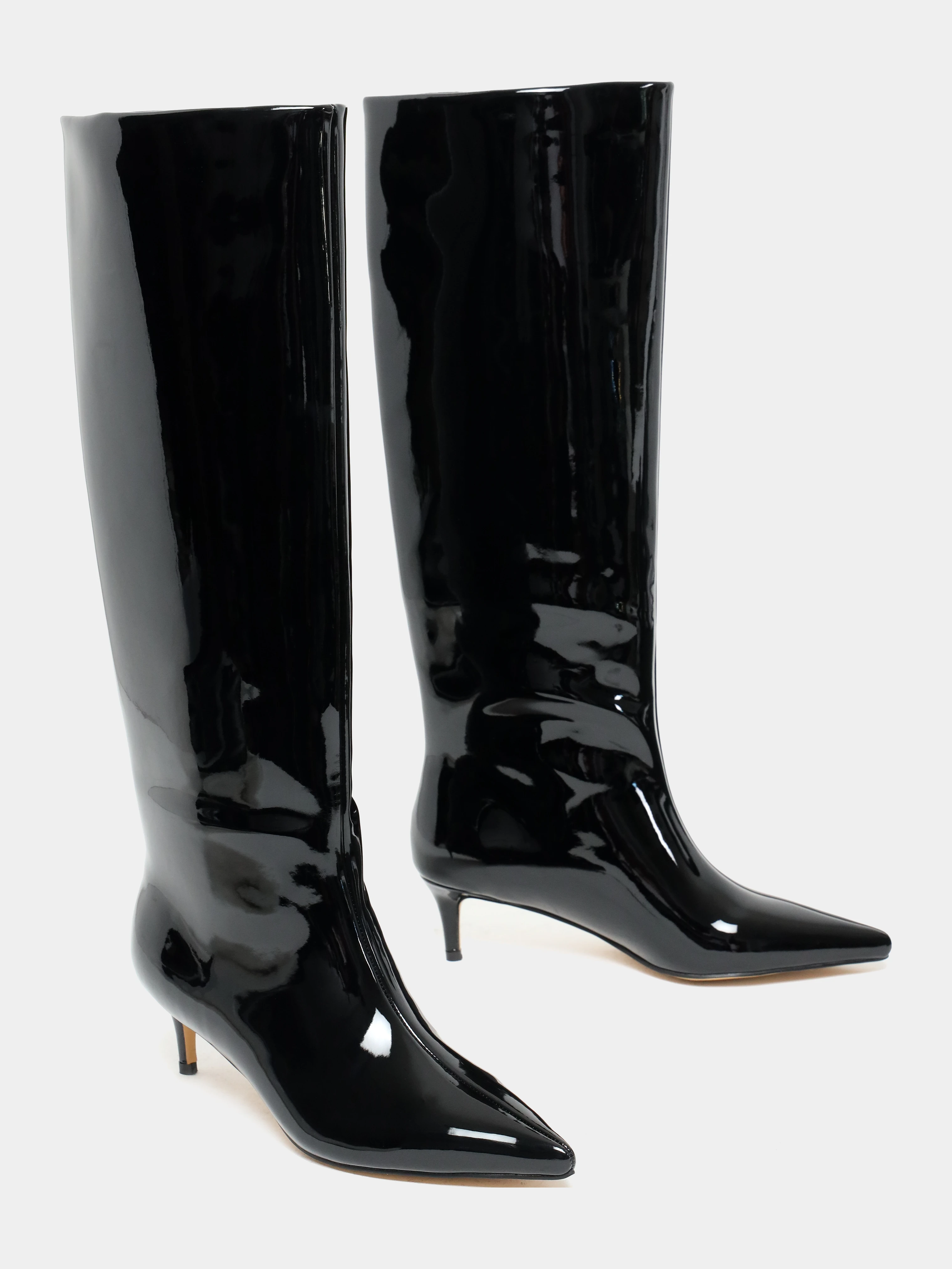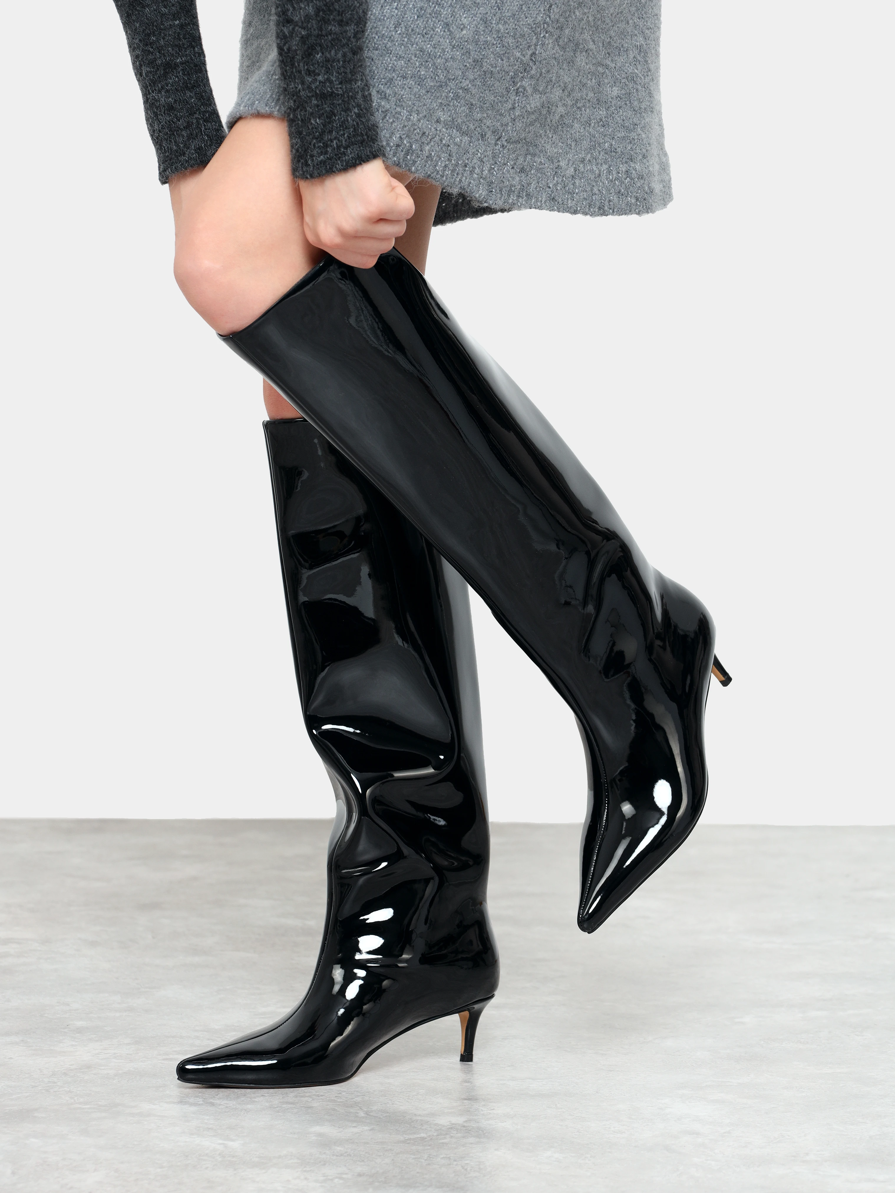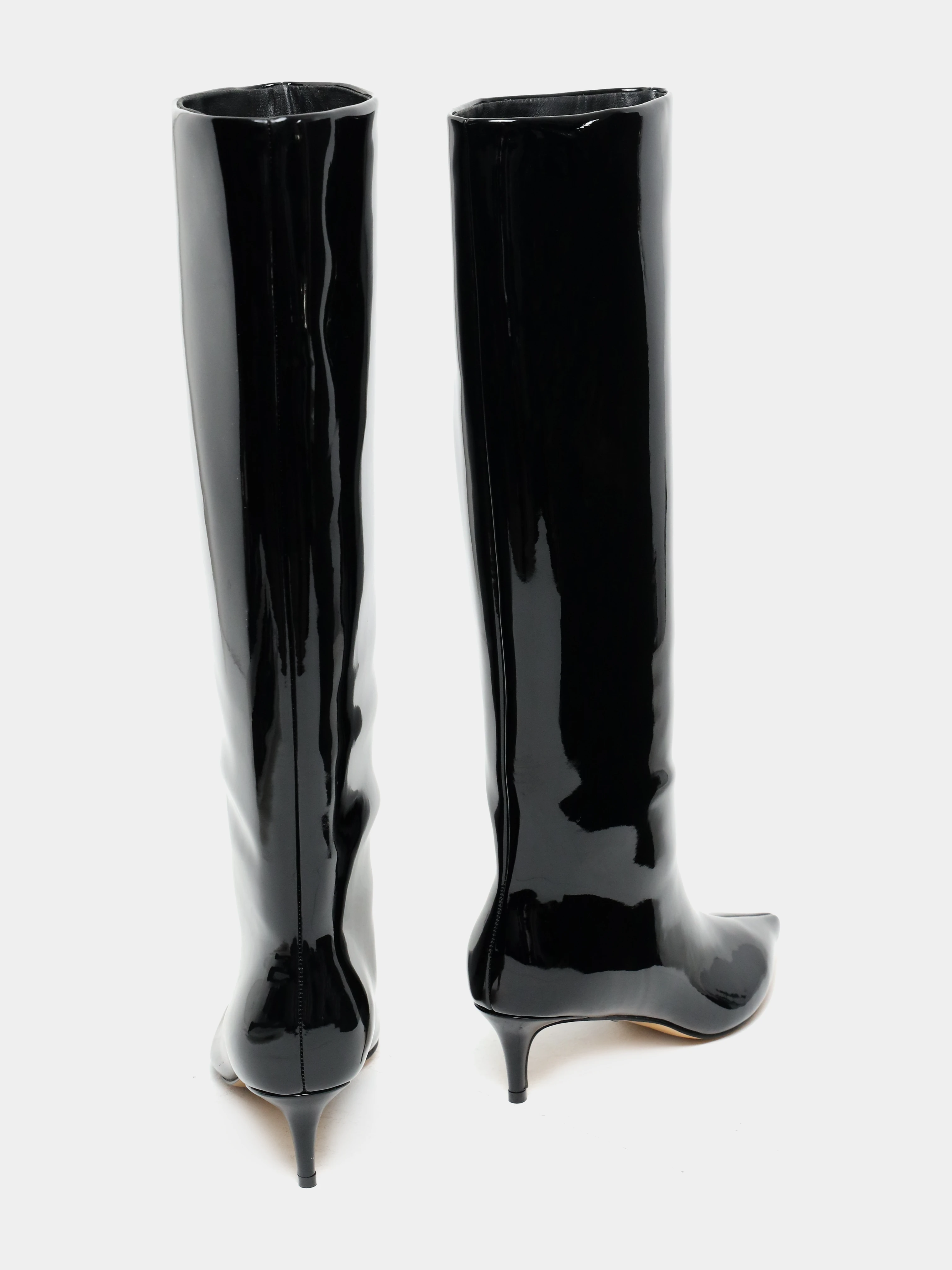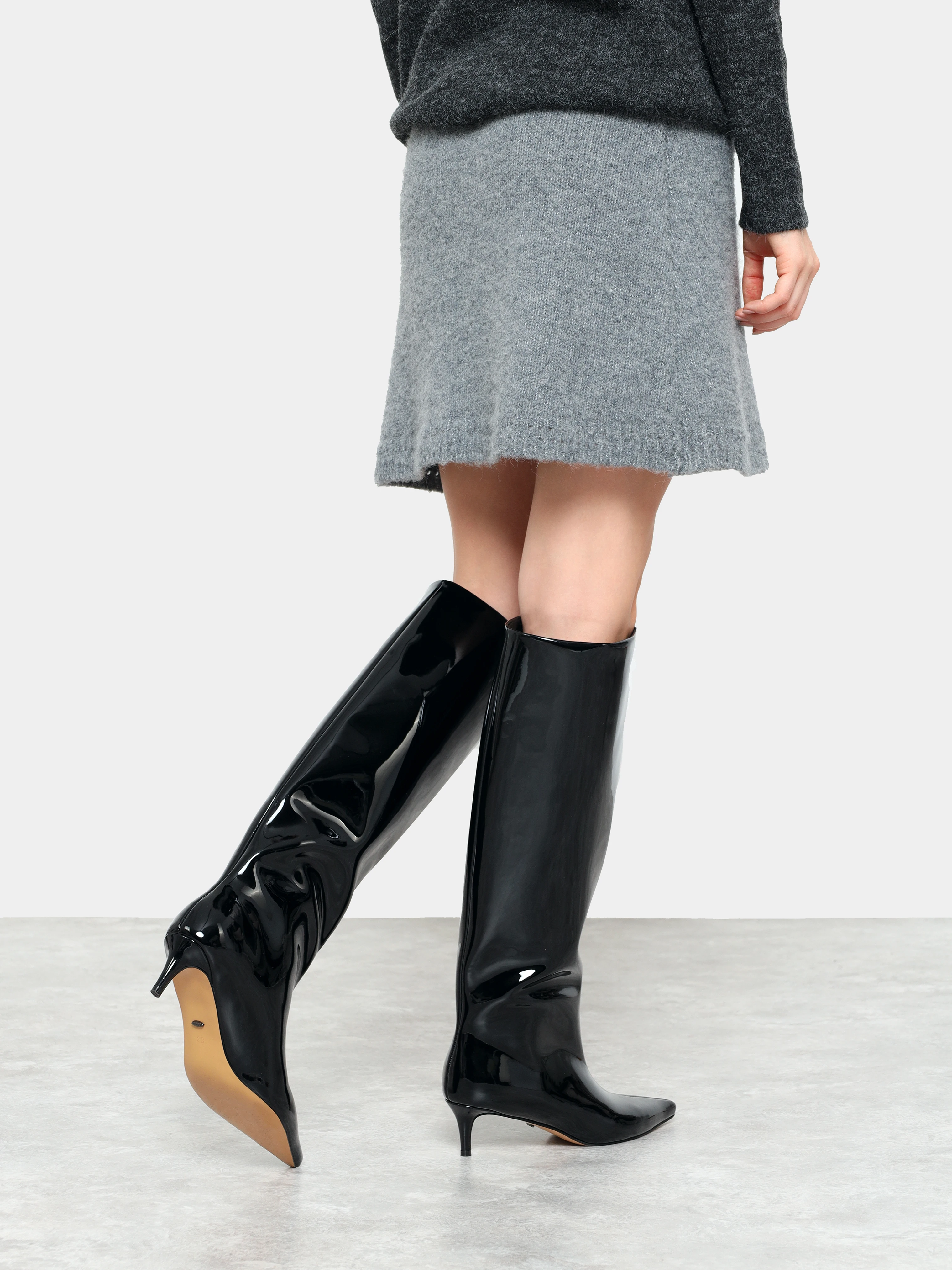 Сапоги женские демисезонные, цвет черный, натуральная лаковая кожа